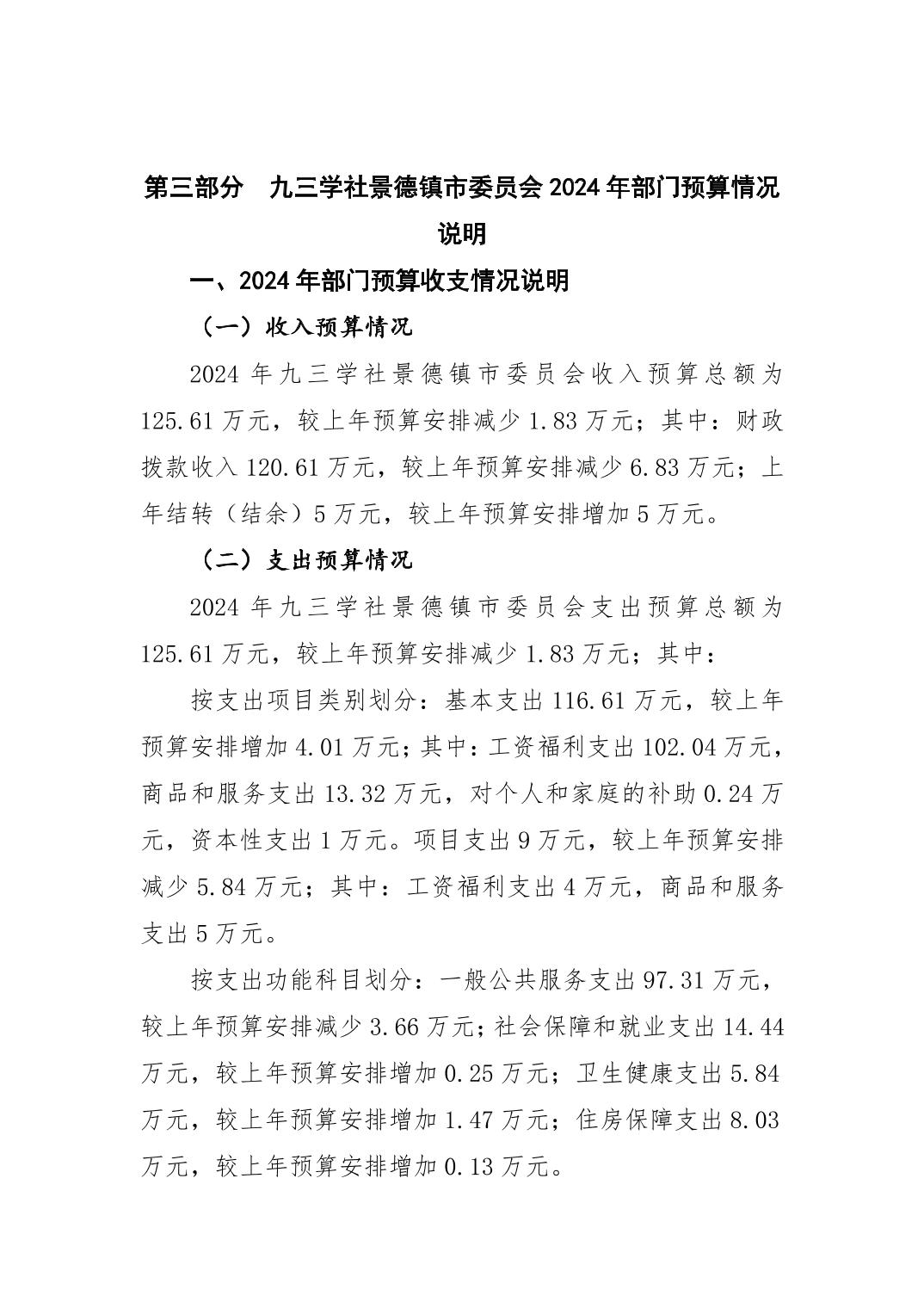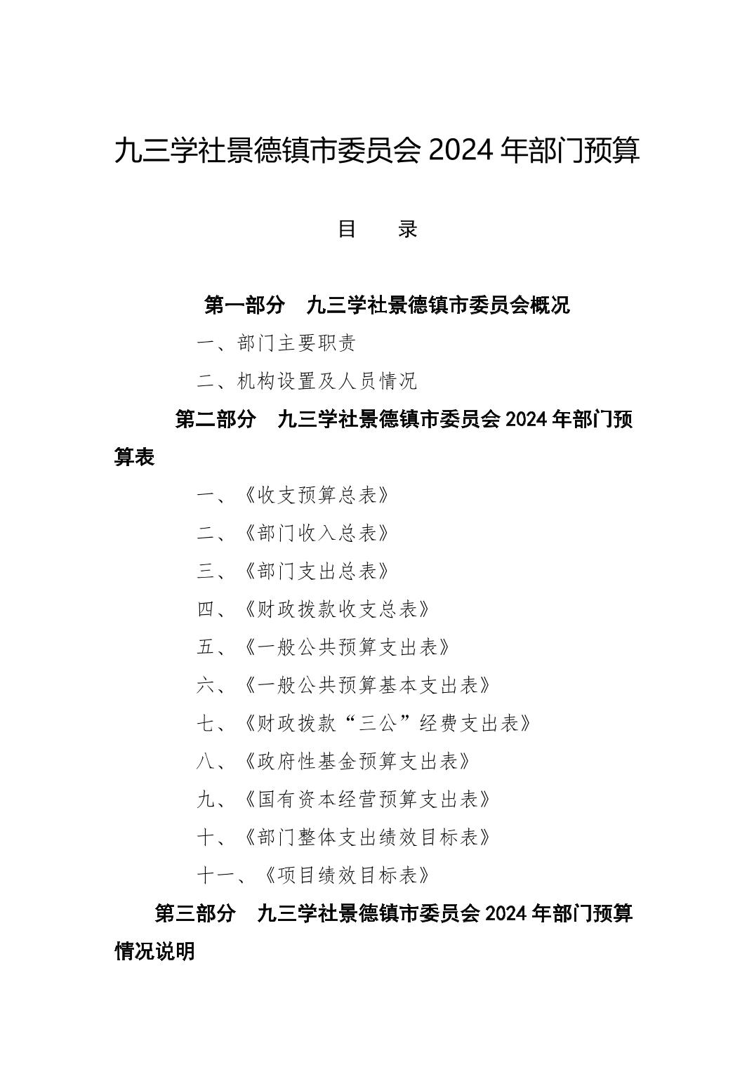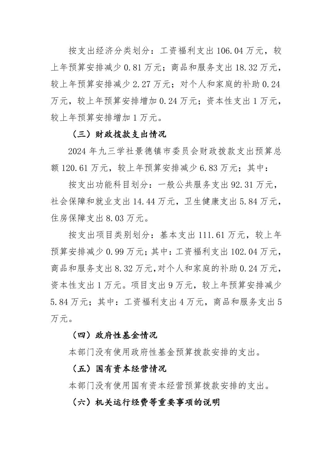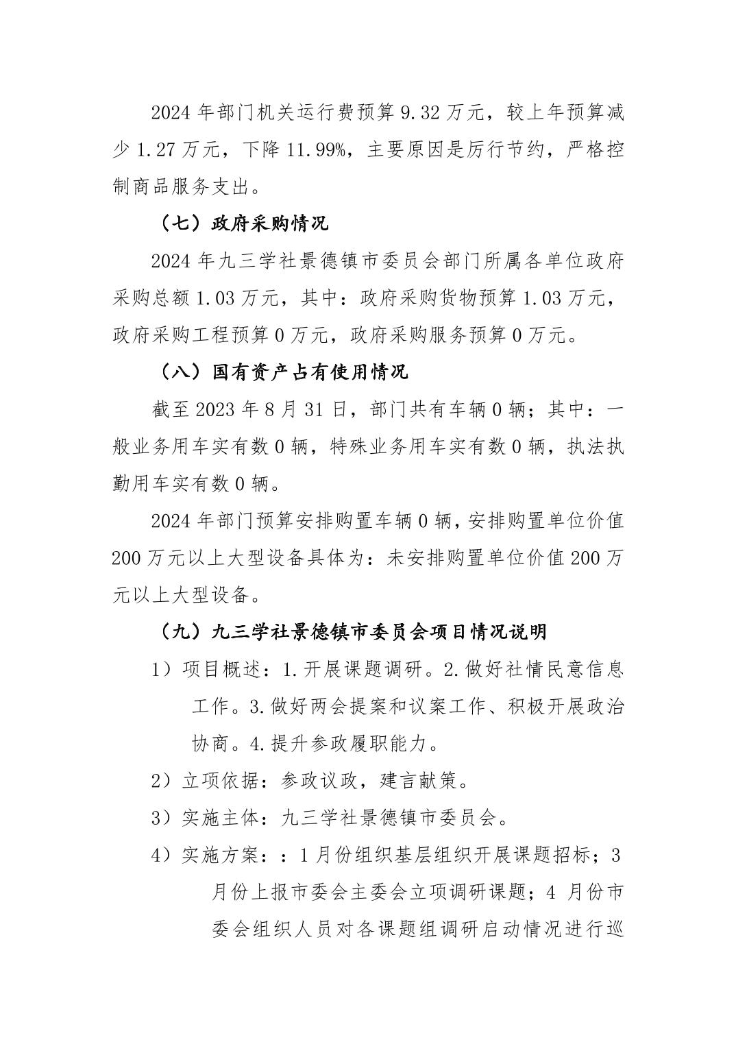 九三学社景德镇市委员会2024年部门预算