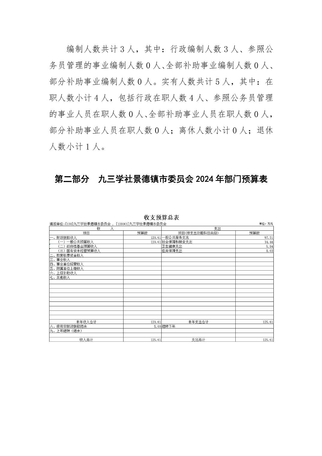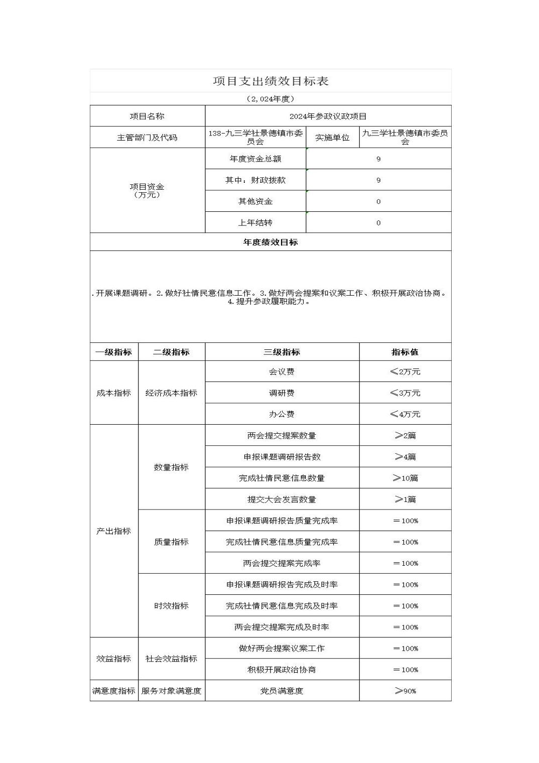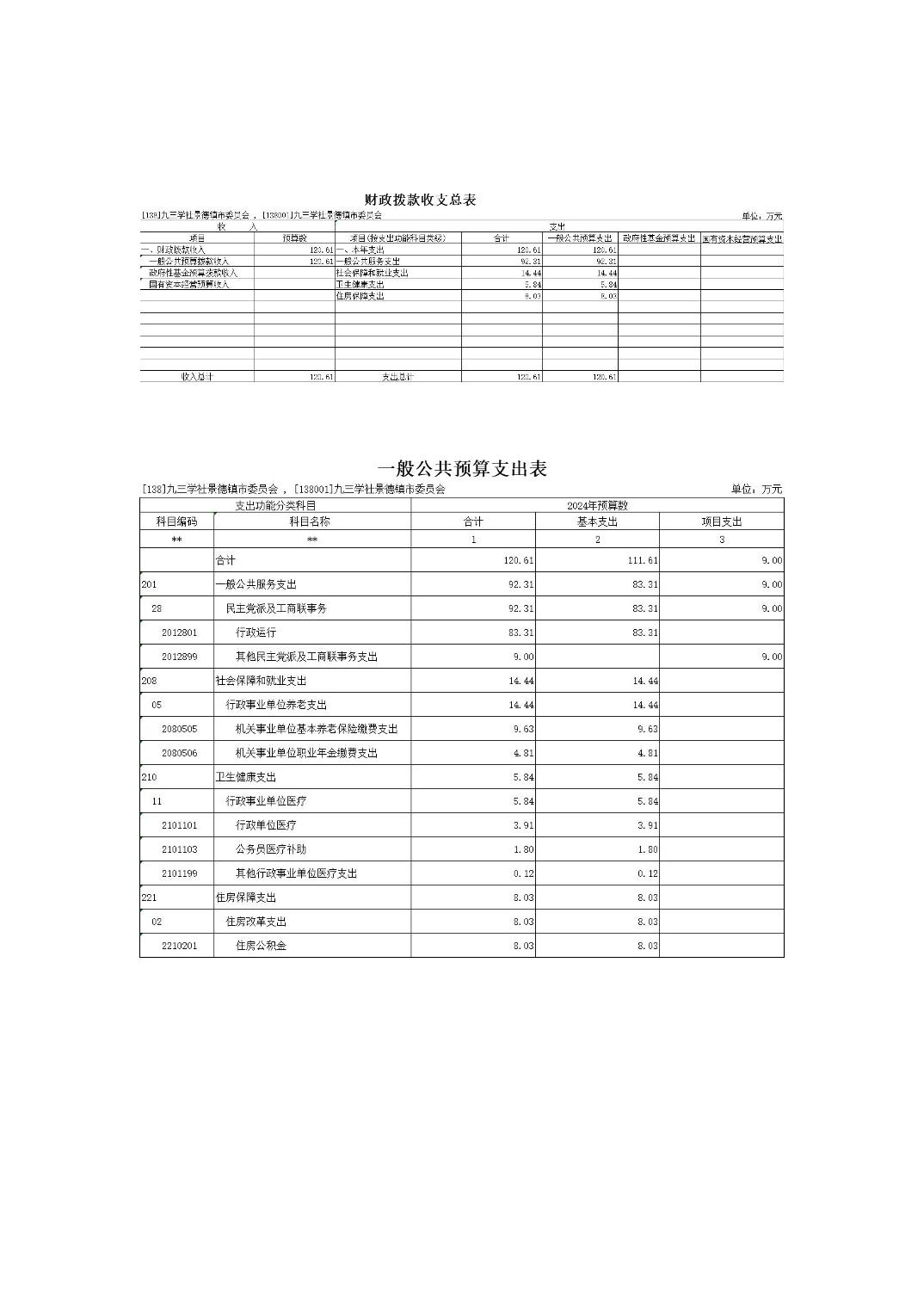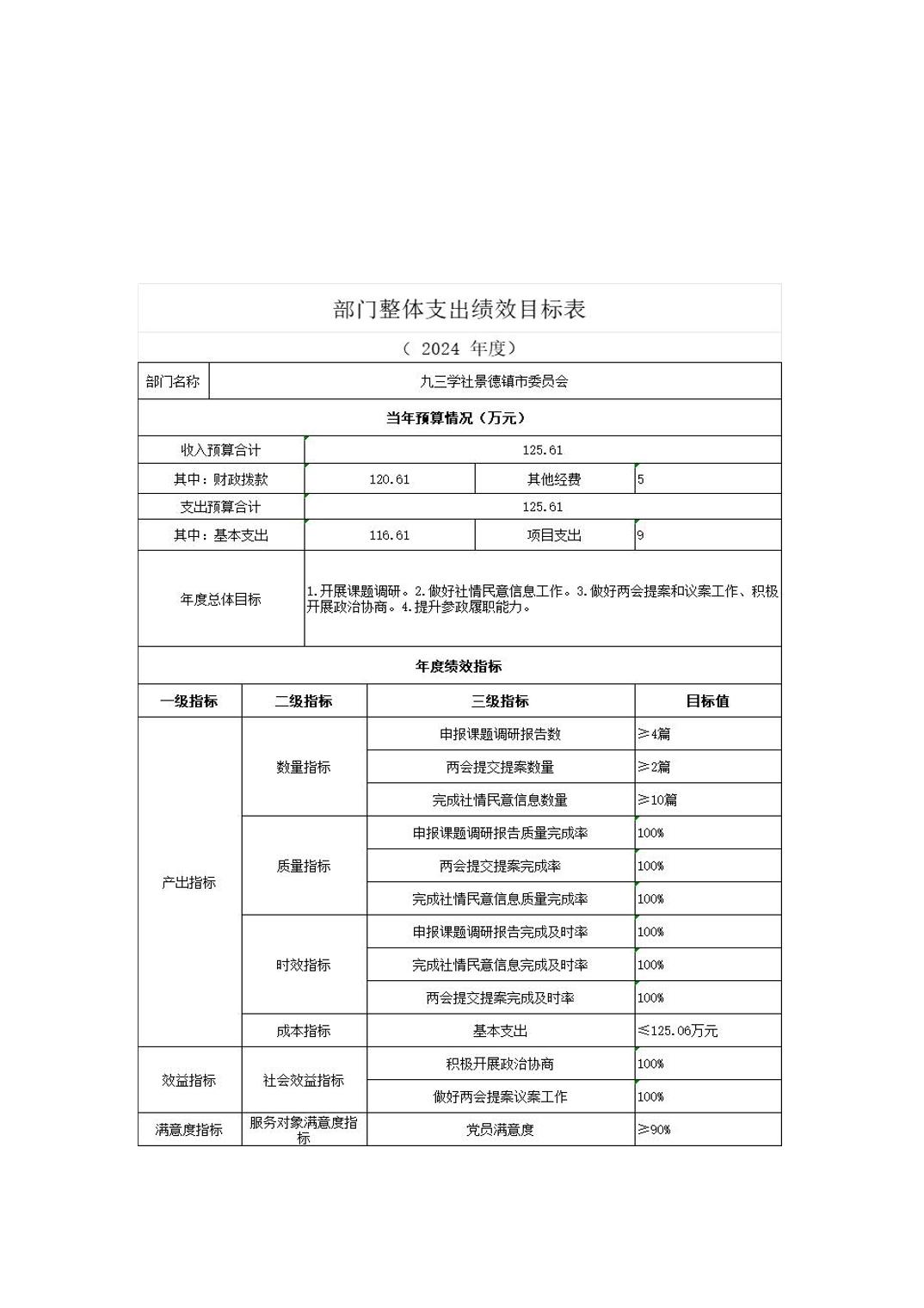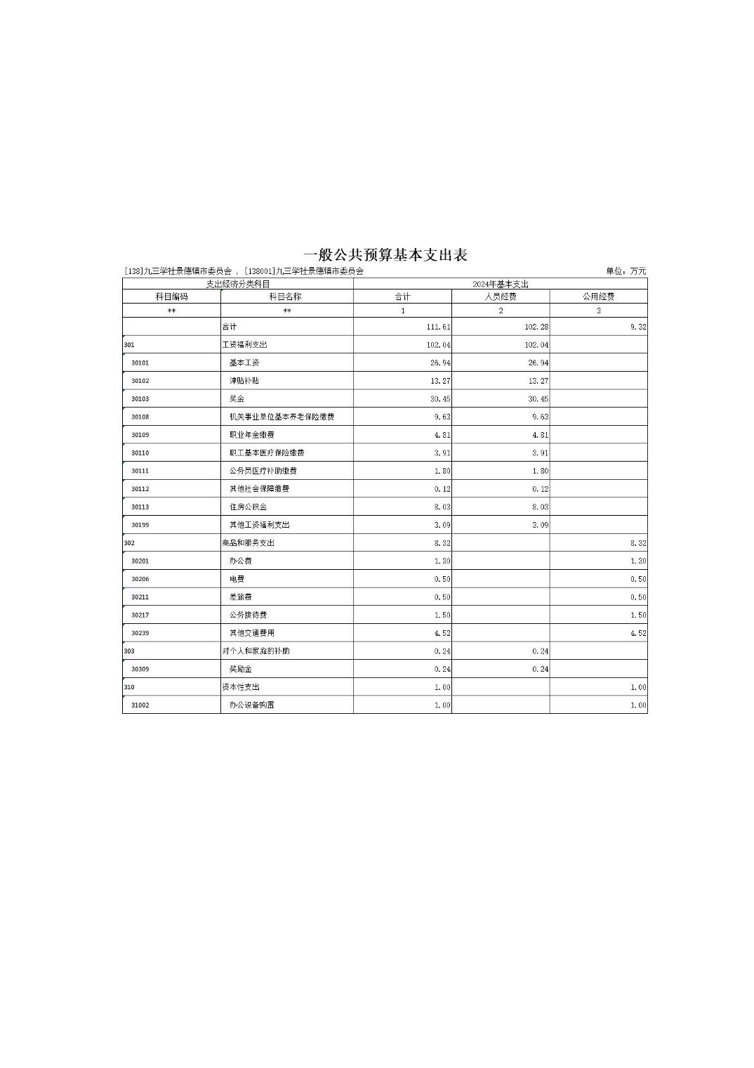 九三学社景德镇市委员会2024年部门预算