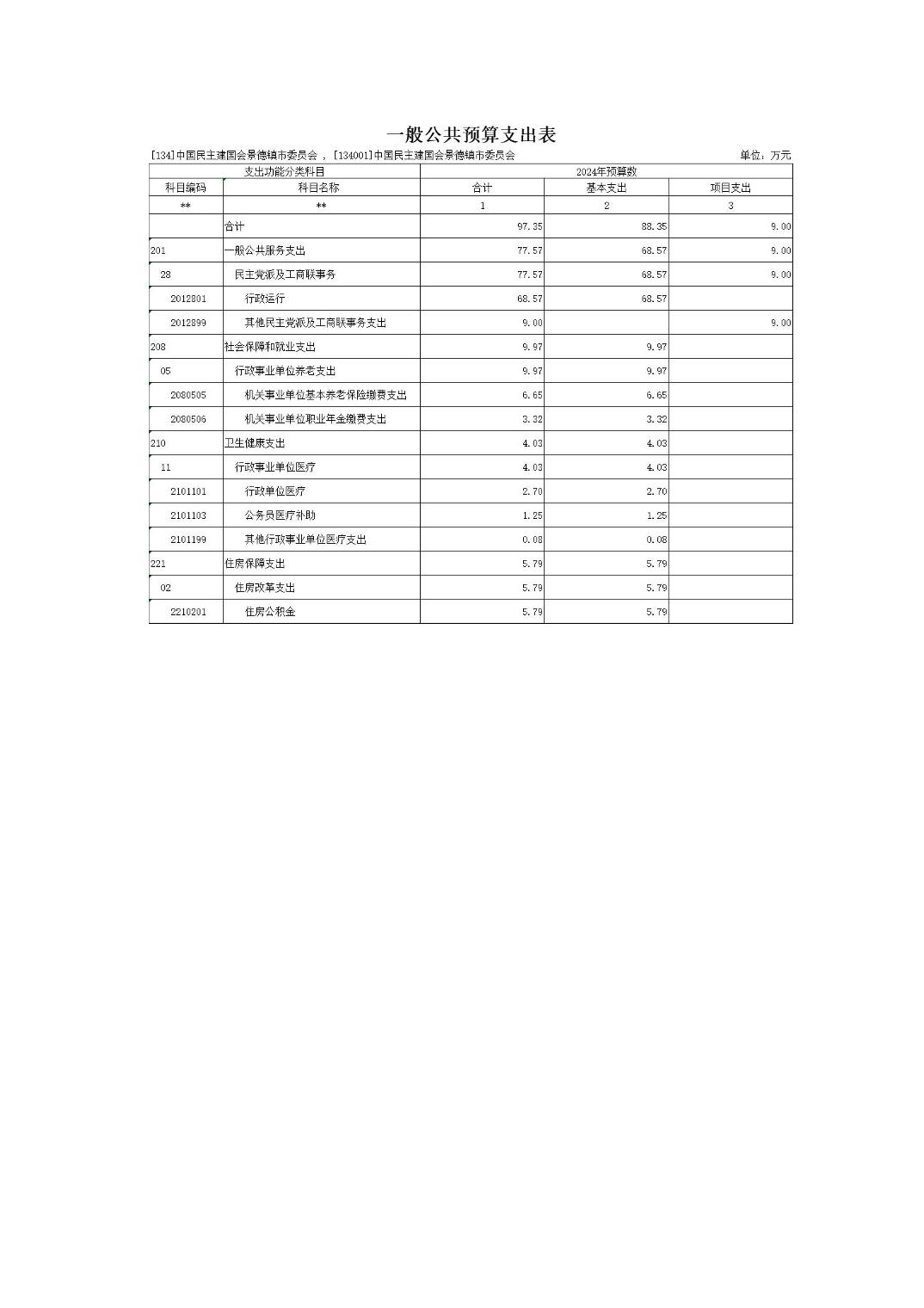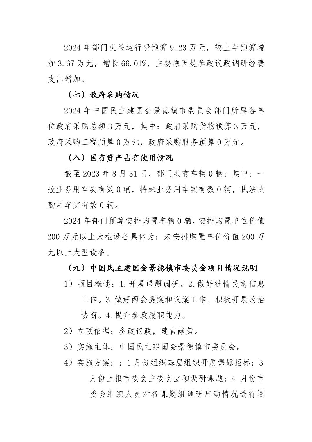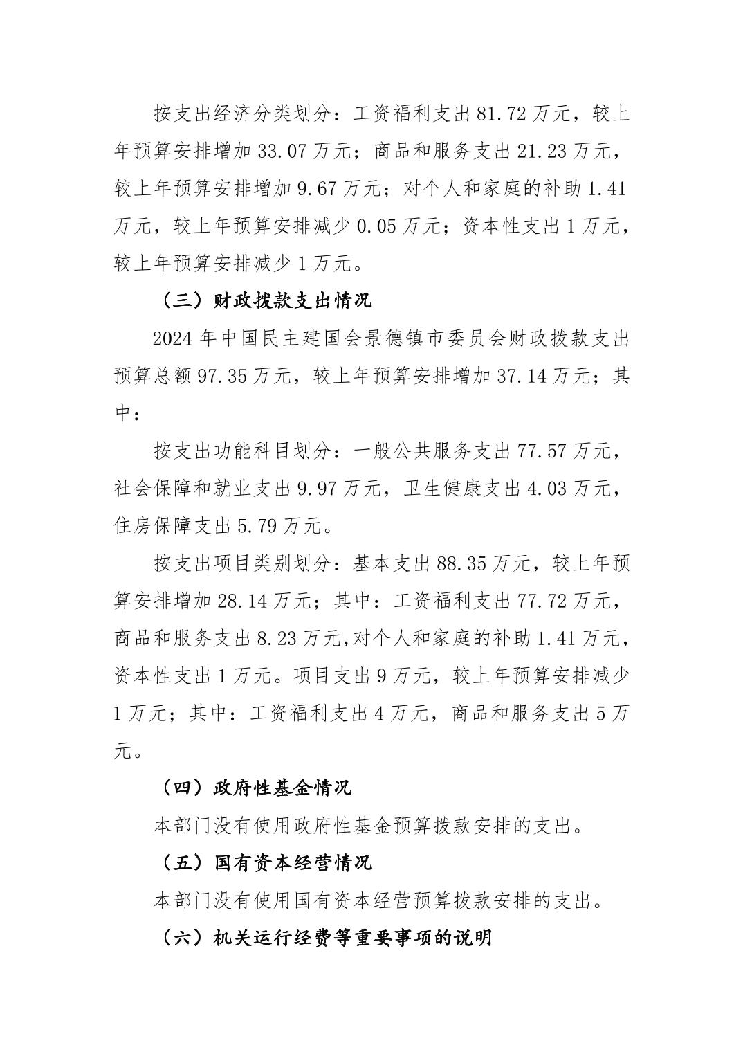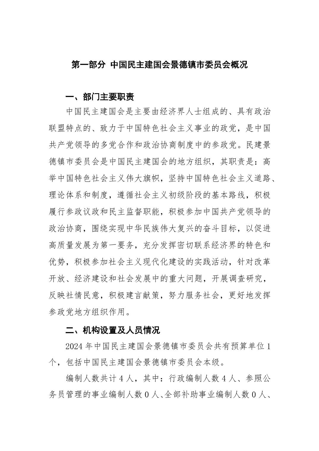 中国民主建国会景德镇市委员会2024年部门预算