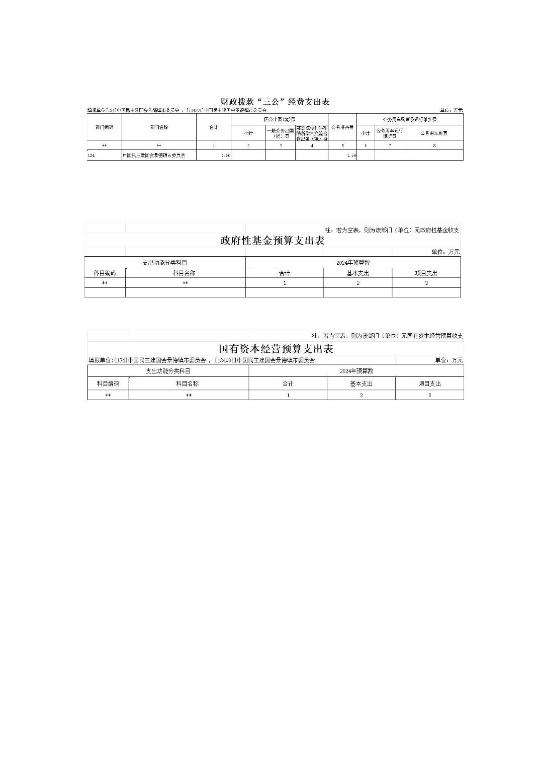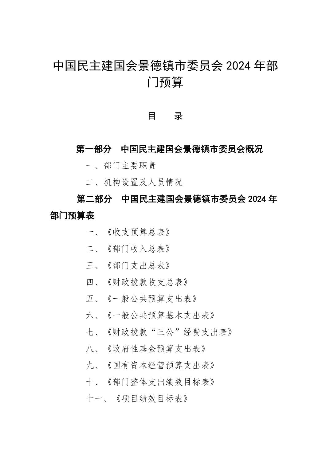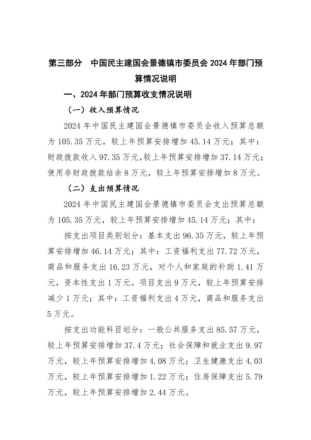 中国民主建国会景德镇市委员会2024年部门预算