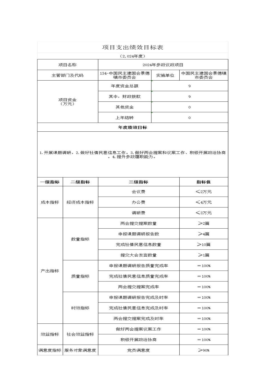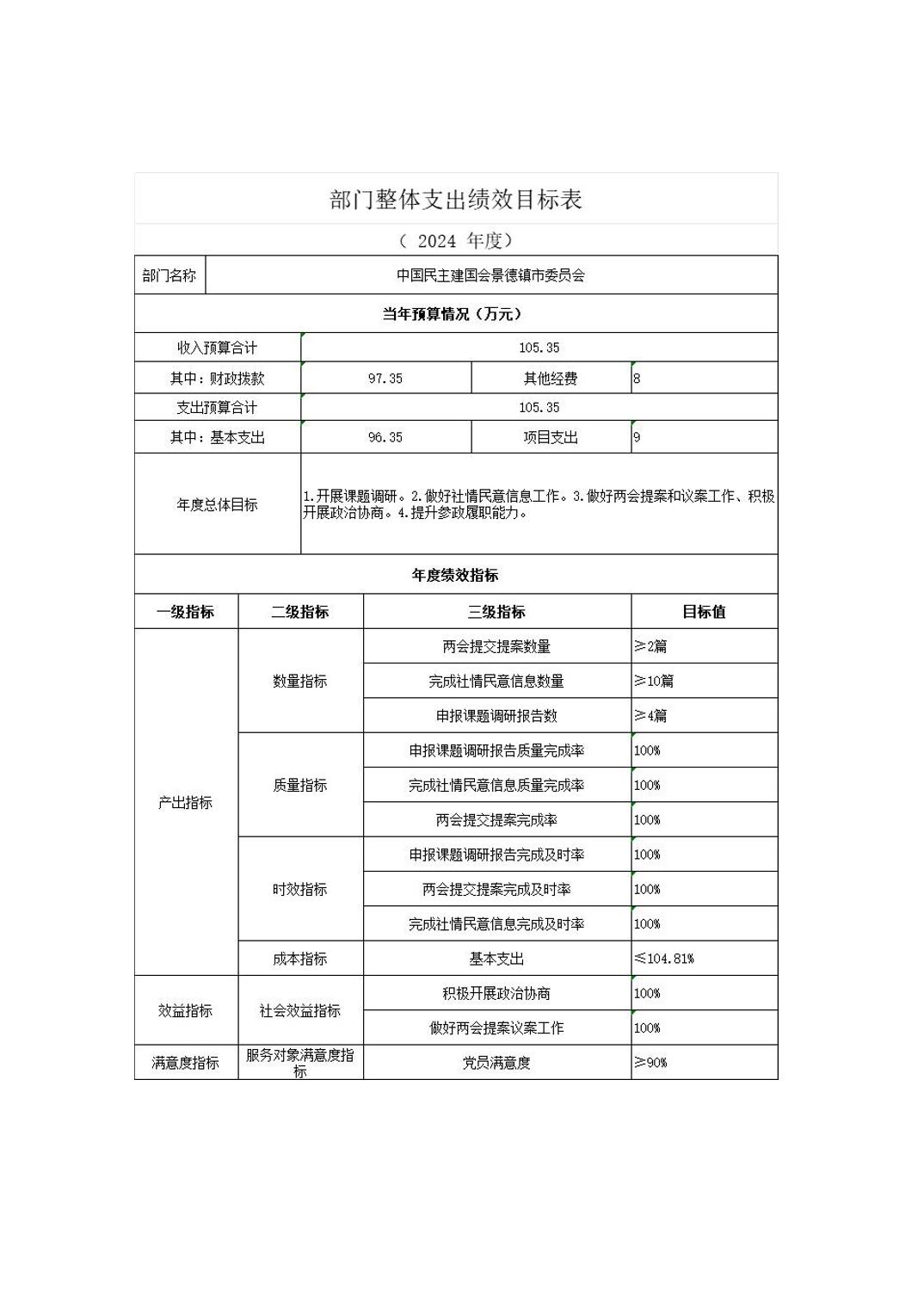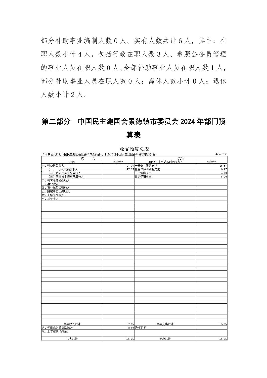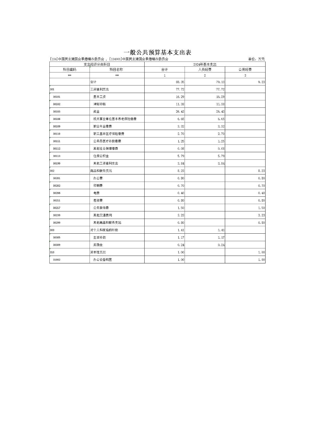 中国民主建国会景德镇市委员会2024年部门预算