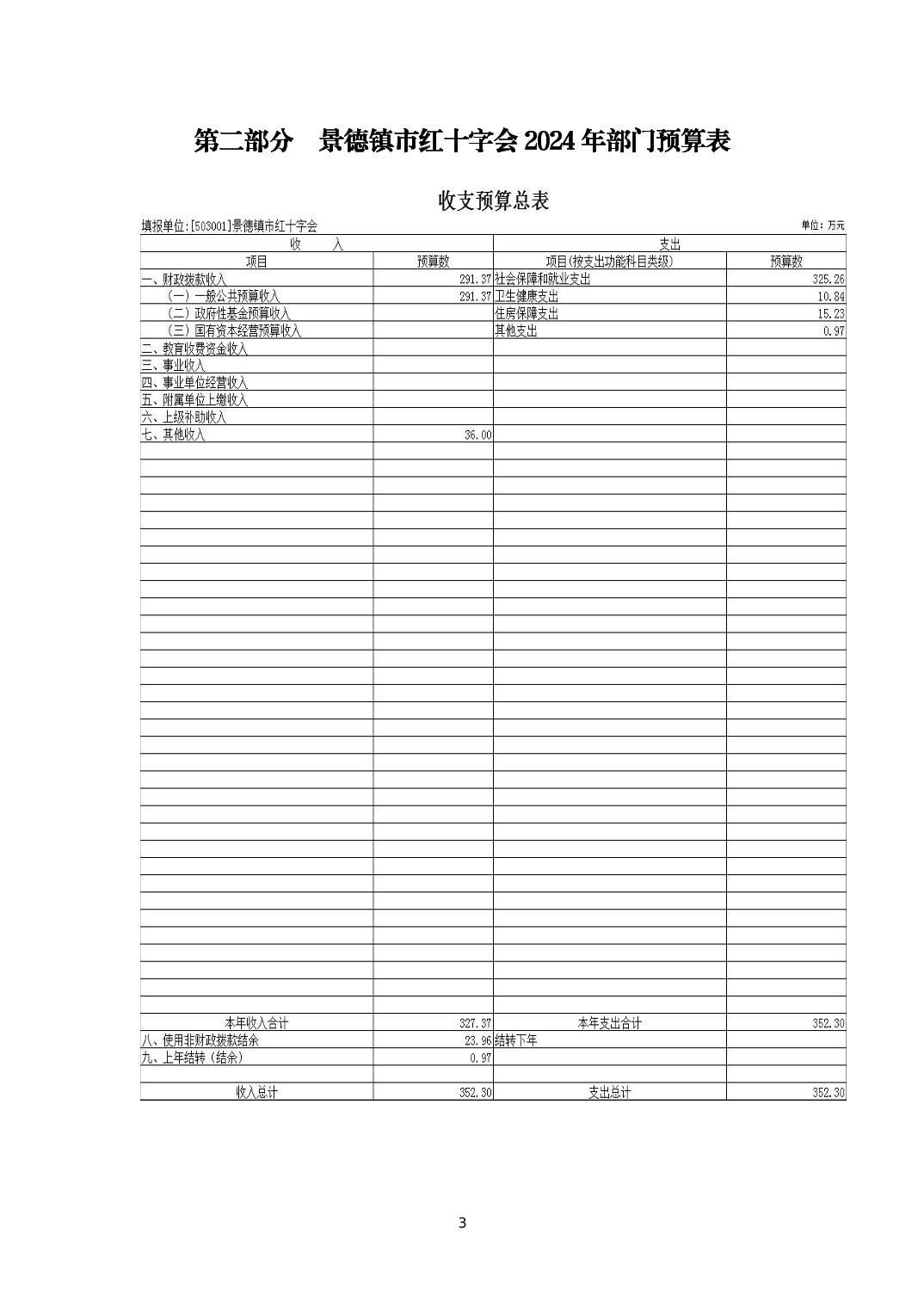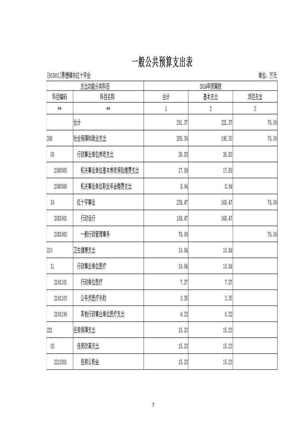 景德镇市红十字会2024年部门预算