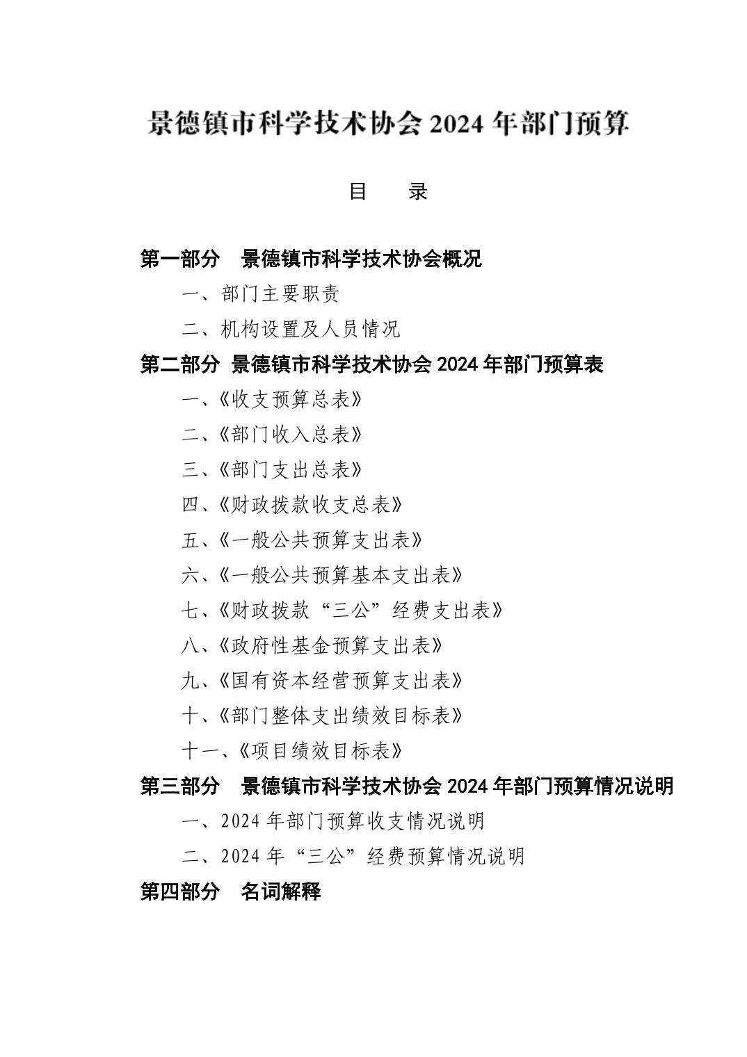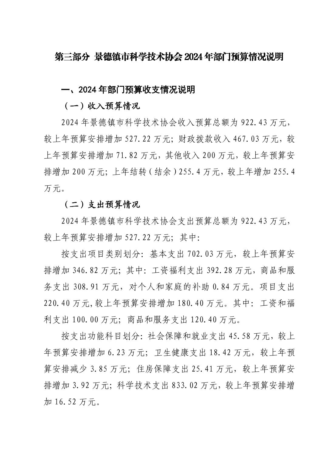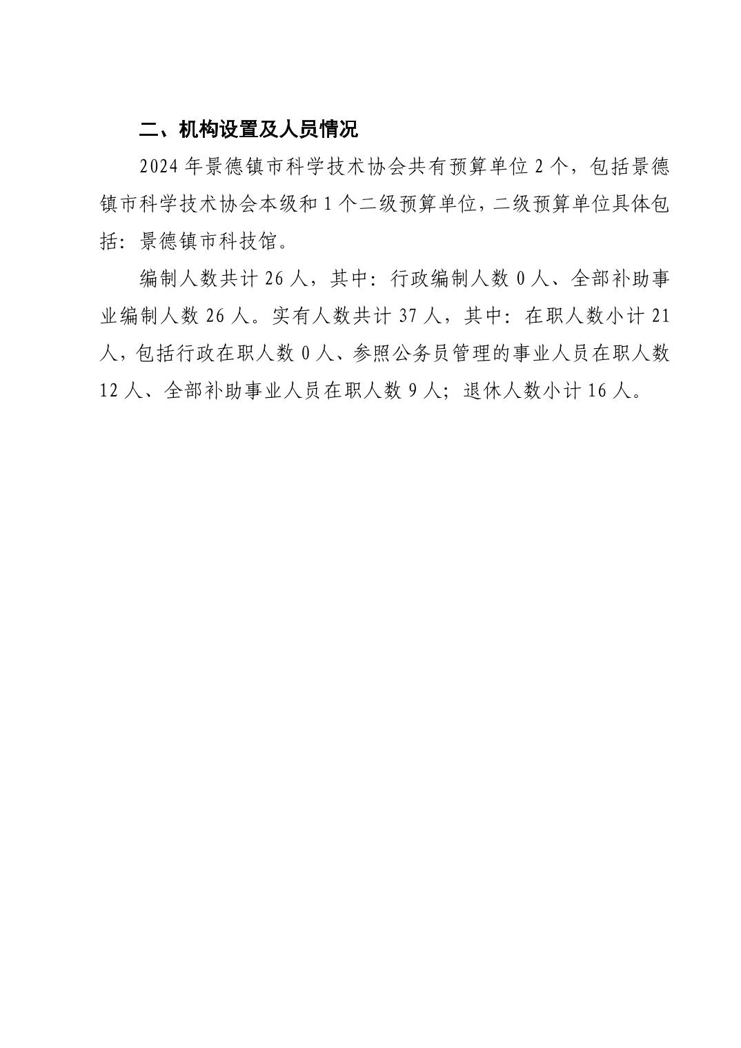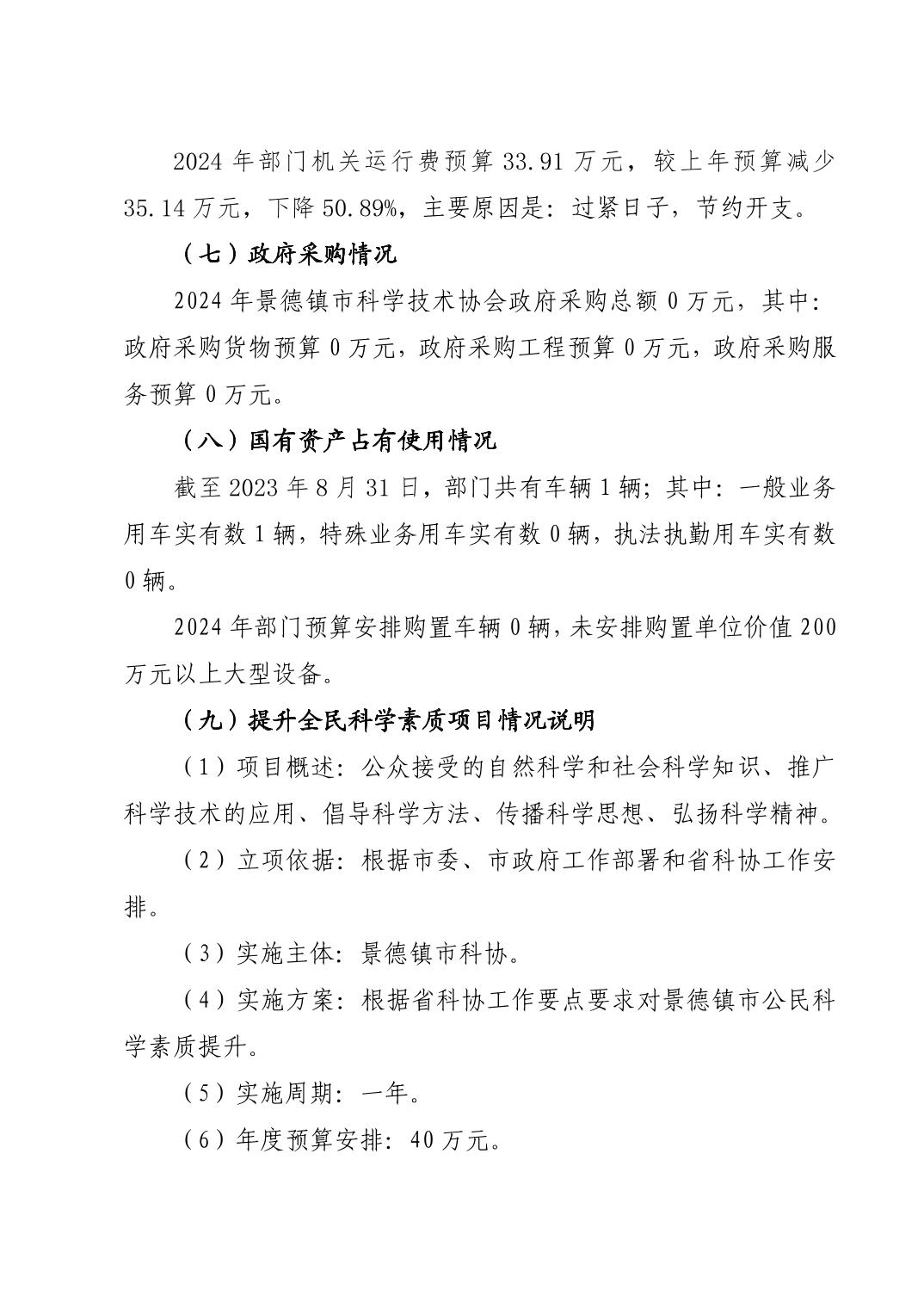 景德镇市科学技术协会2024年部门预算