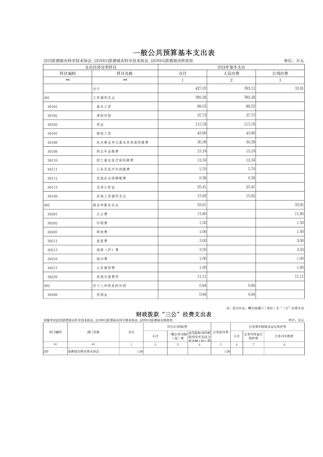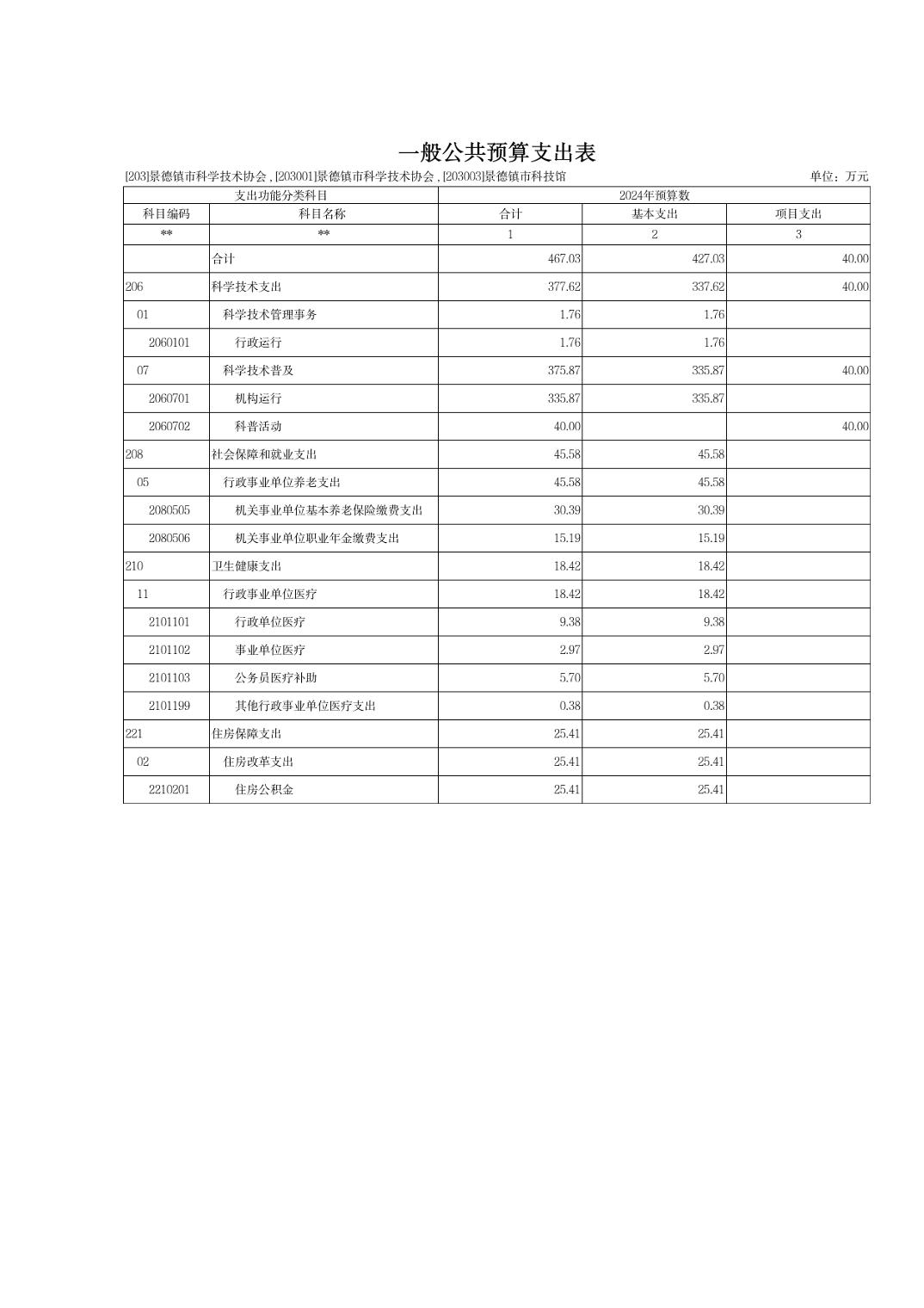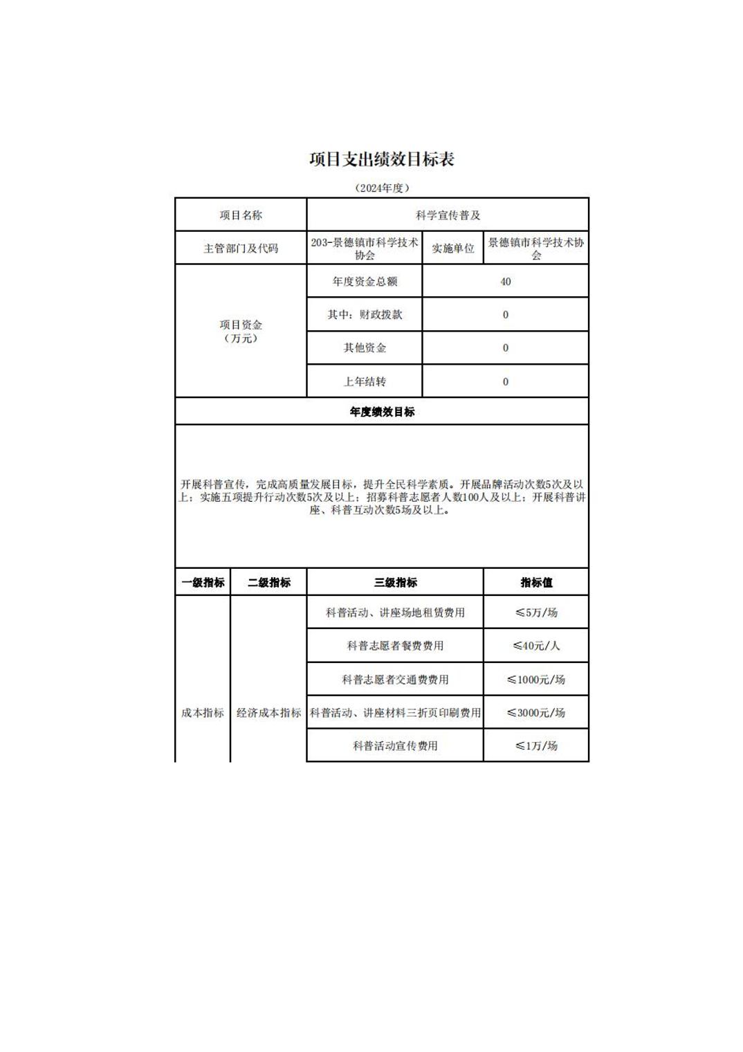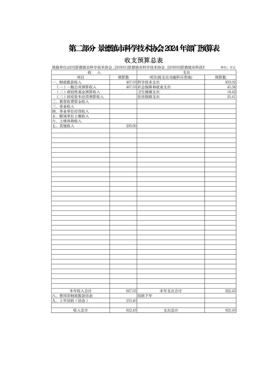 景德镇市科学技术协会2024年部门预算
