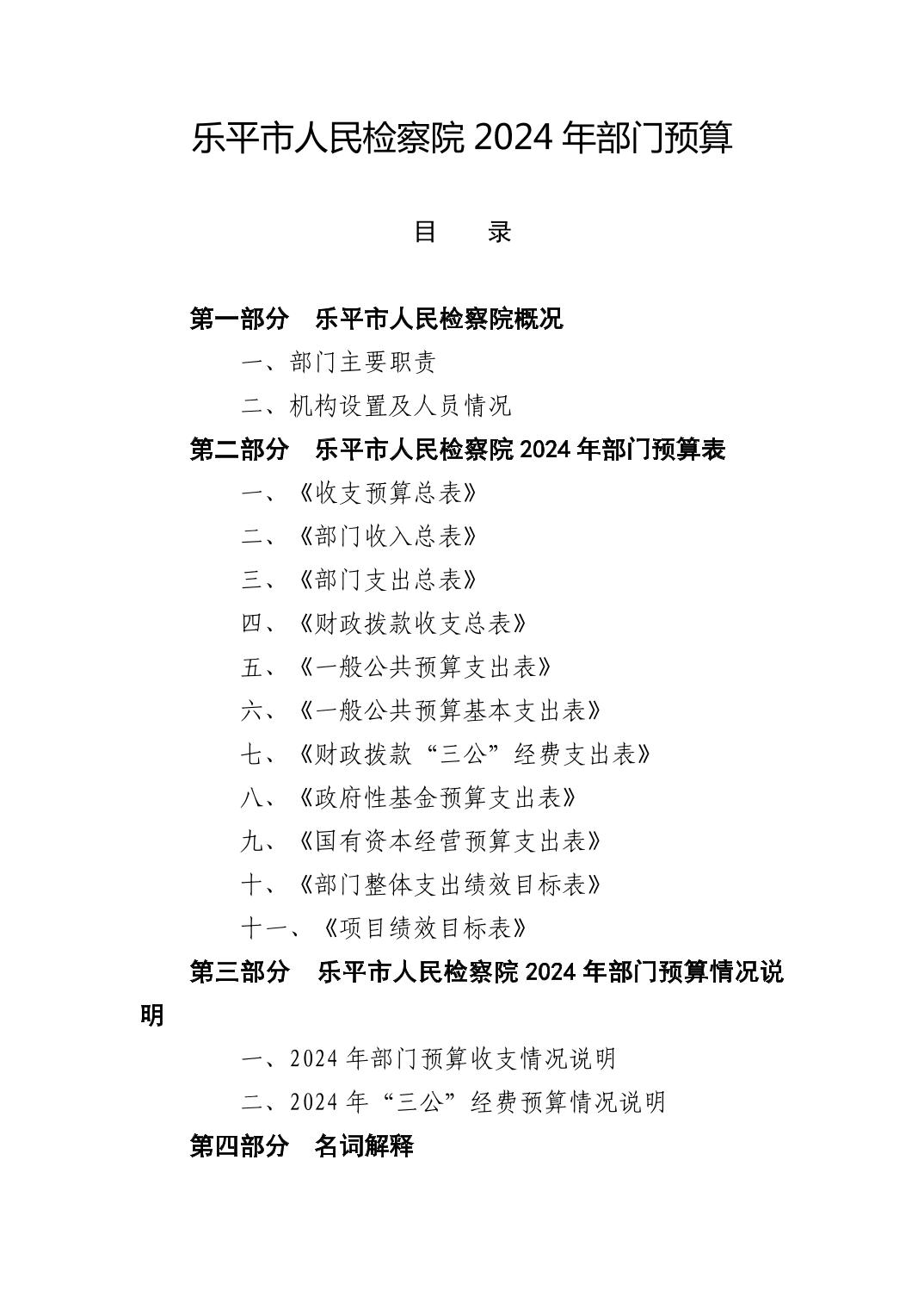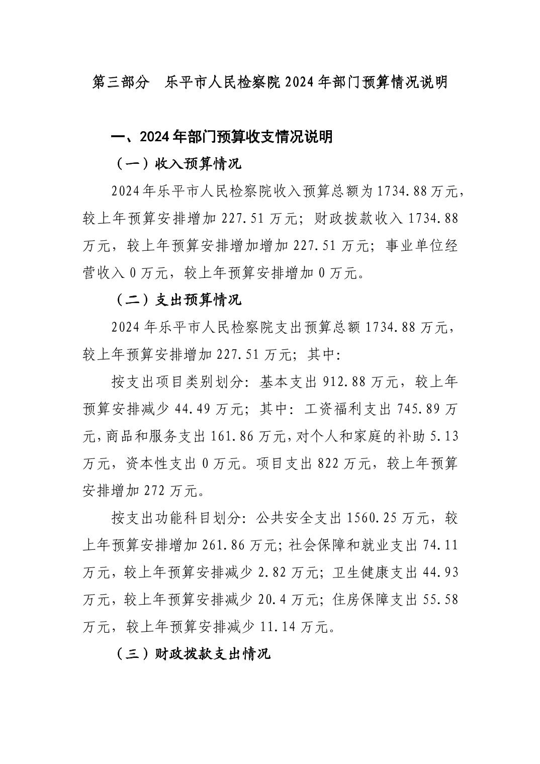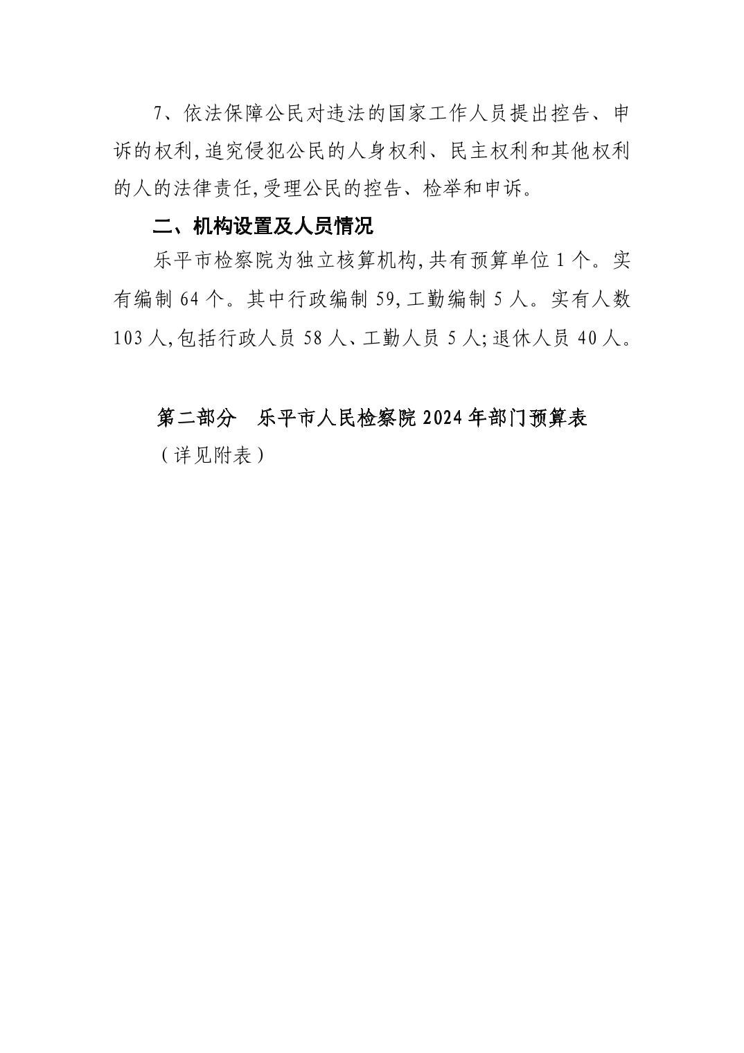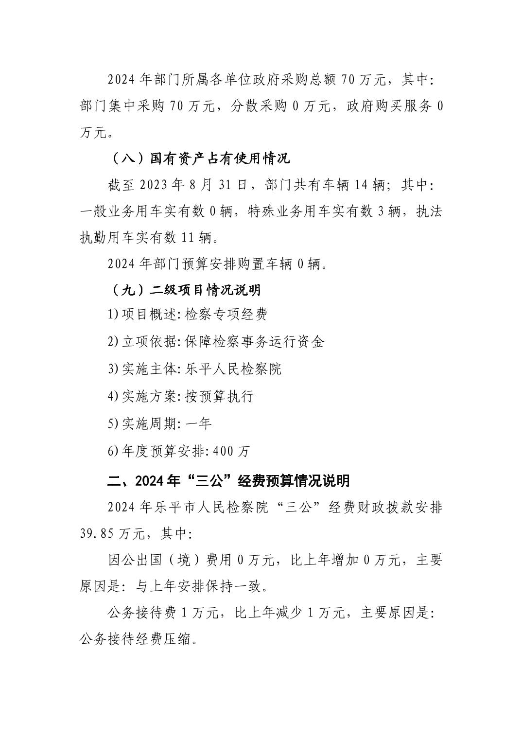 乐平市人民检察院2024年部门预算