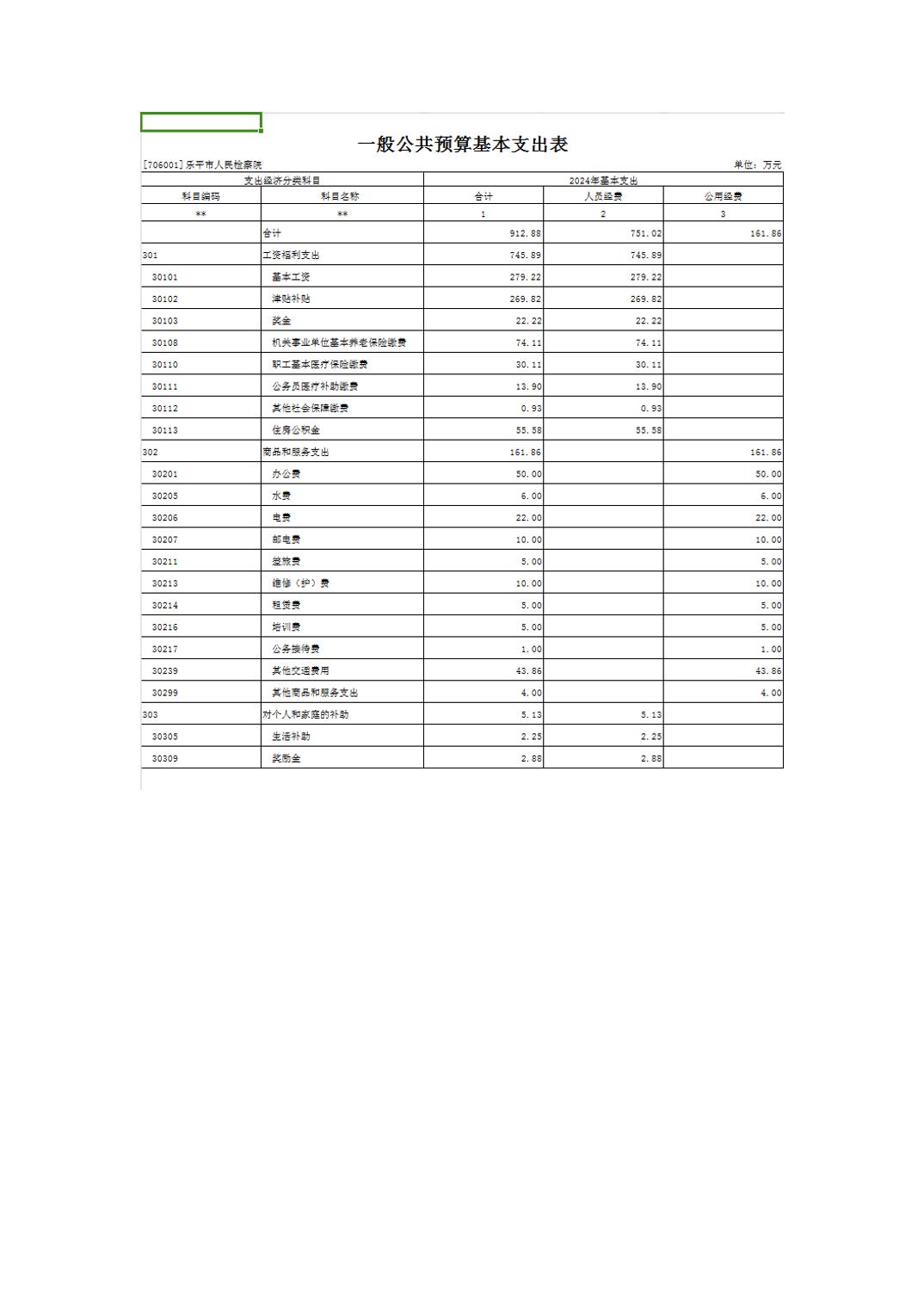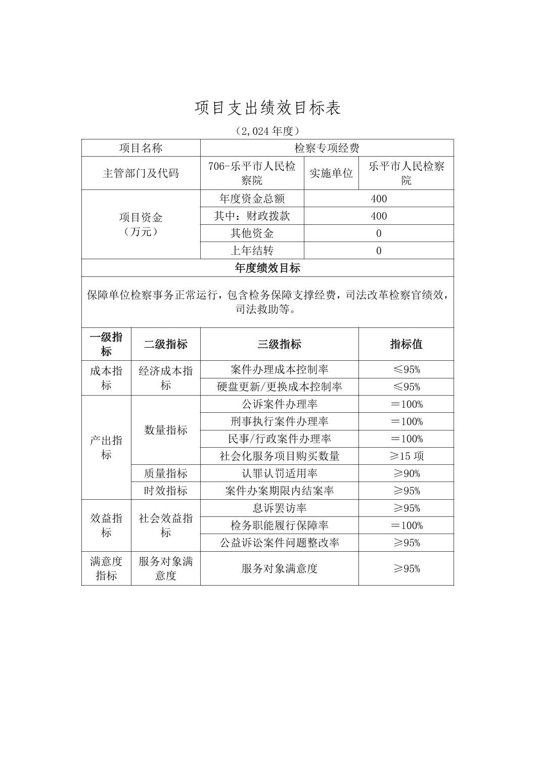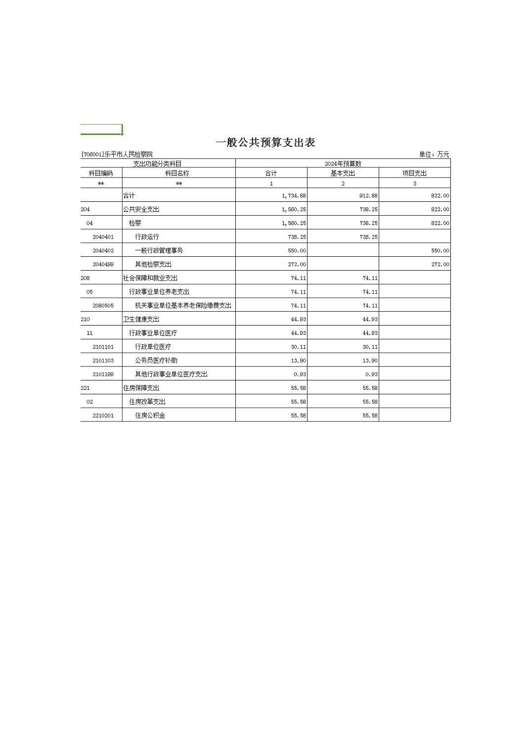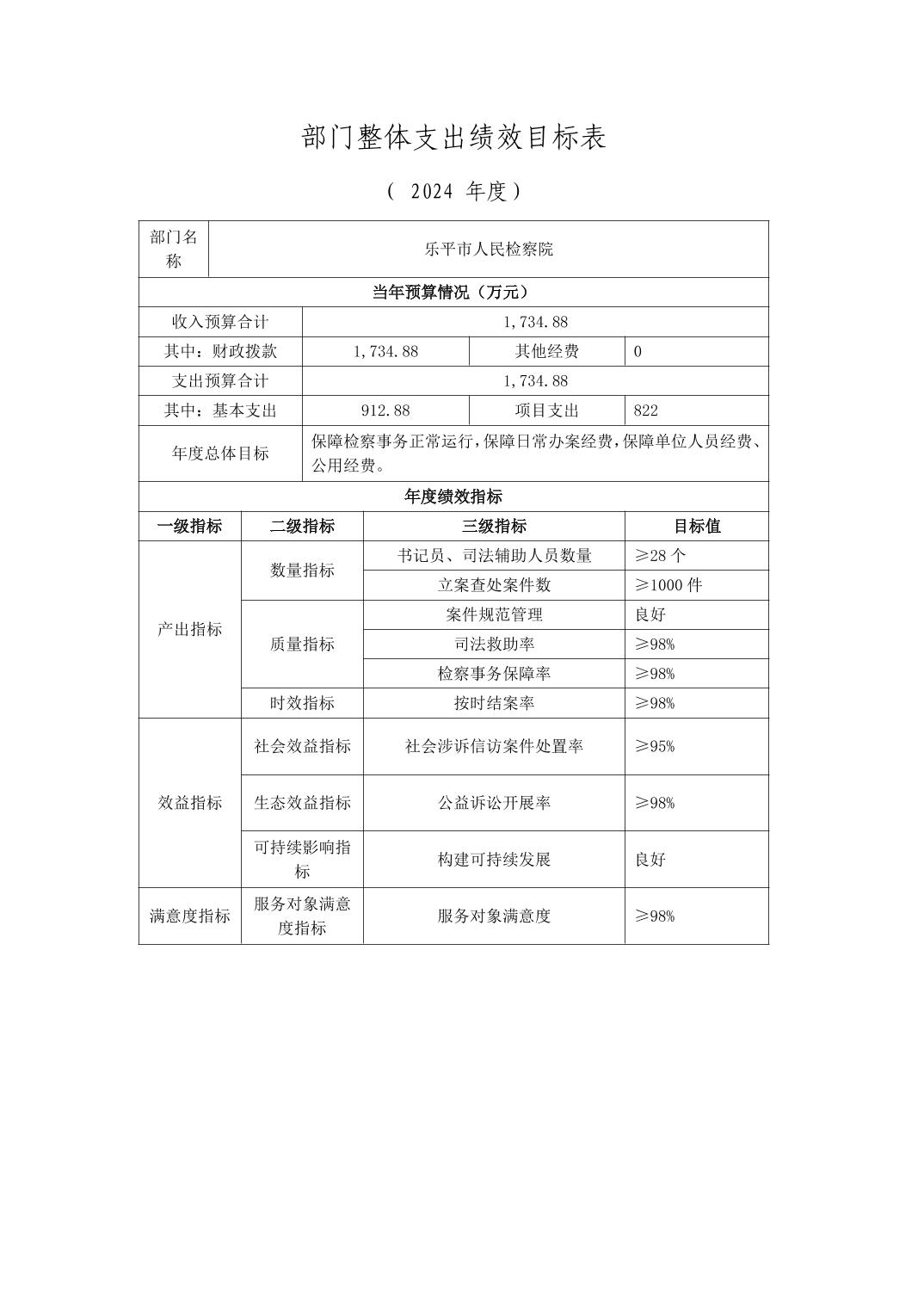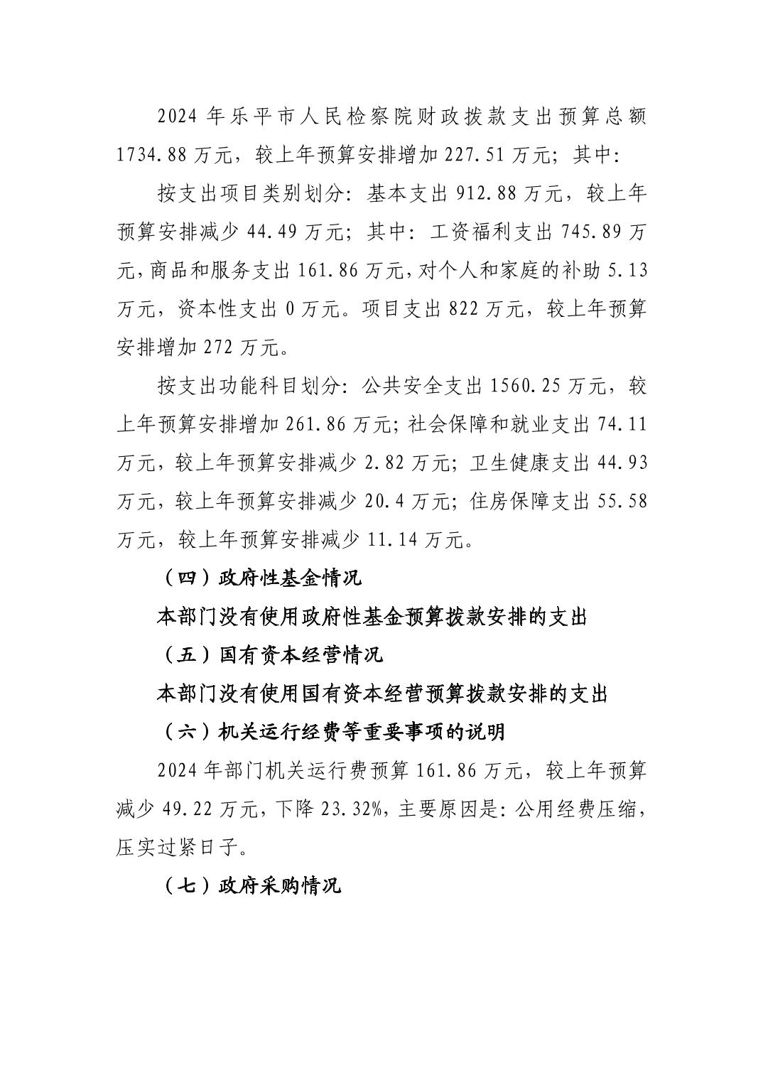 乐平市人民检察院2024年部门预算