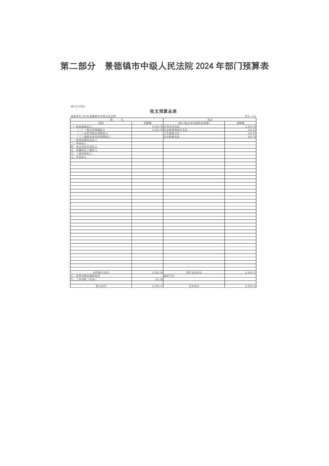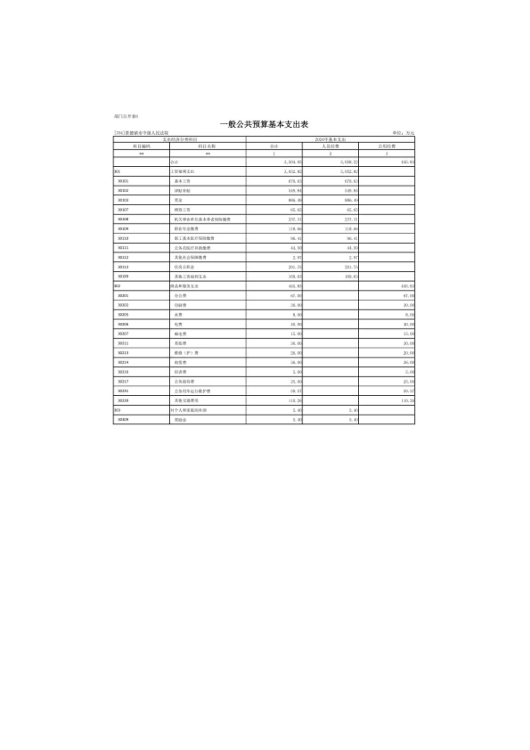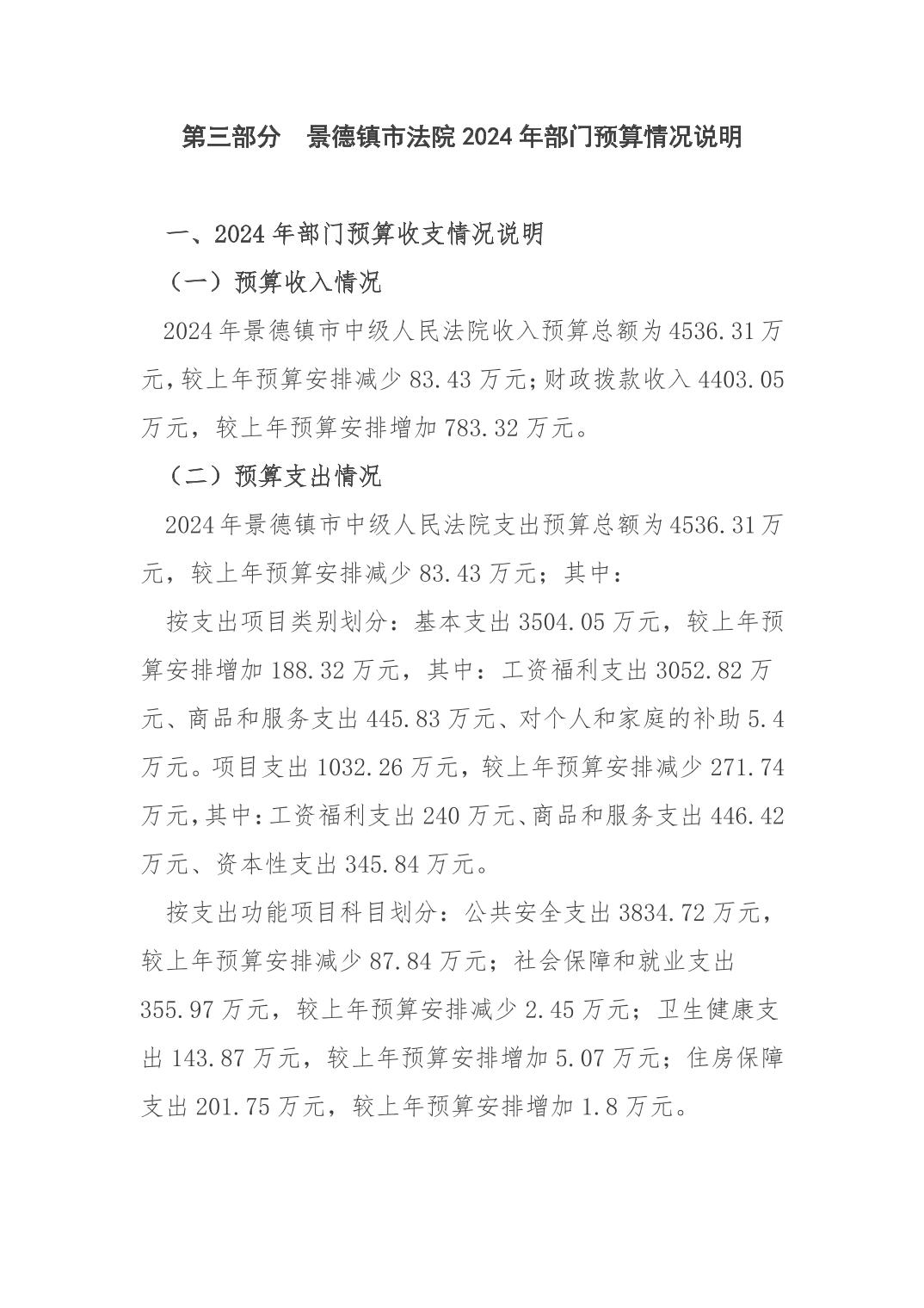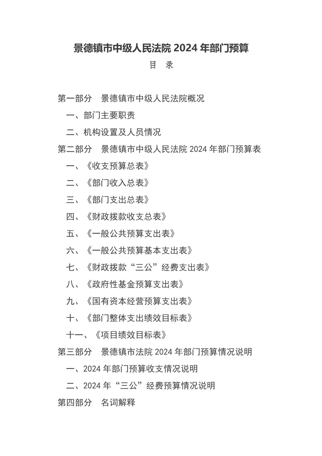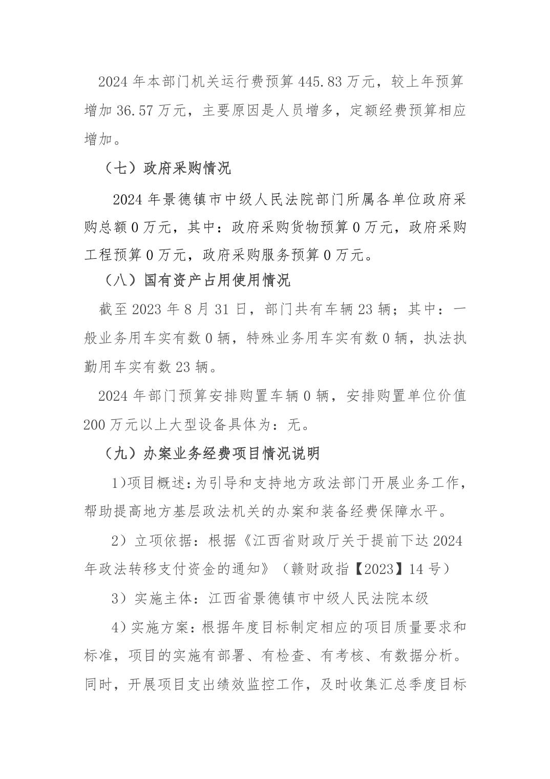 景德镇市中级人民法院2024年部门预算