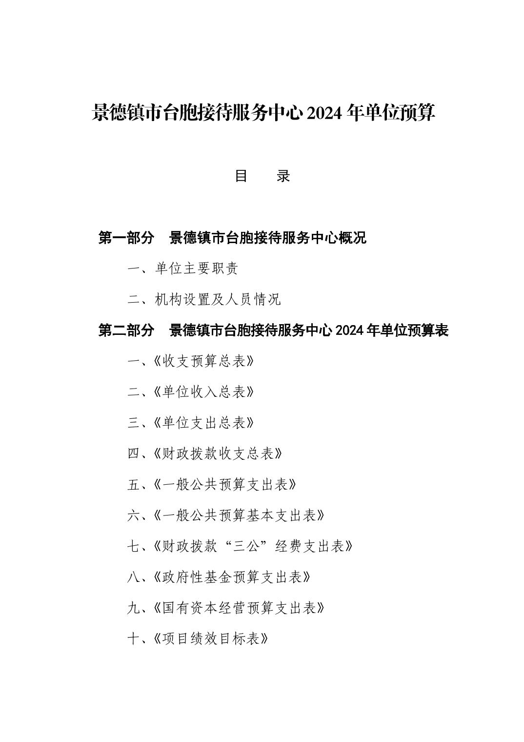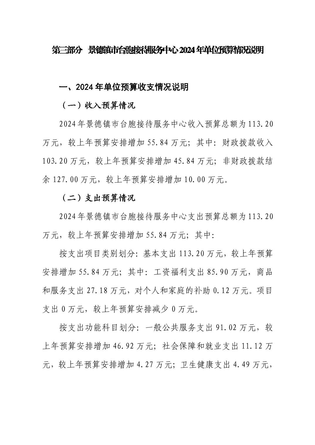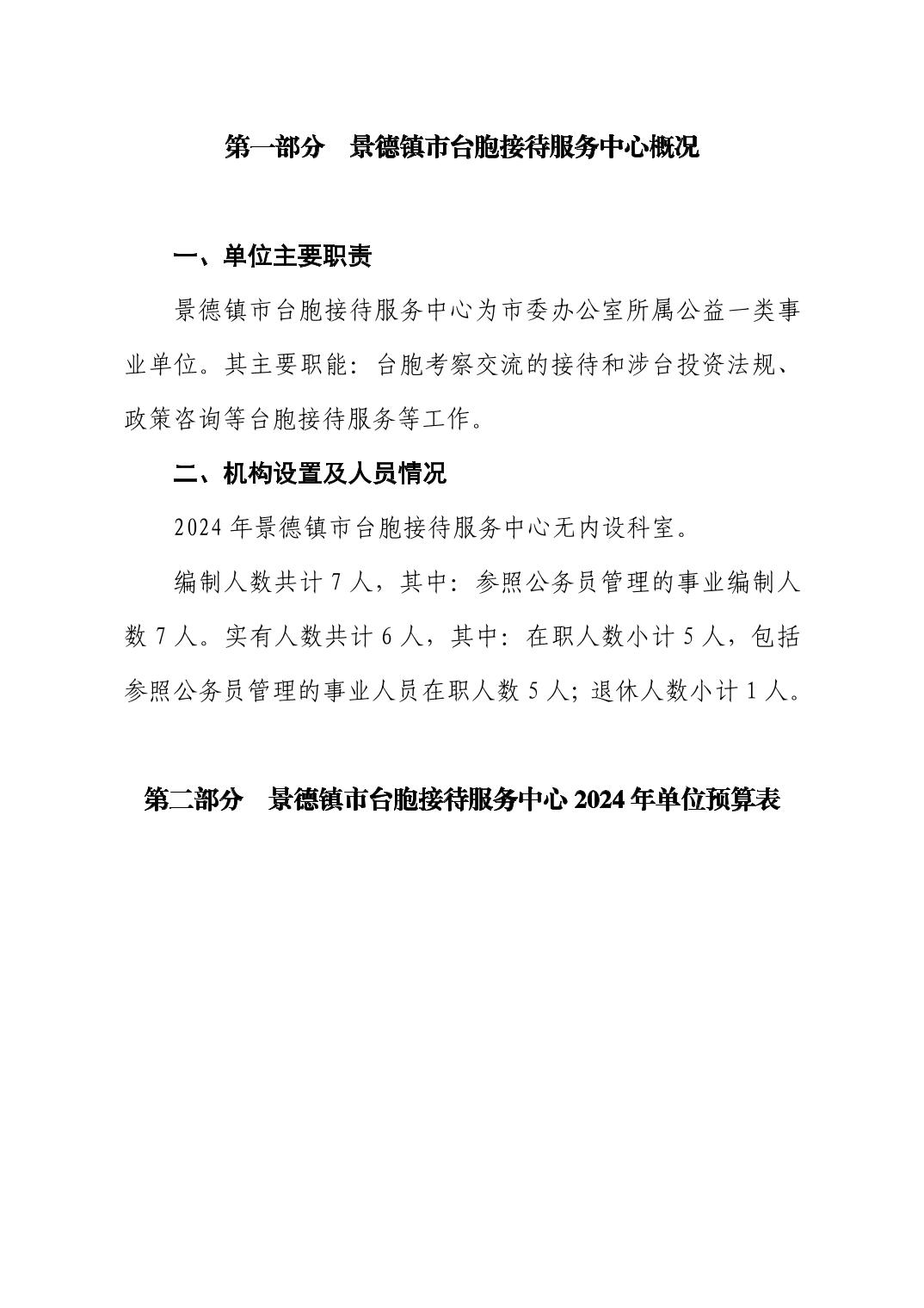 景德镇市台胞接待服务中心2024年单位预算