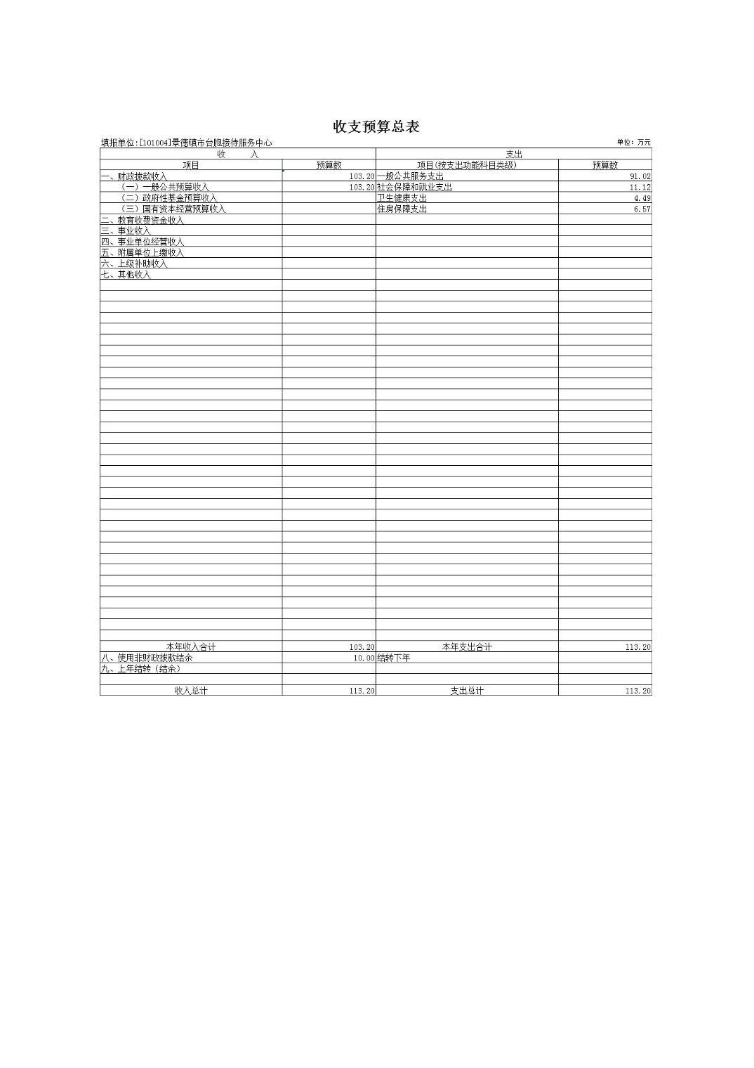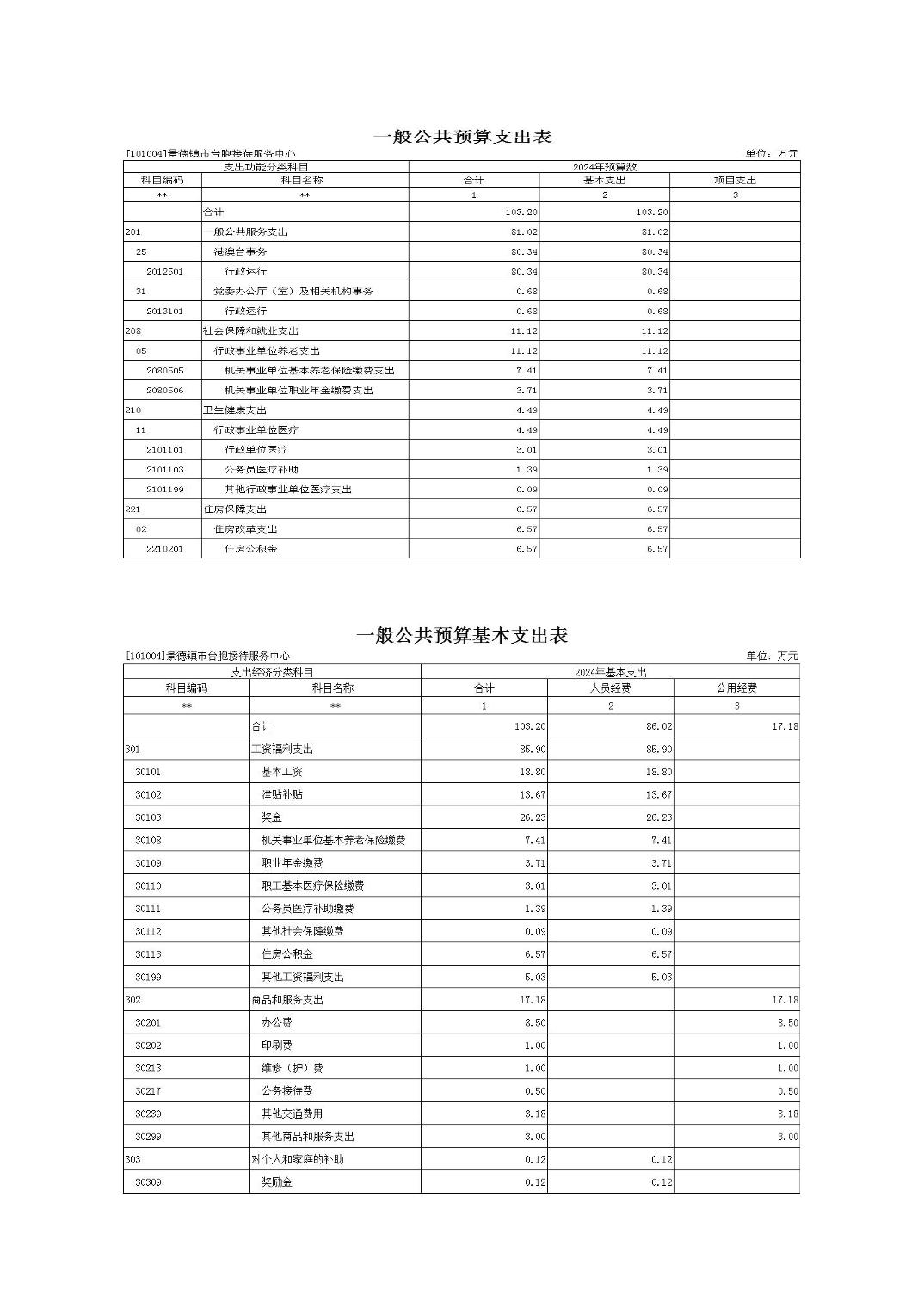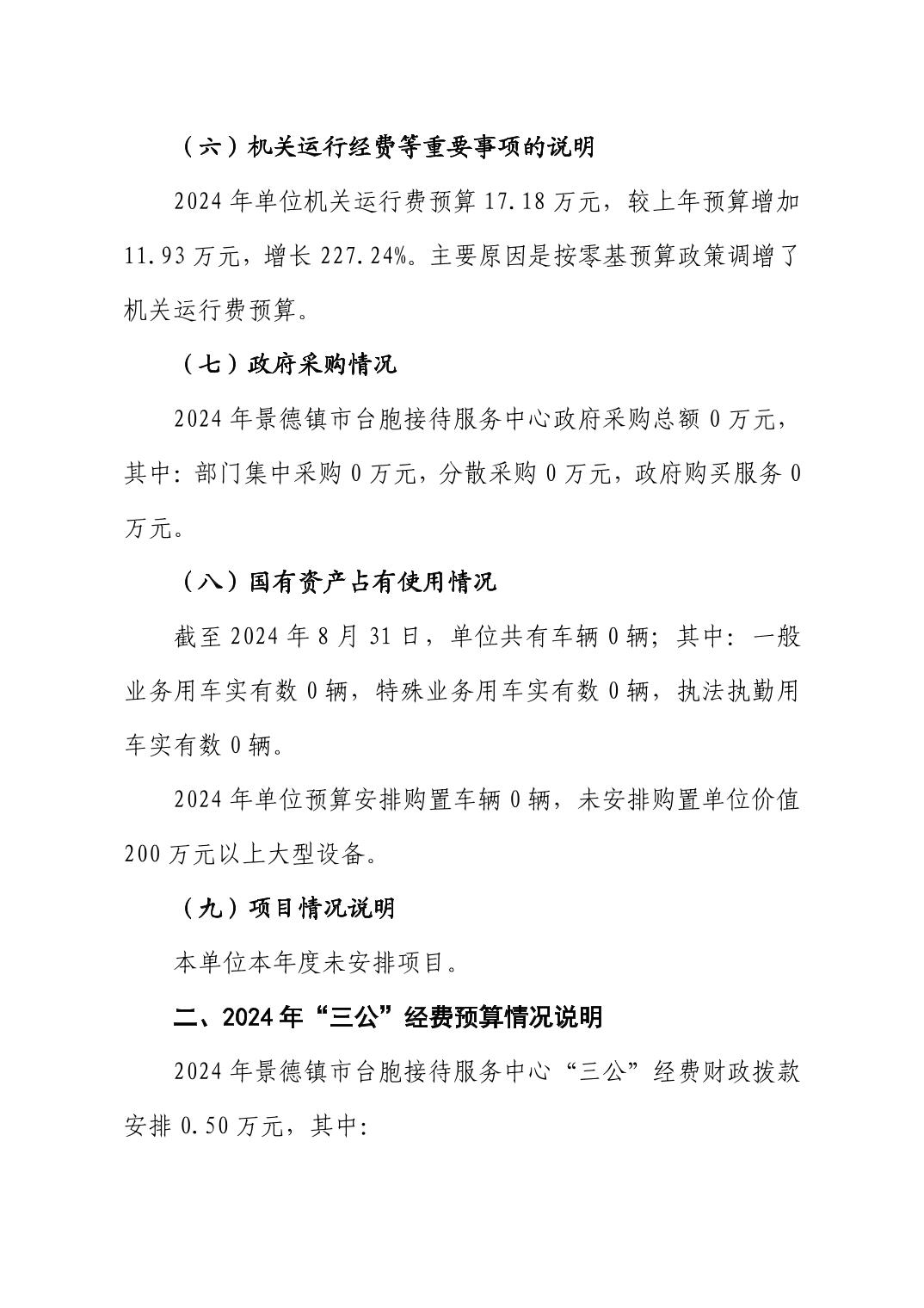 景德镇市台胞接待服务中心2024年单位预算