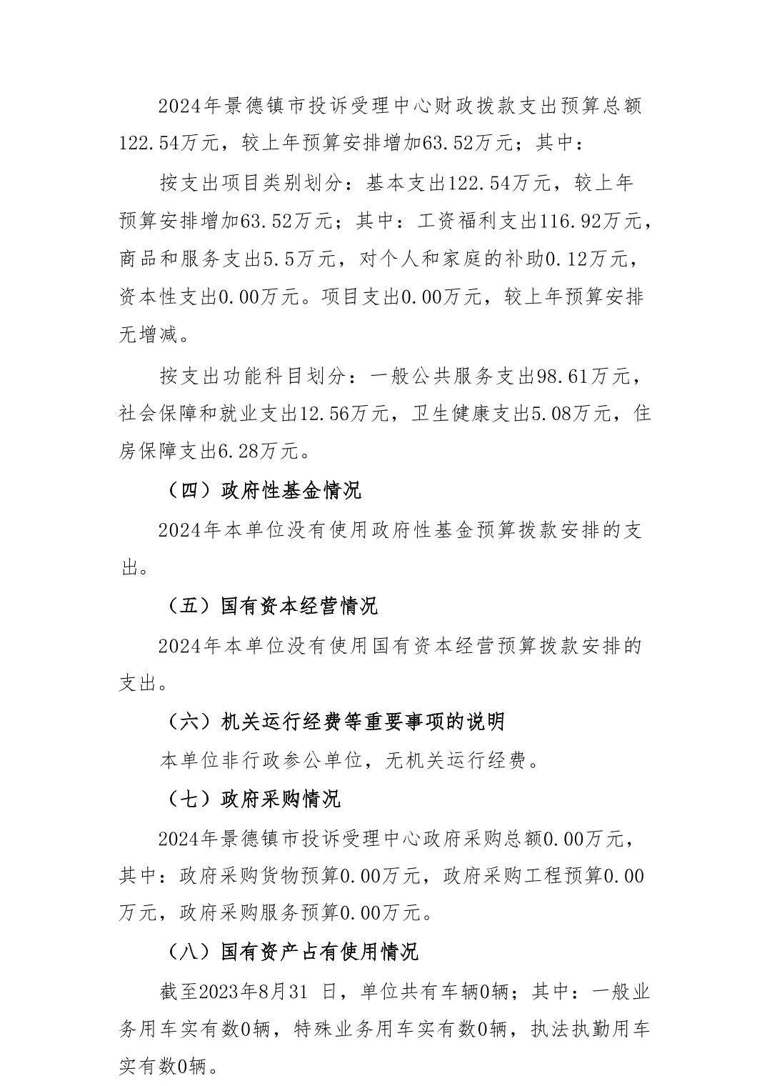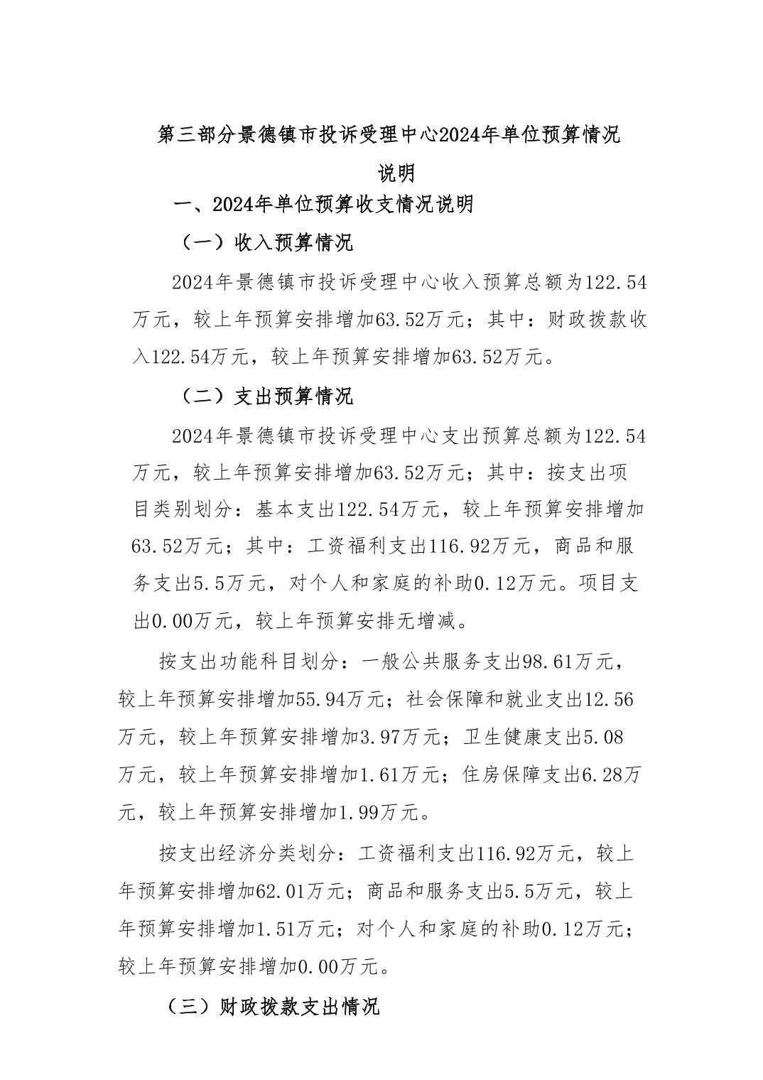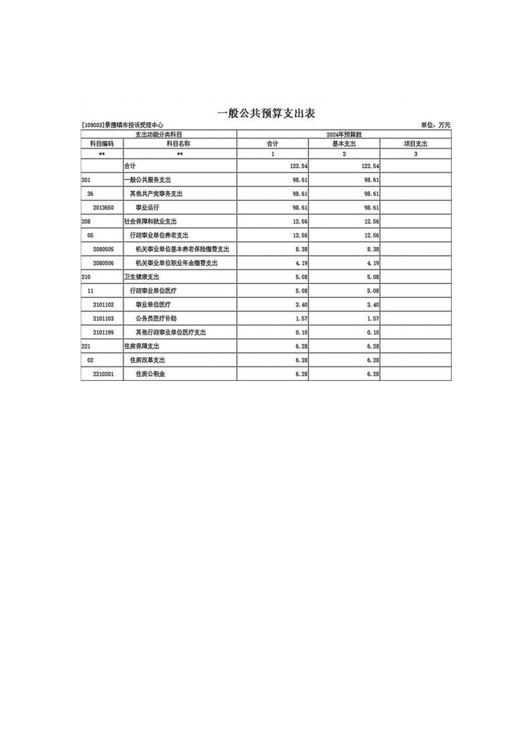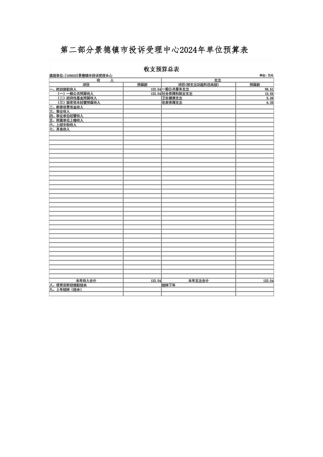 景德镇市投诉受理中心2024年单位预算