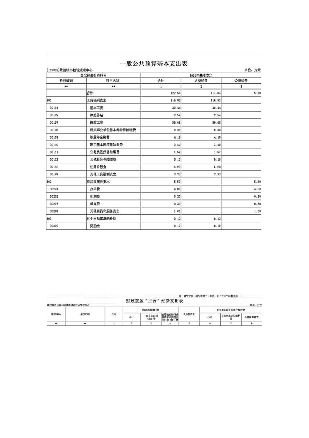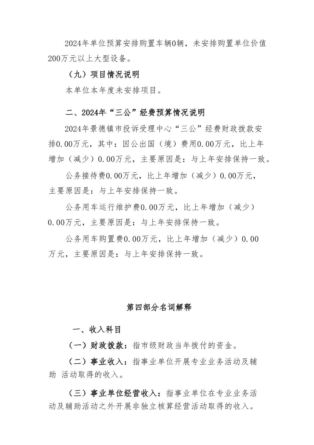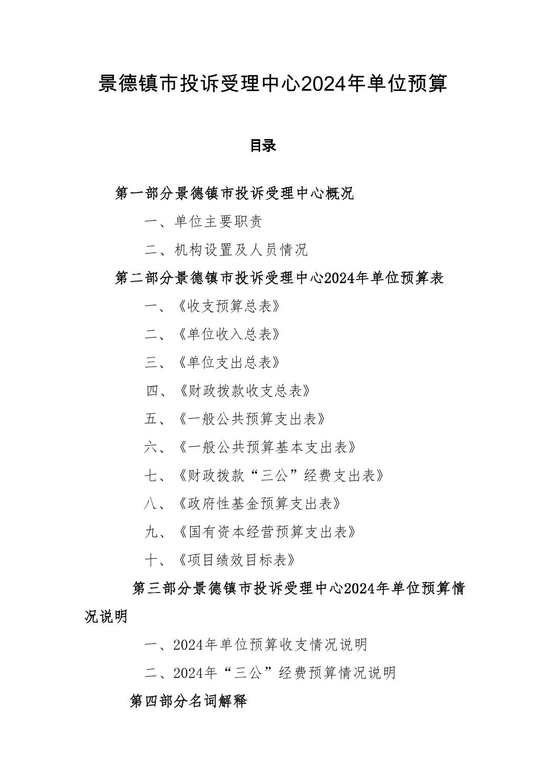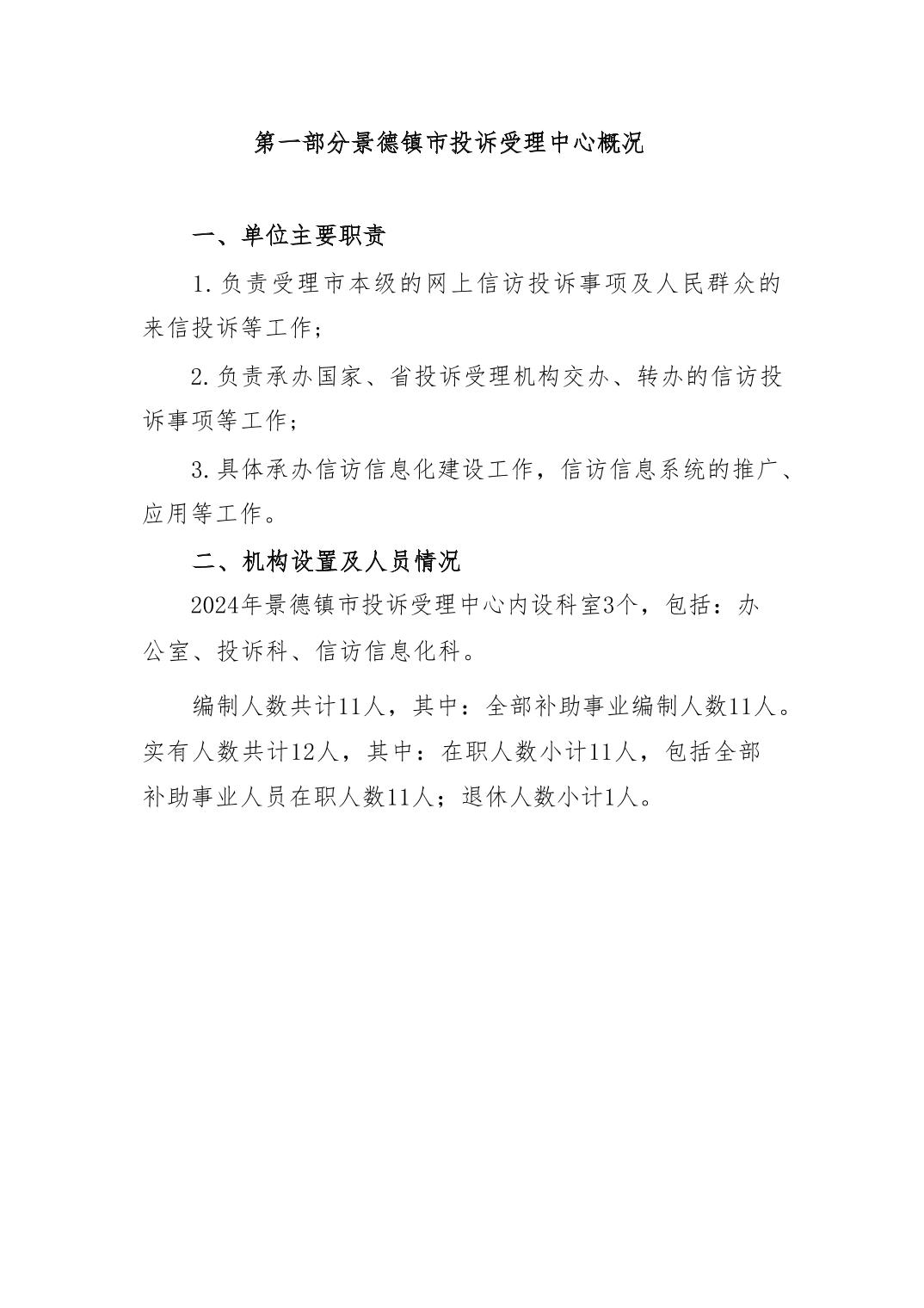 景德镇市投诉受理中心2024年单位预算