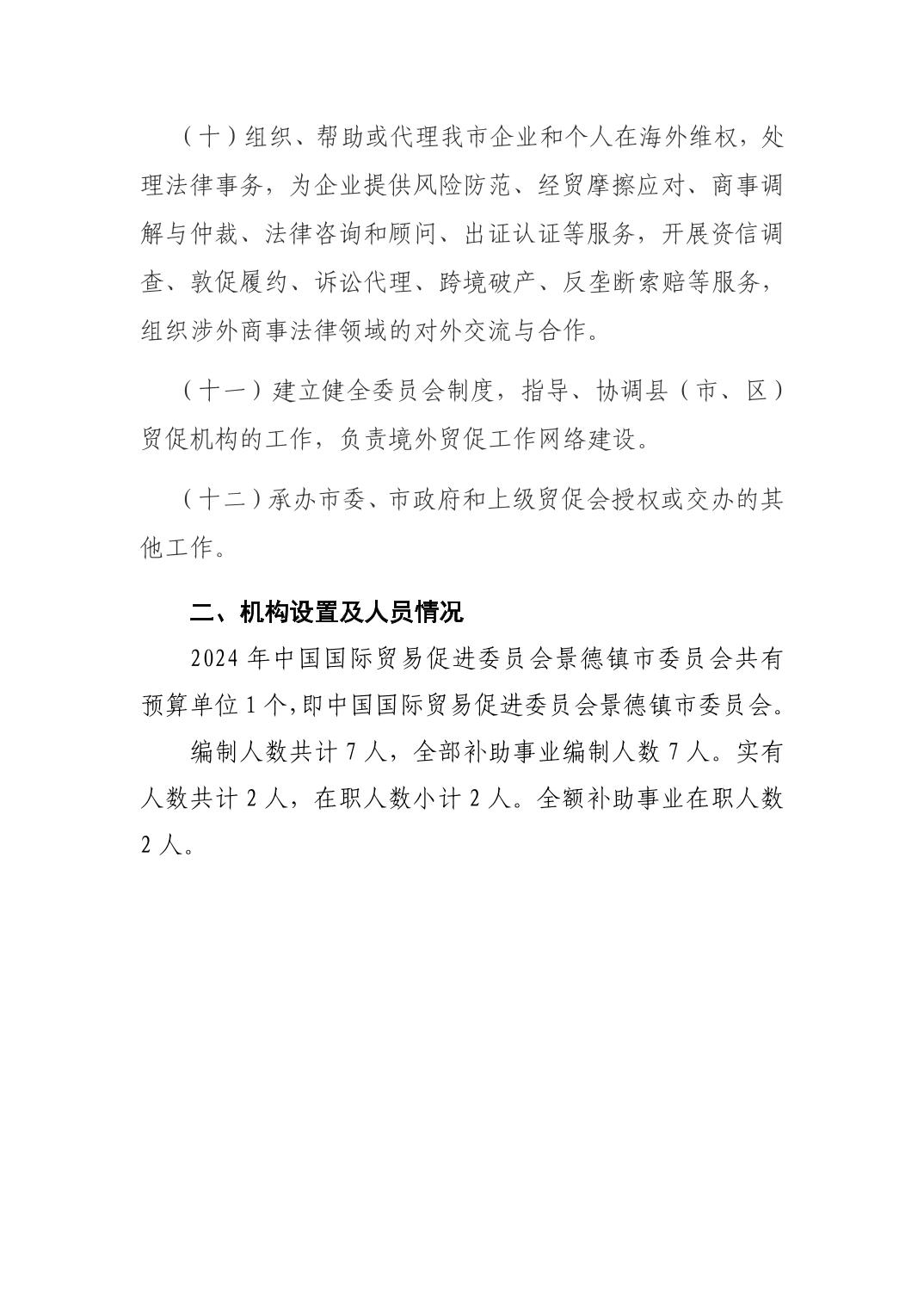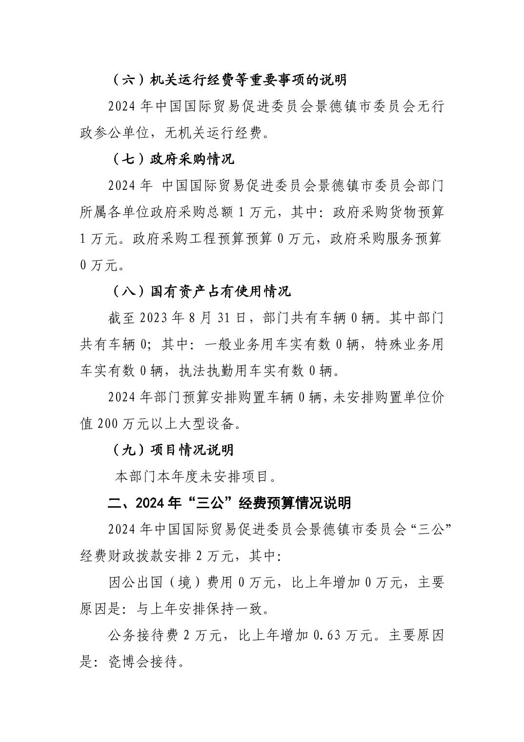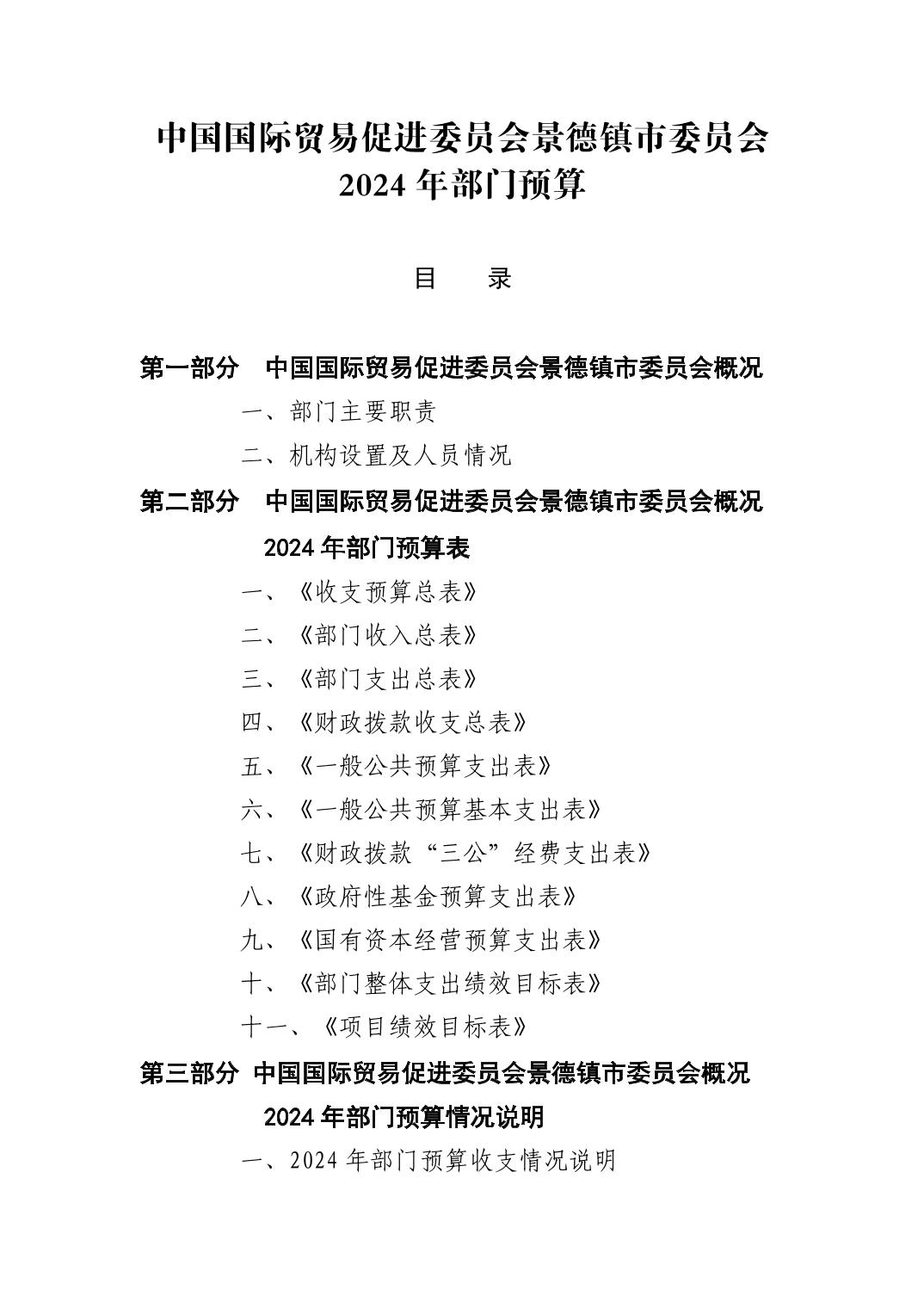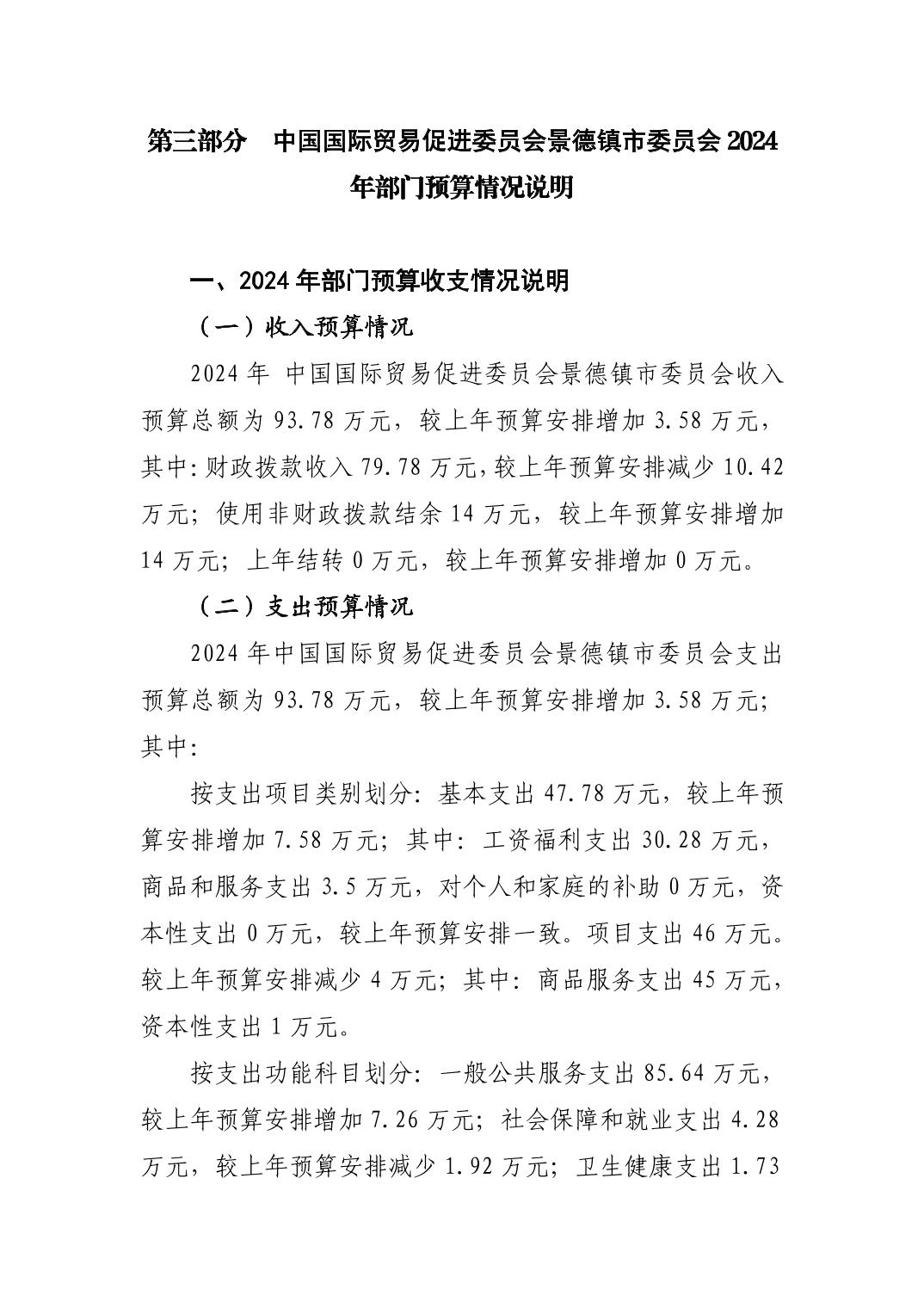 中国国际贸易促进委员会景德镇市委员会2024年部门预算