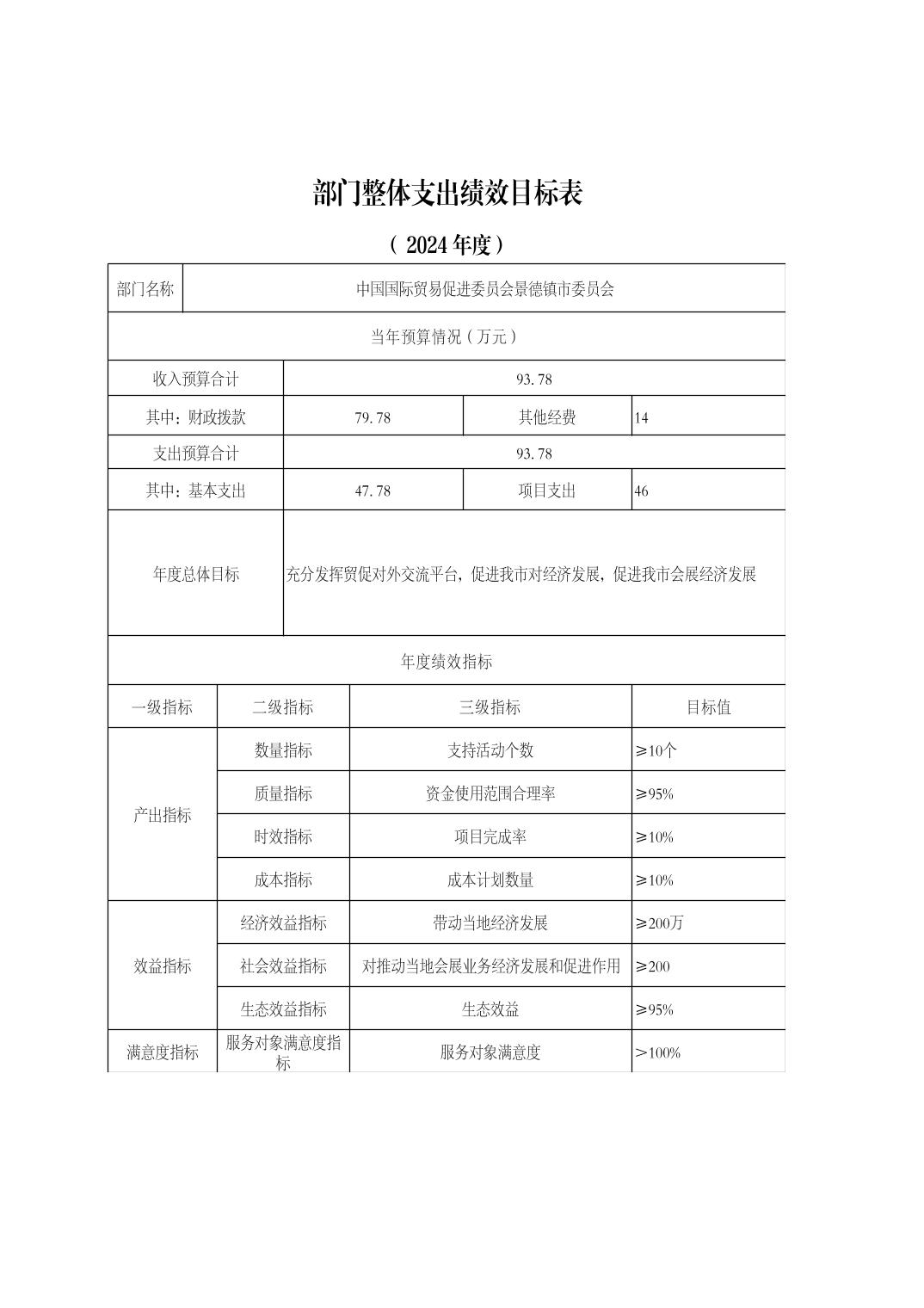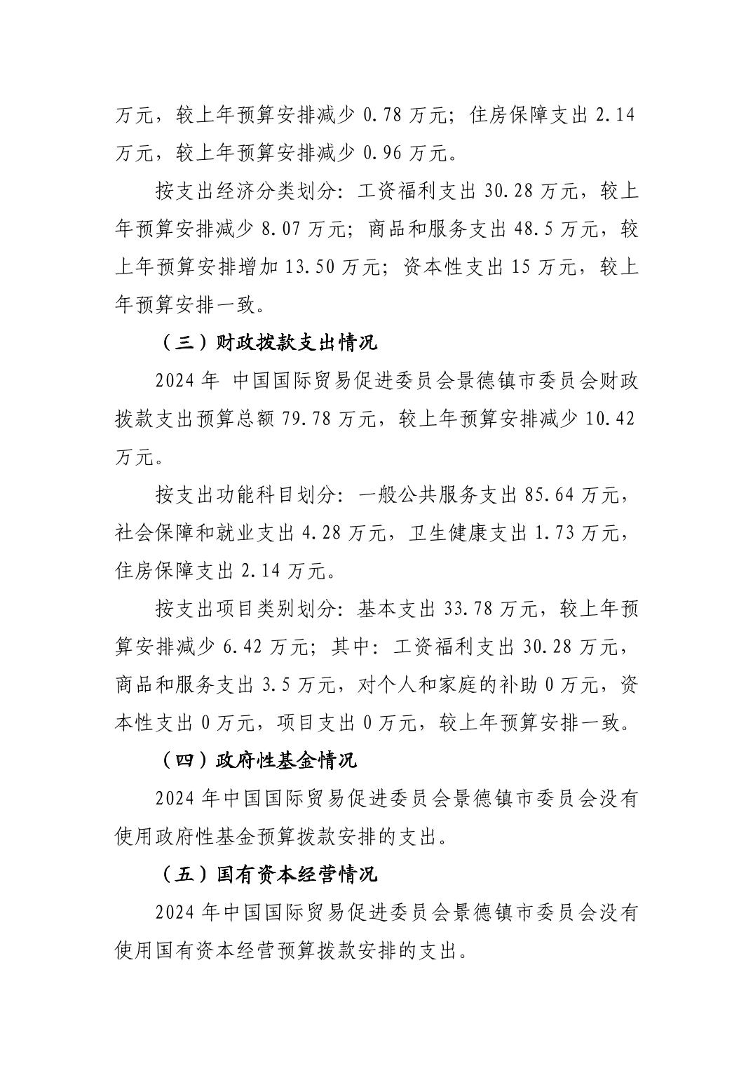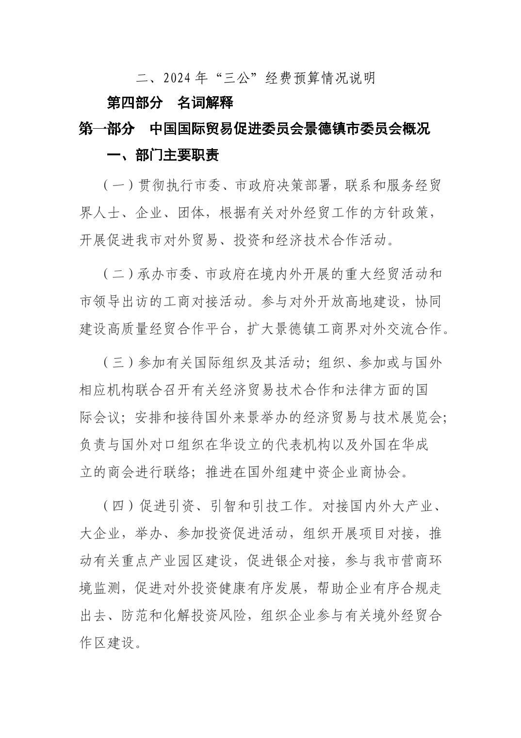 中国国际贸易促进委员会景德镇市委员会2024年部门预算