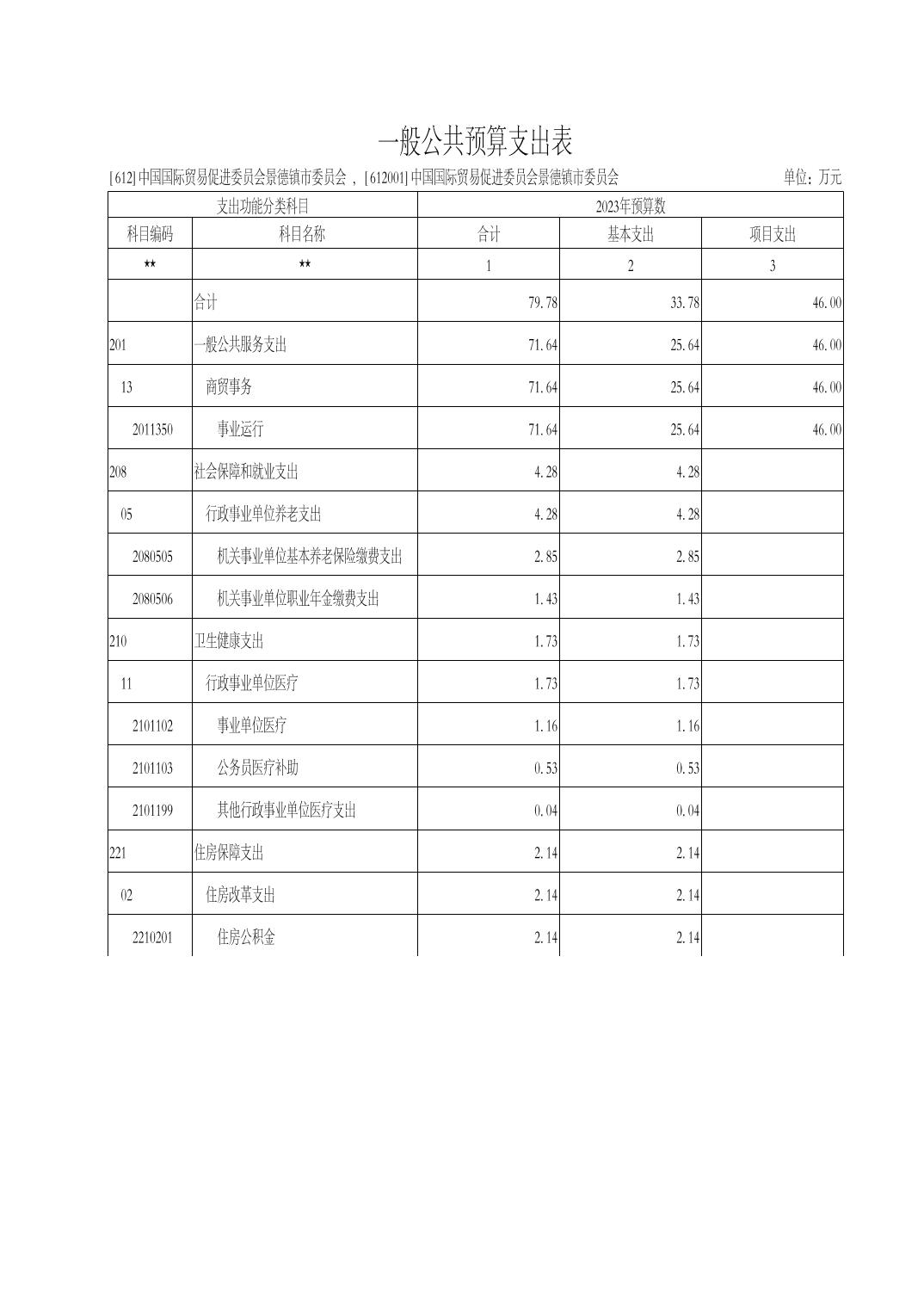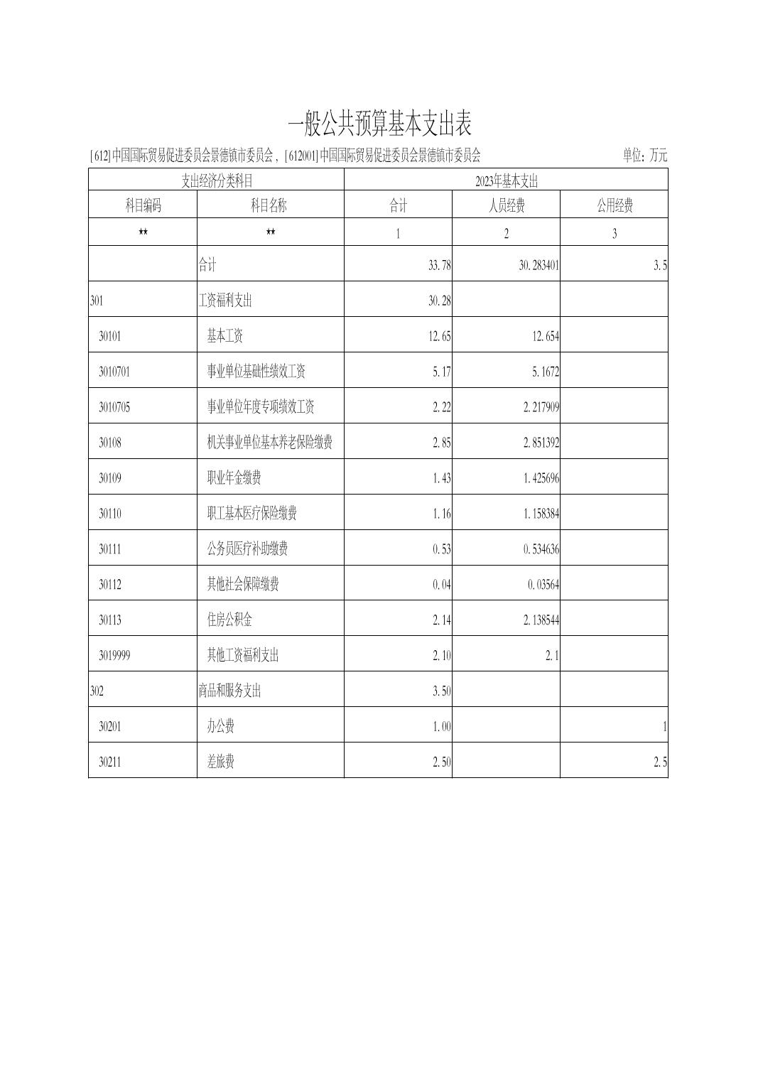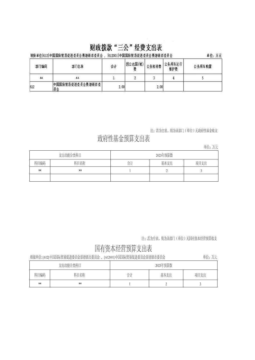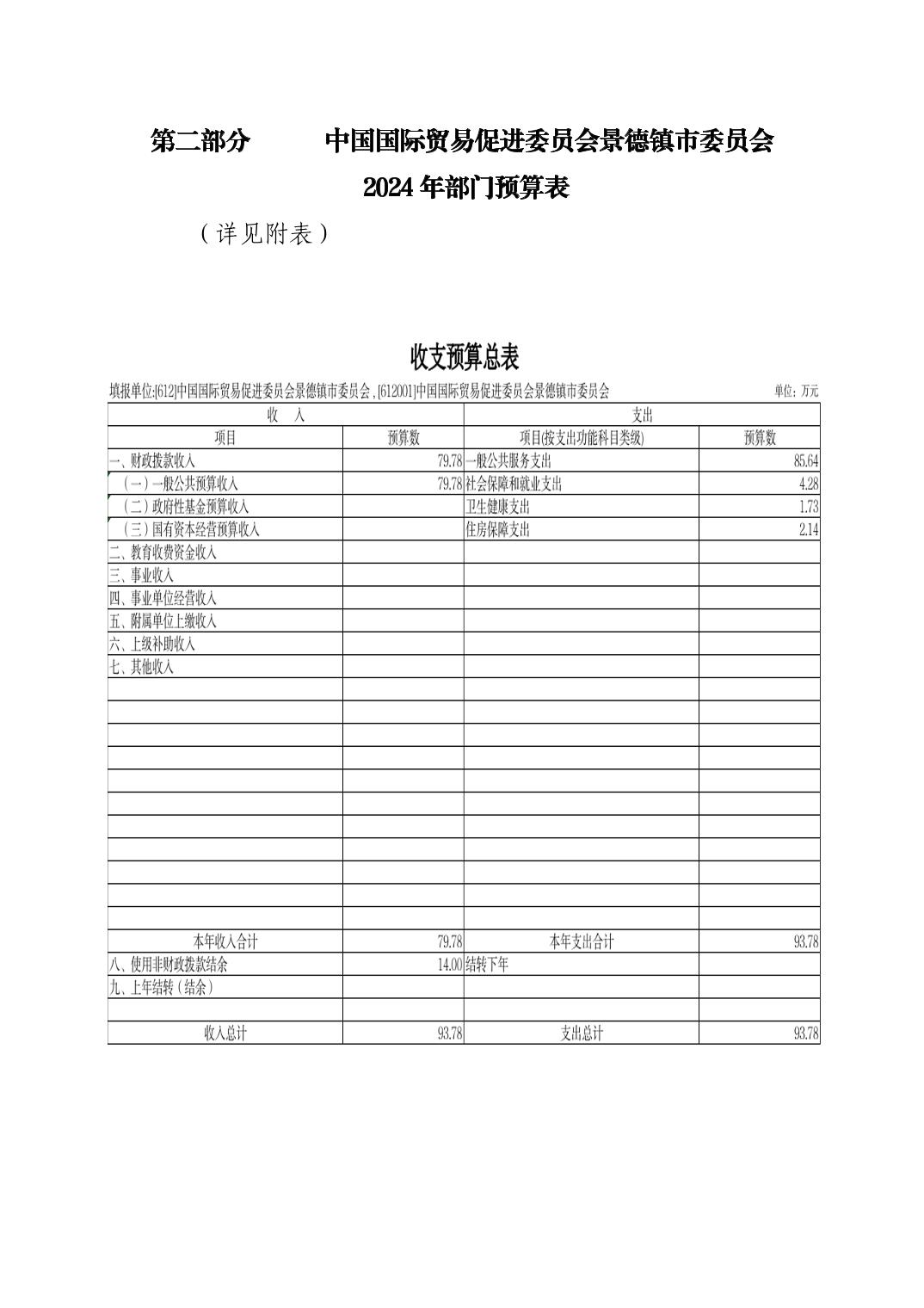 中国国际贸易促进委员会景德镇市委员会2024年部门预算