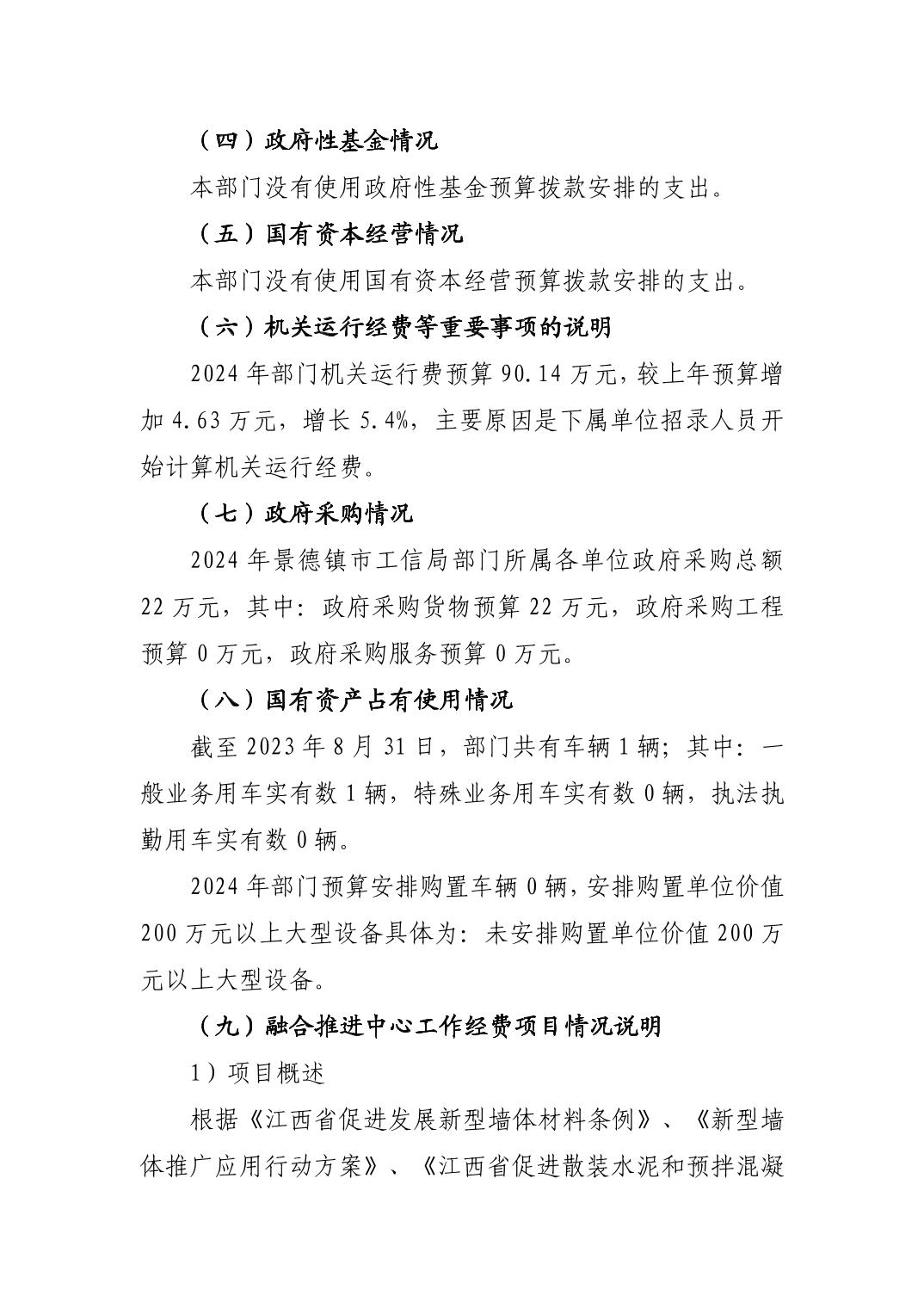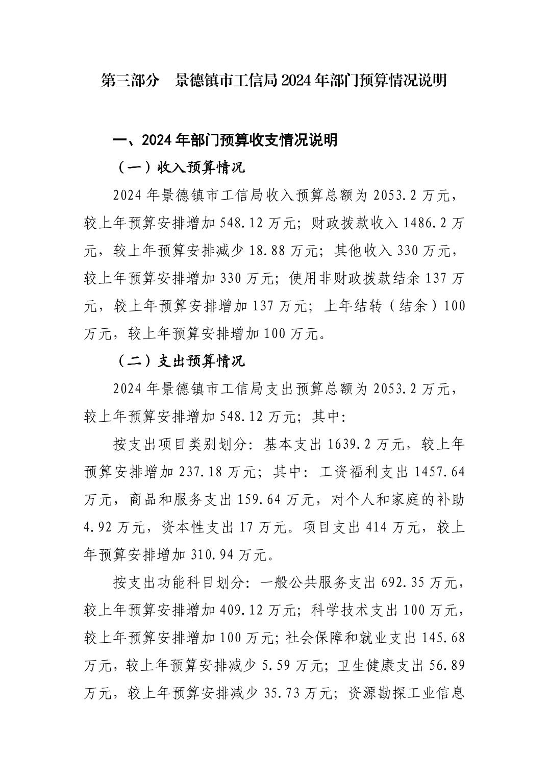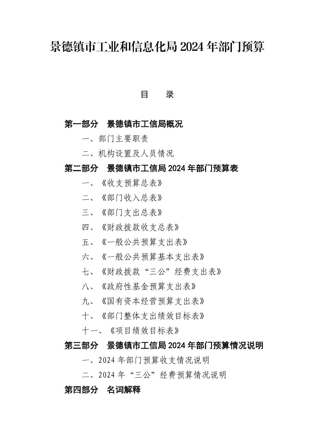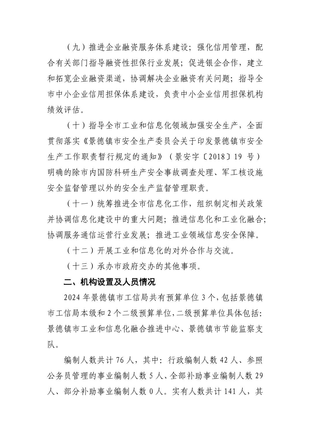 景德镇市工业和信息化局2024年部门预算