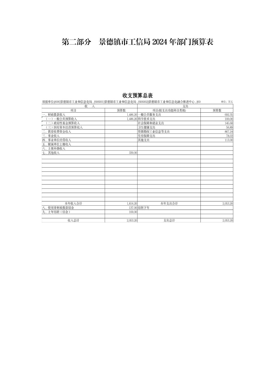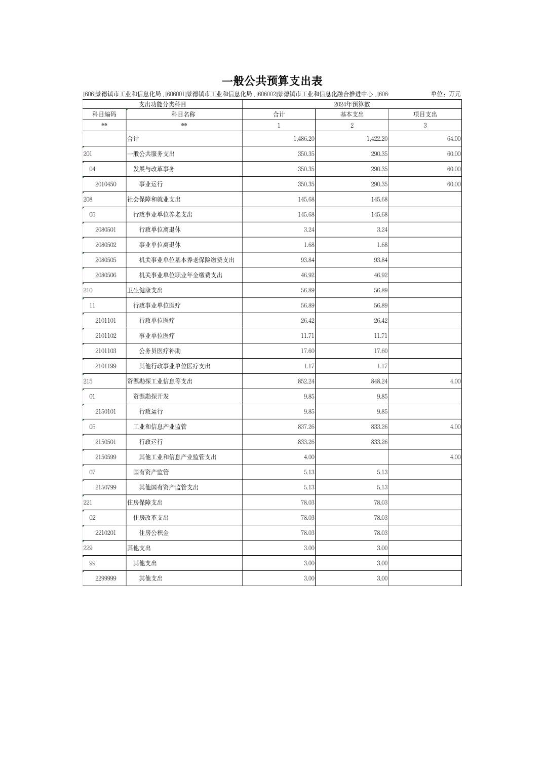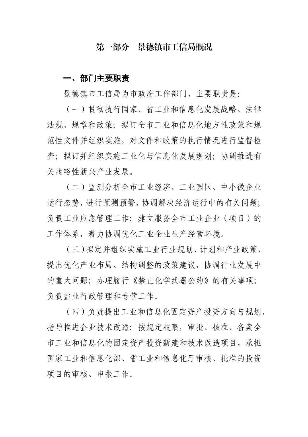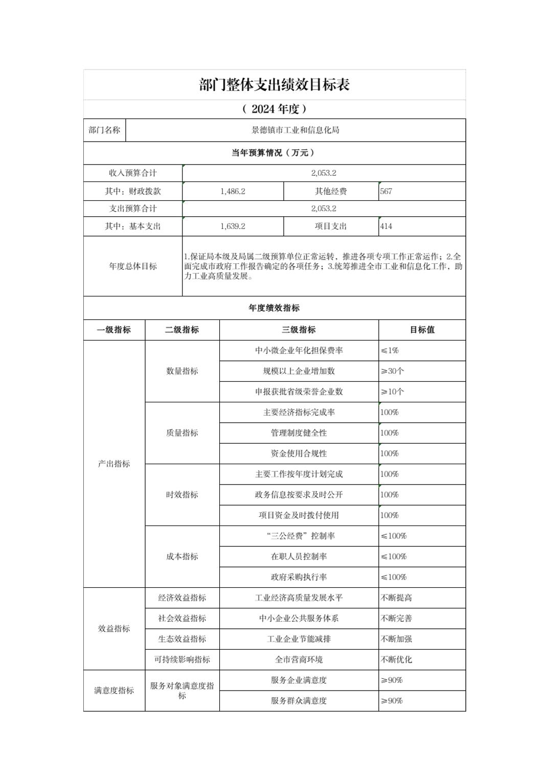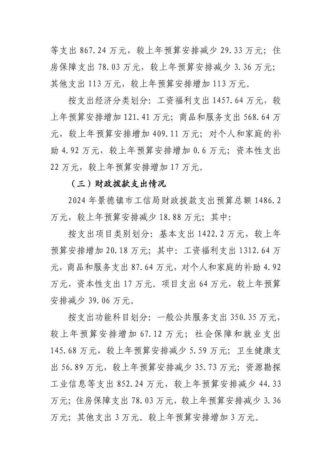 景德镇市工业和信息化局2024年部门预算