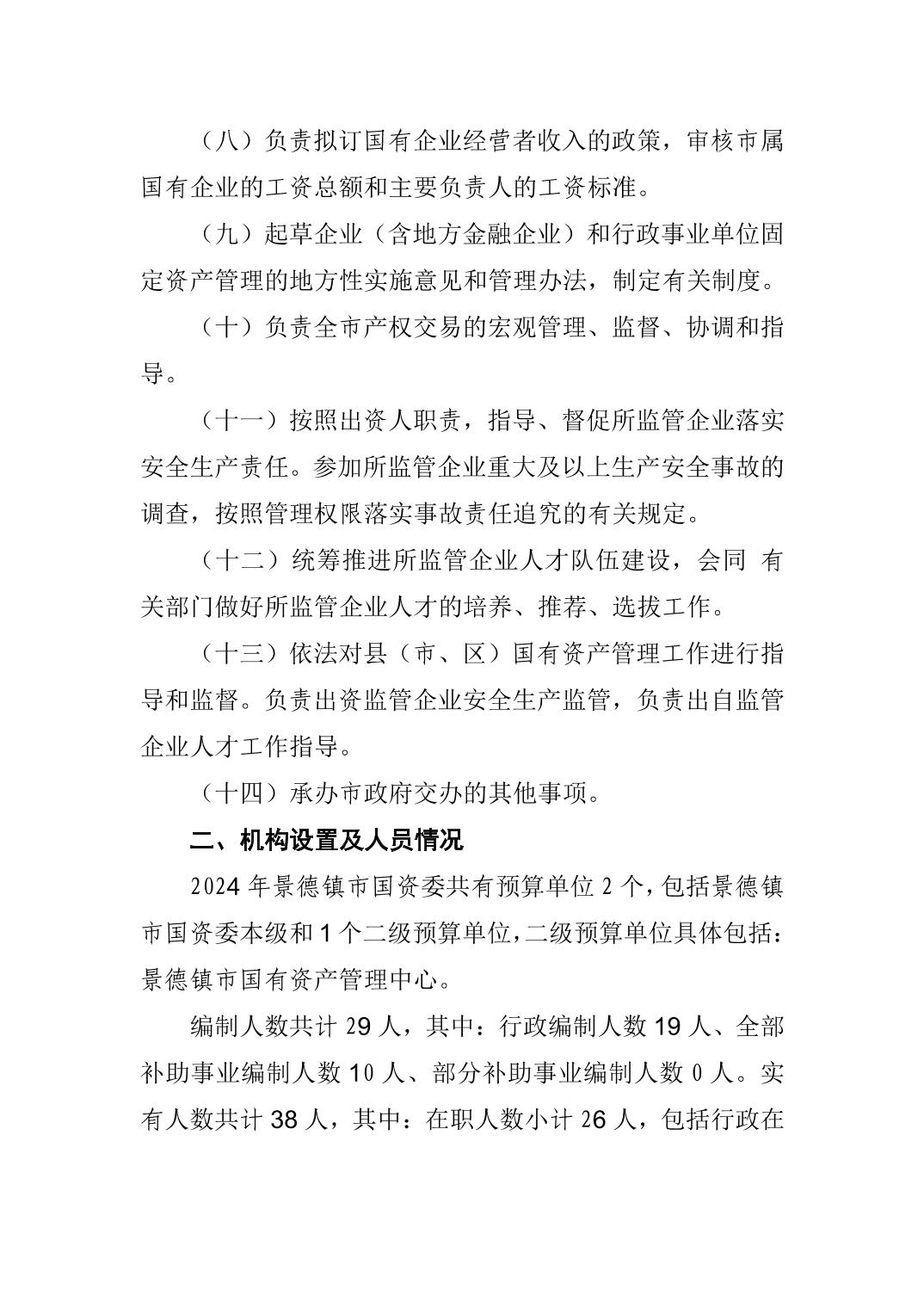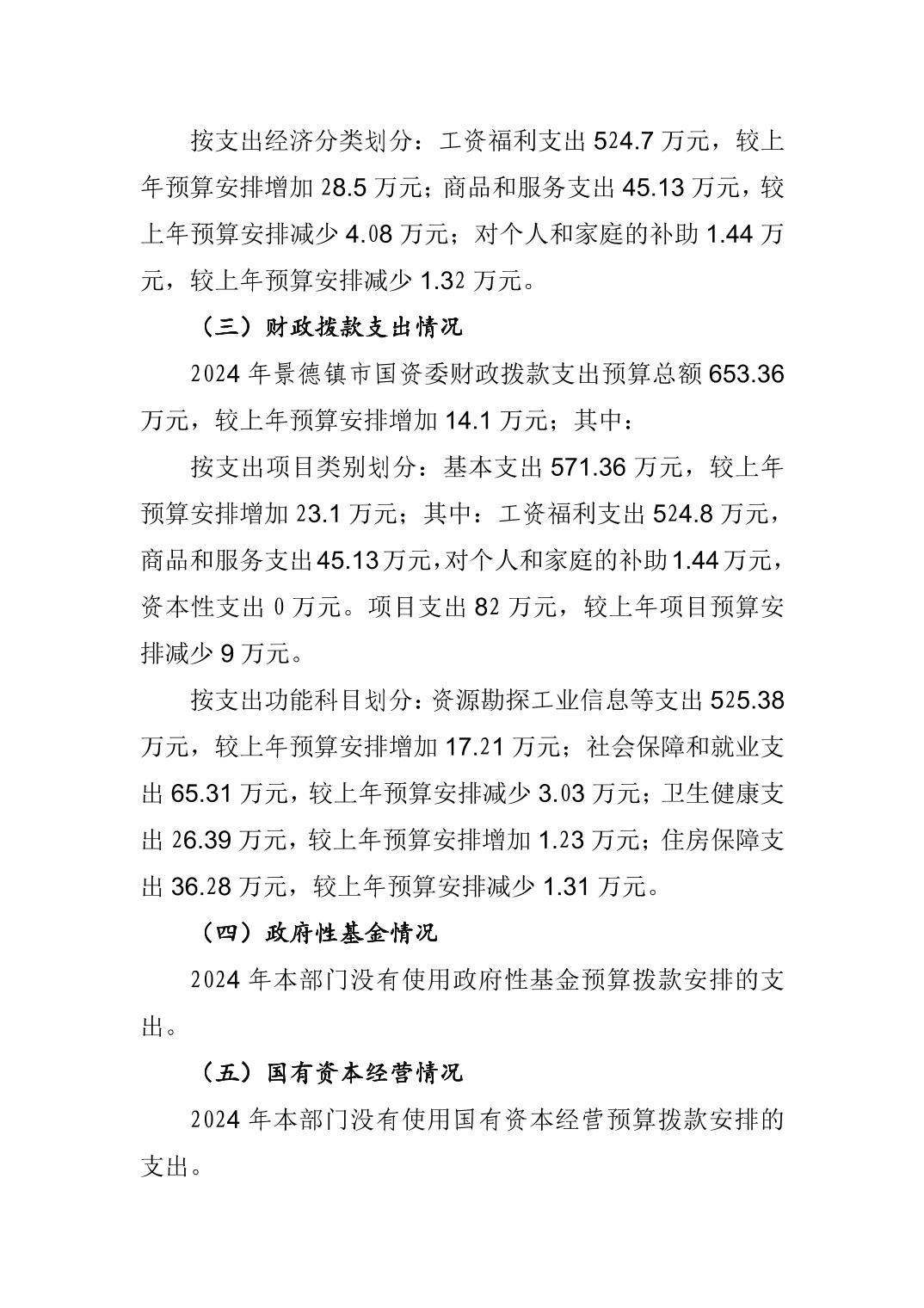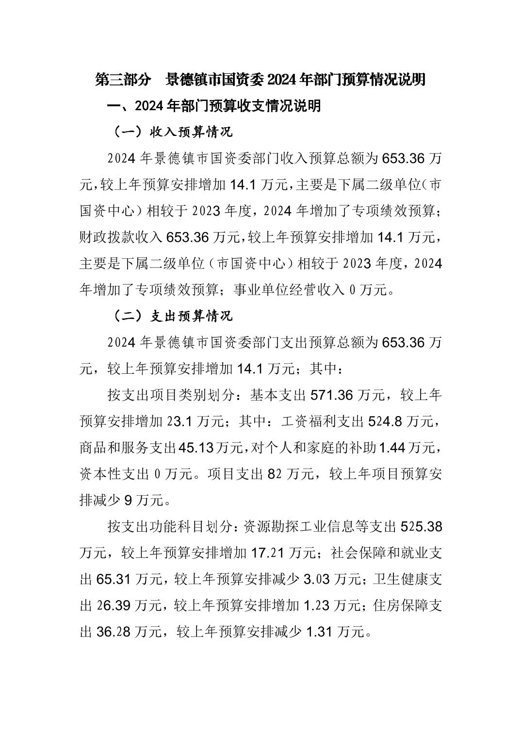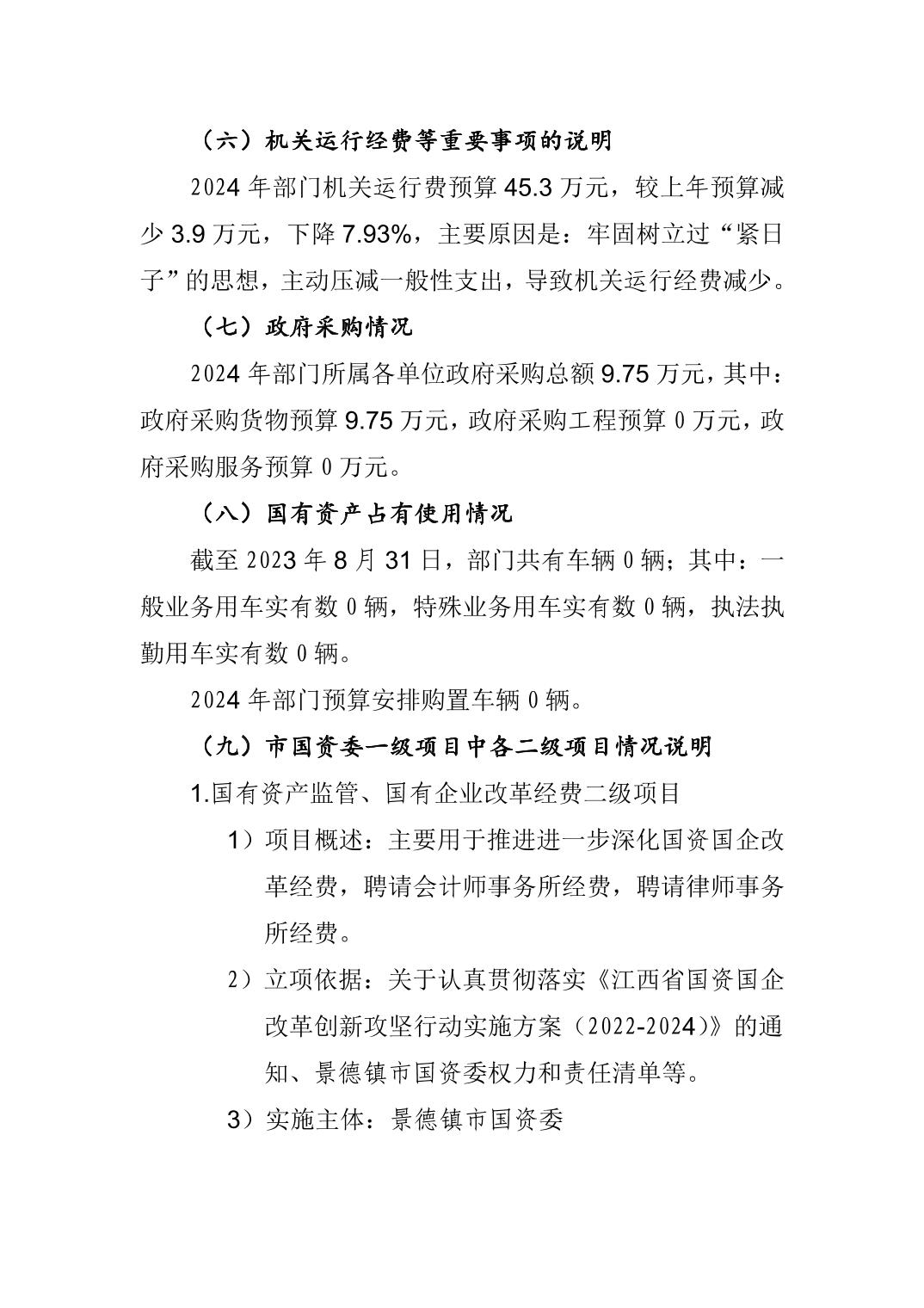 景德镇市国资委2024年部门预算