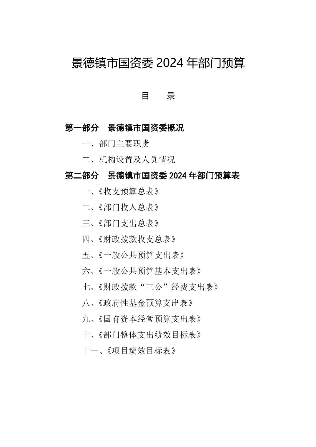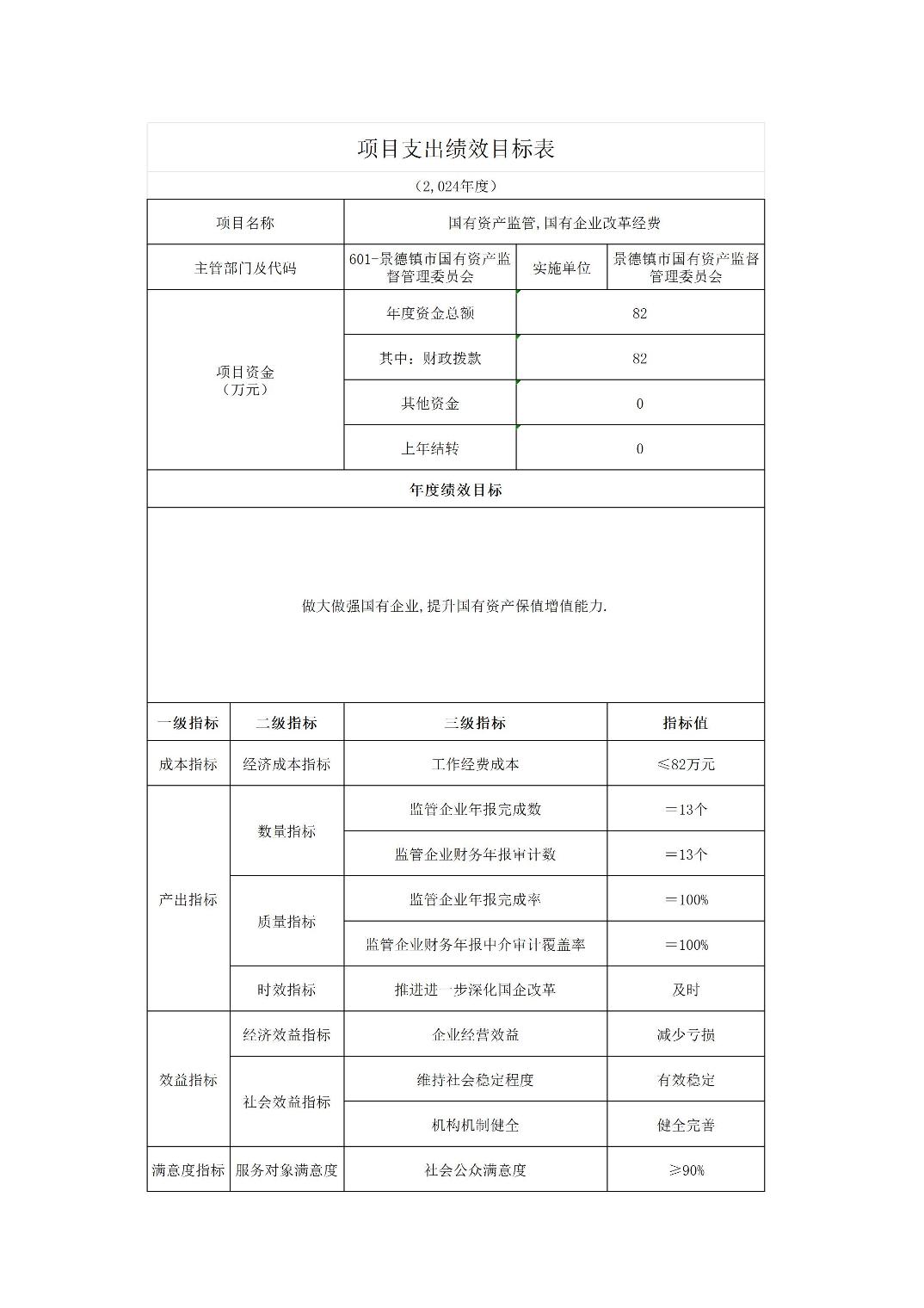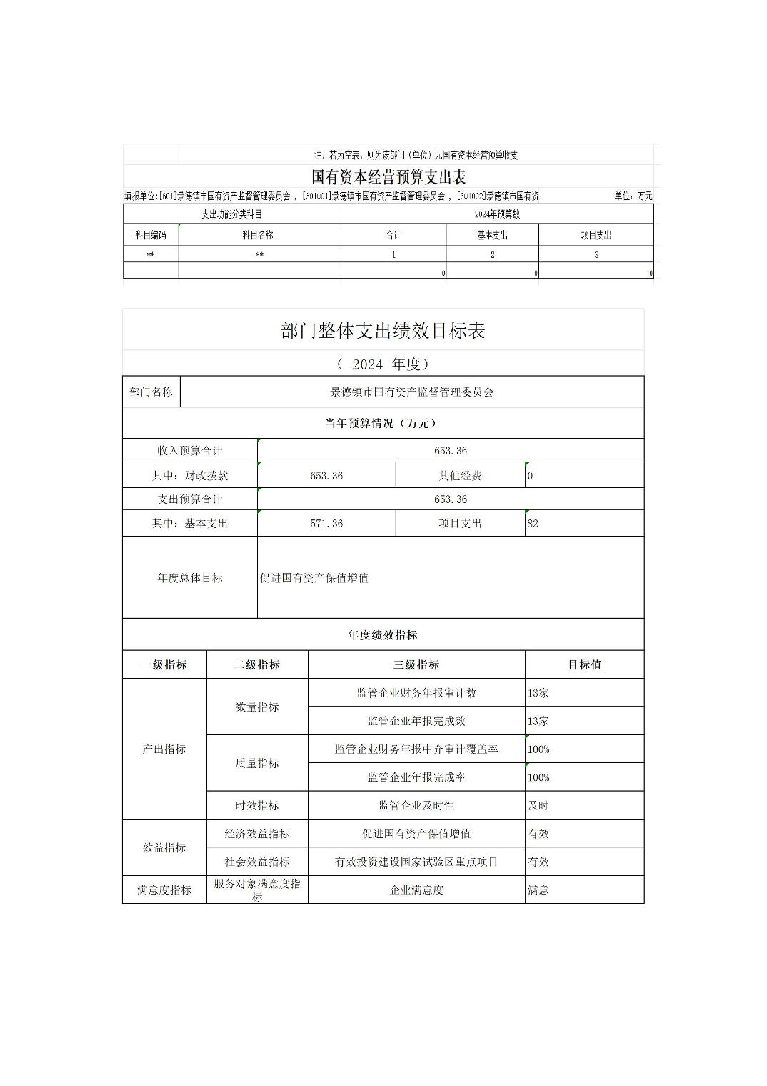 景德镇市国资委2024年部门预算