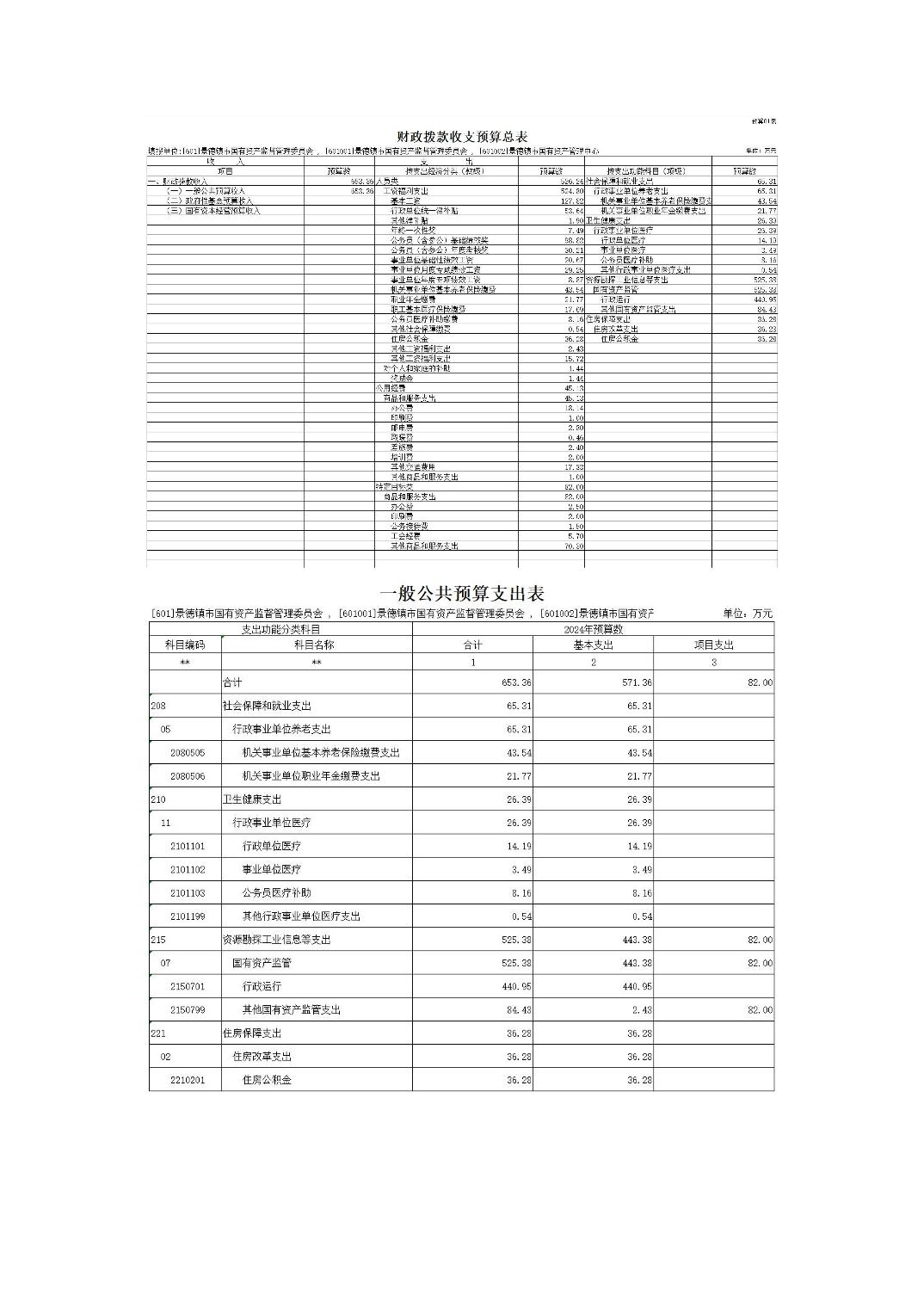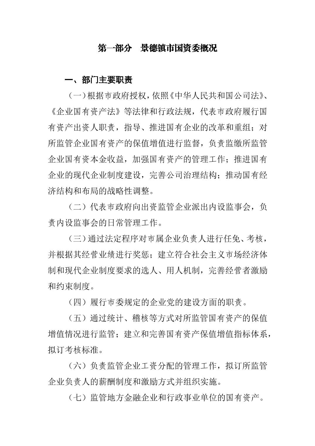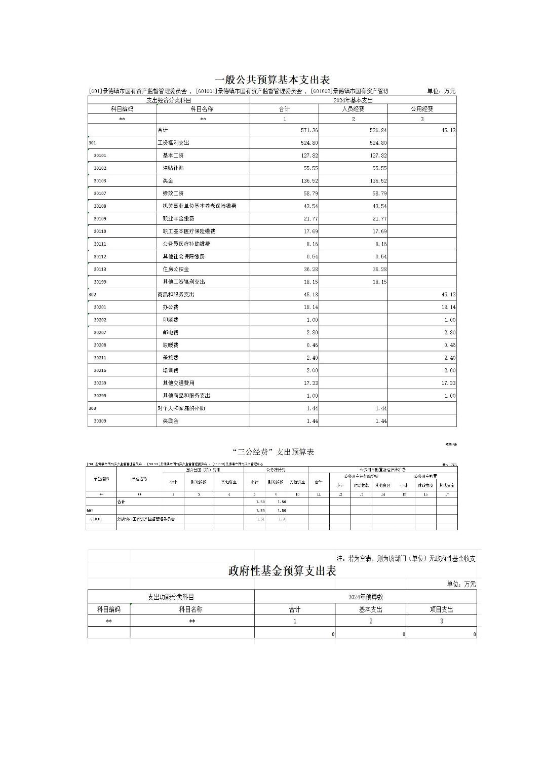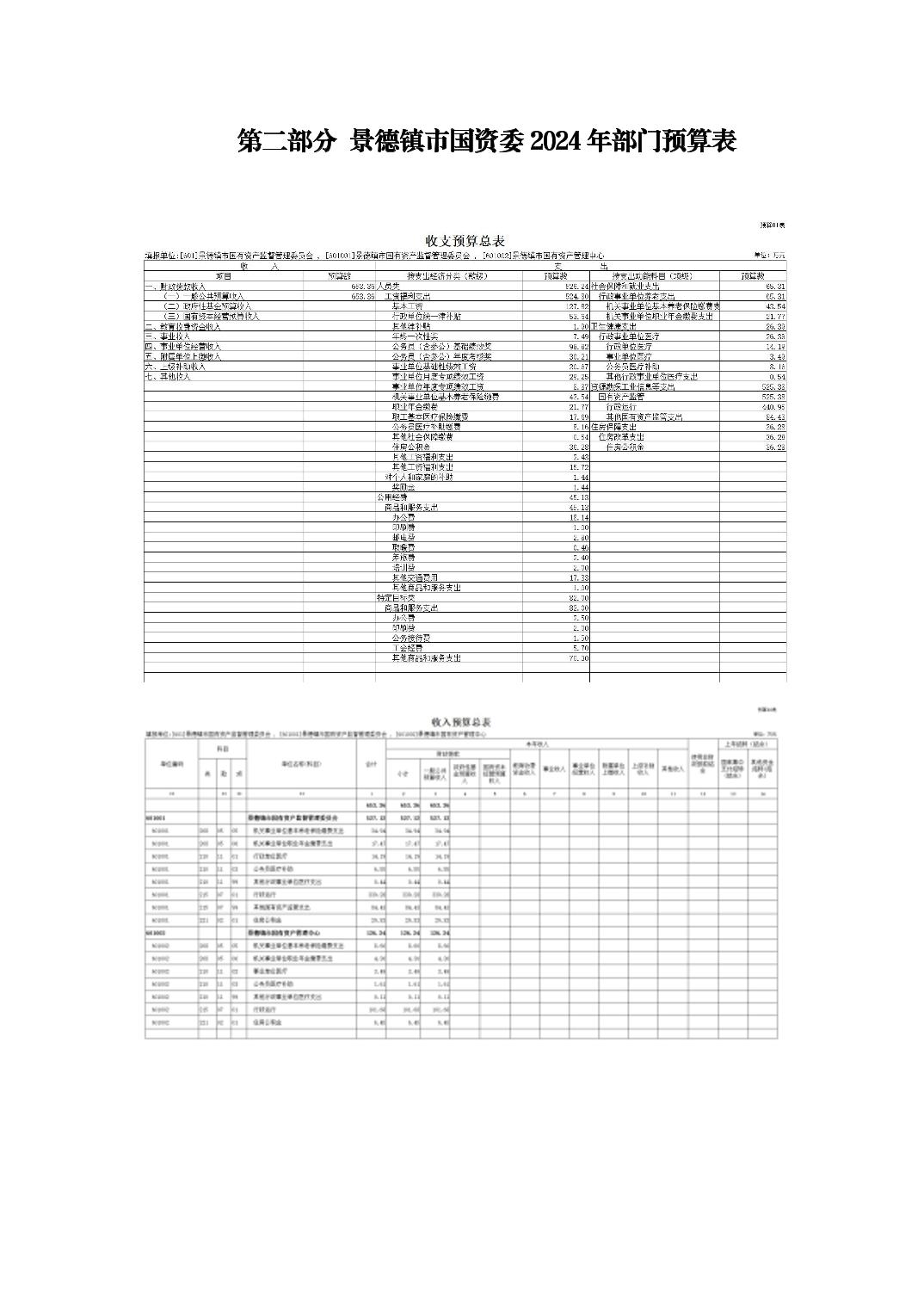 景德镇市国资委2024年部门预算