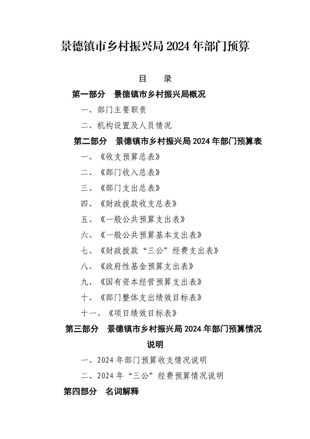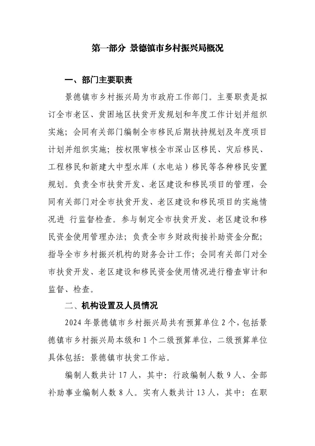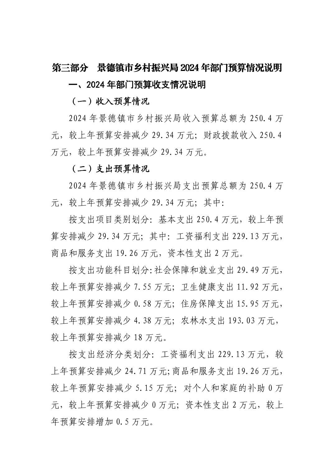 景德镇市乡村振兴局2024年部门预算