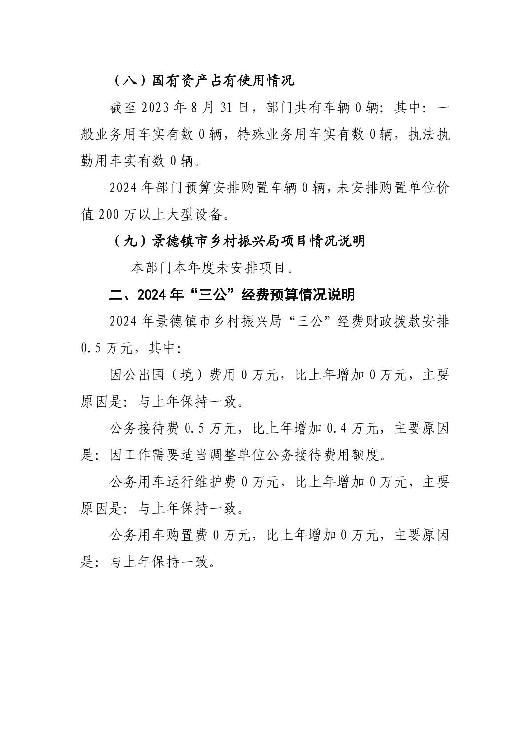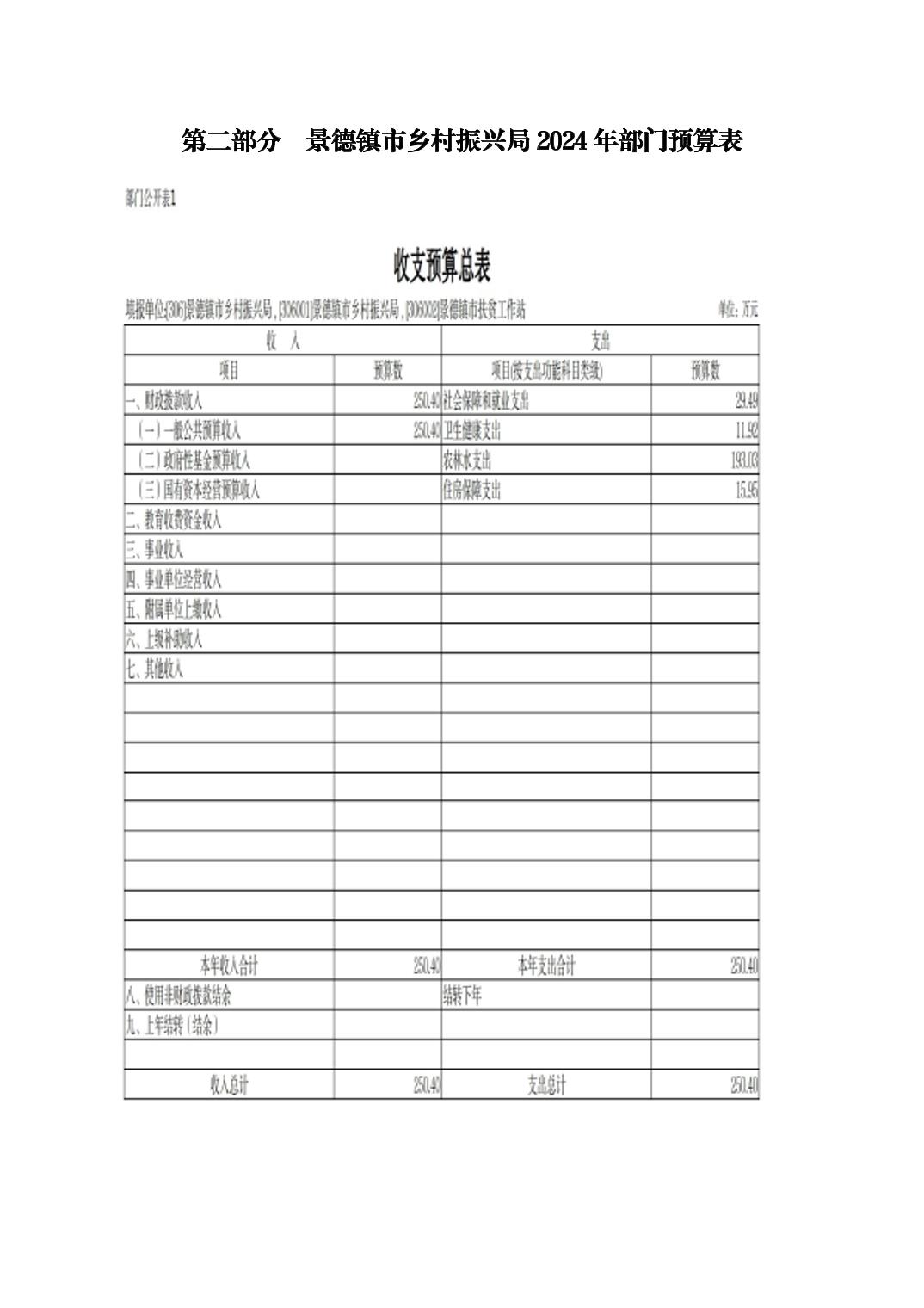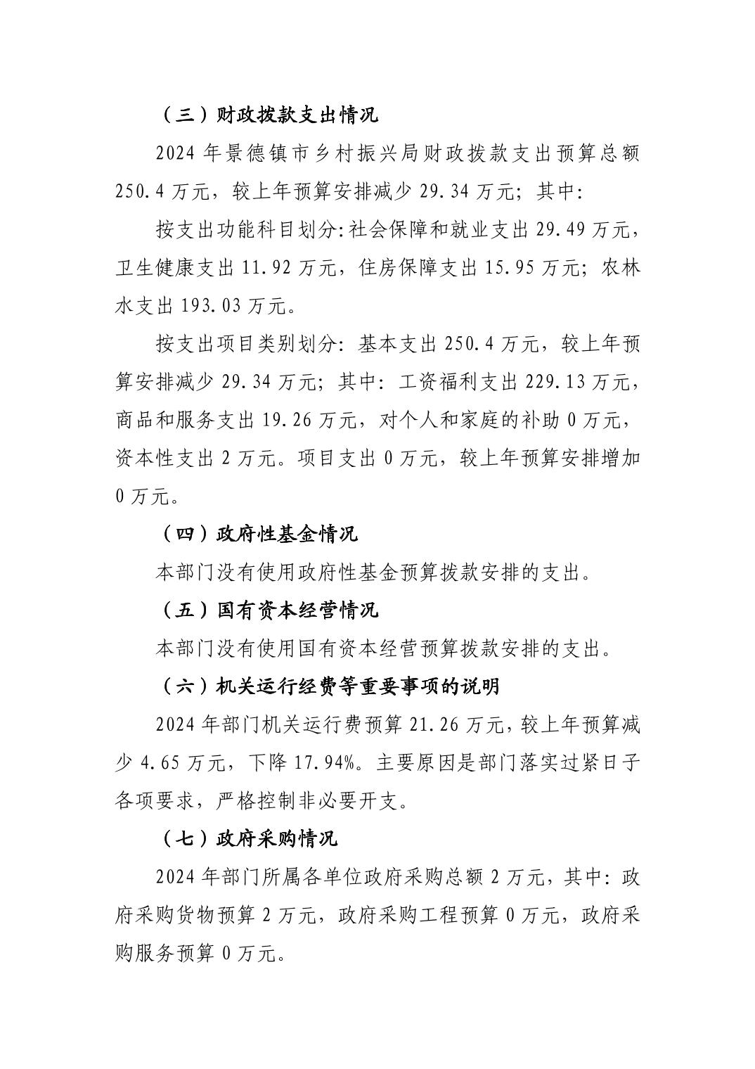 景德镇市乡村振兴局2024年部门预算