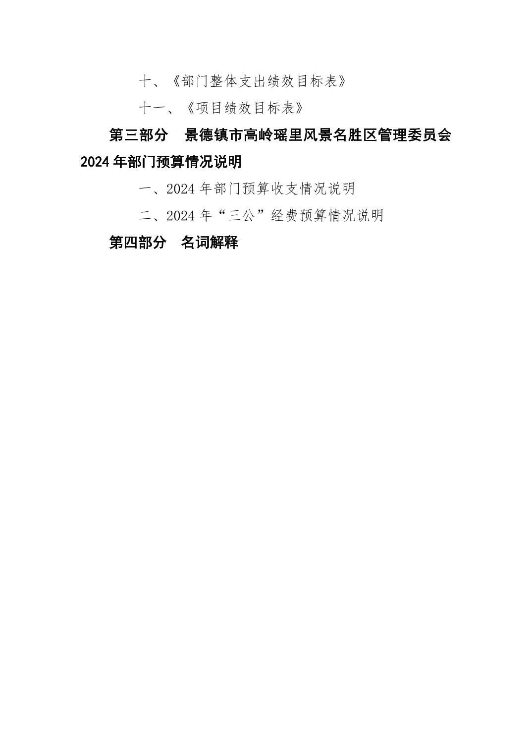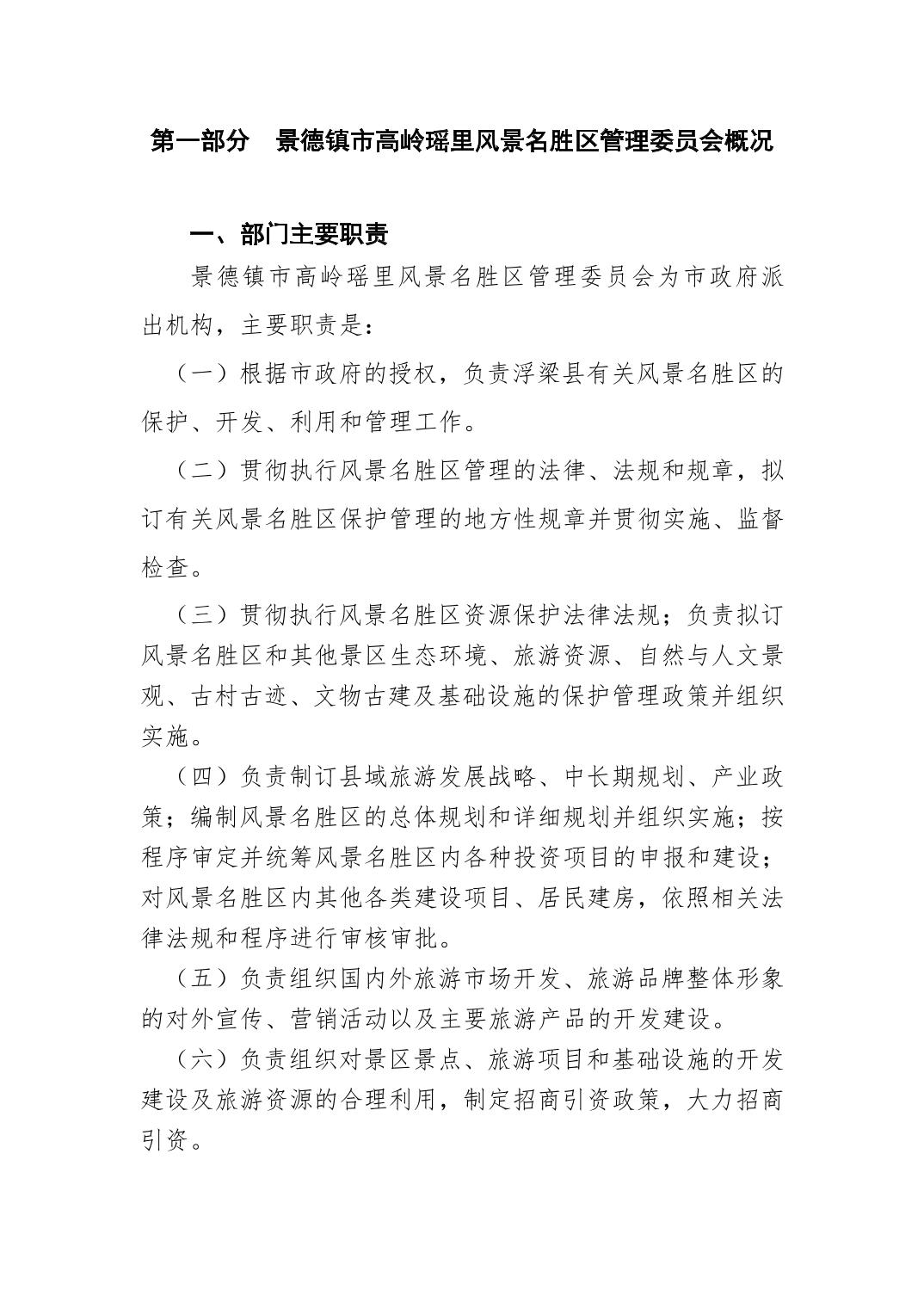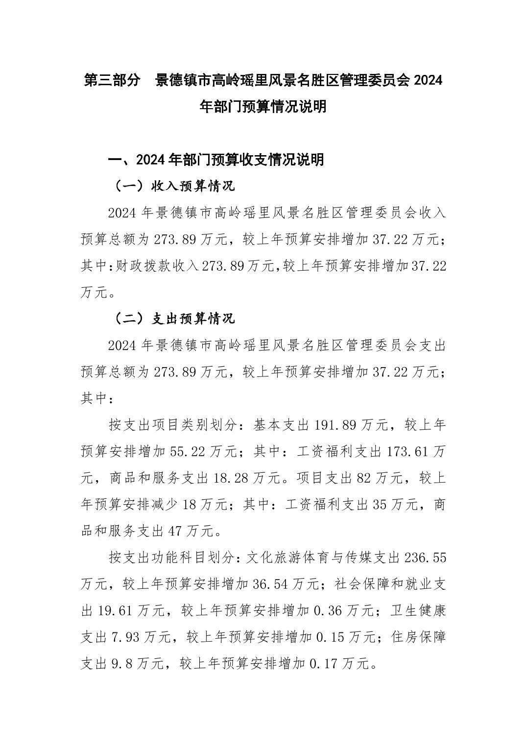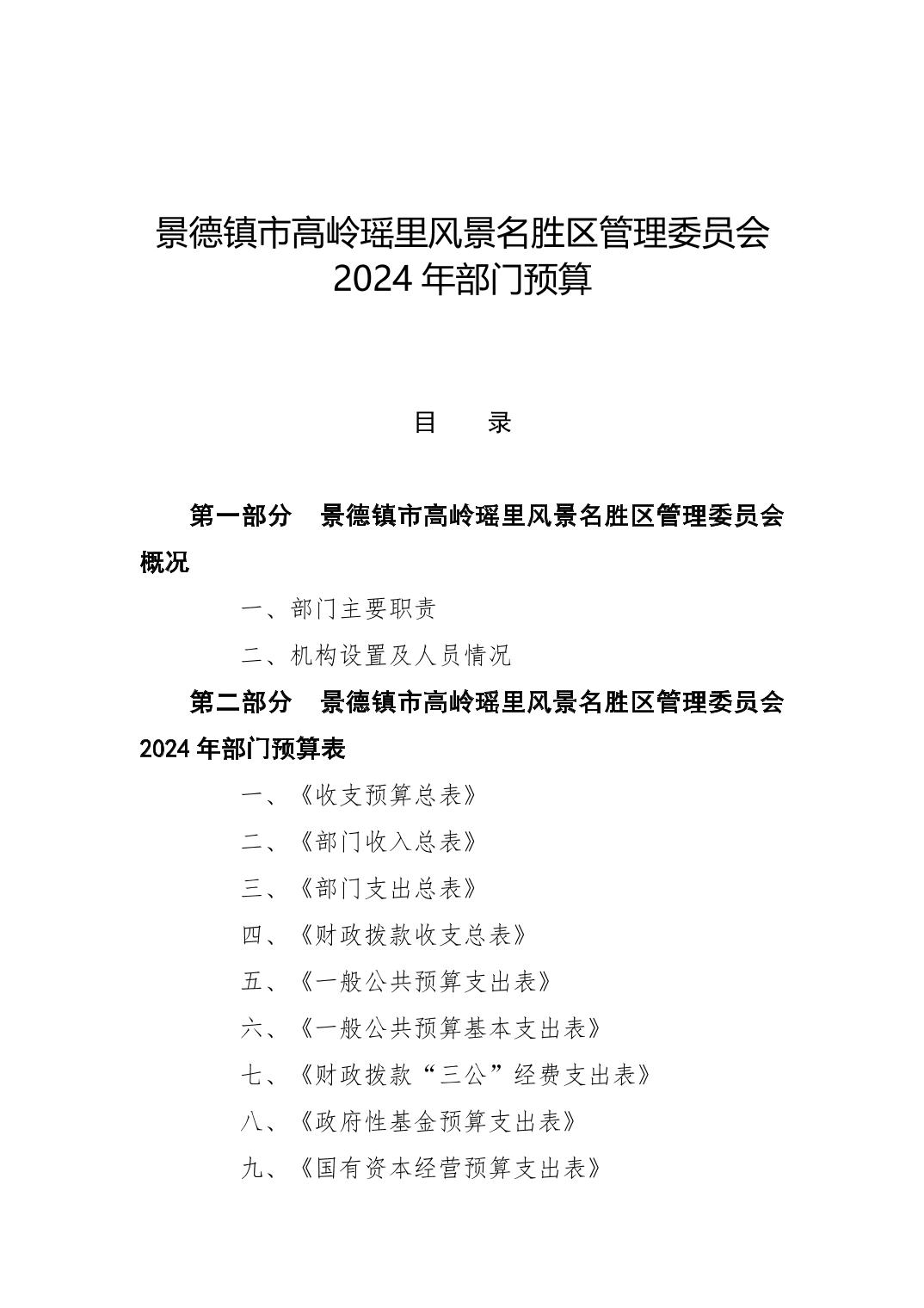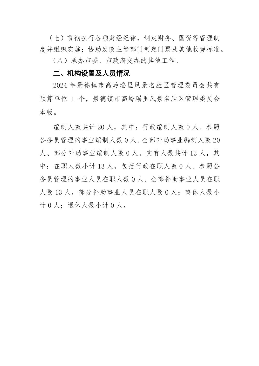 景德镇市高岭瑶里风景名胜区管理委员会2024年部门预算