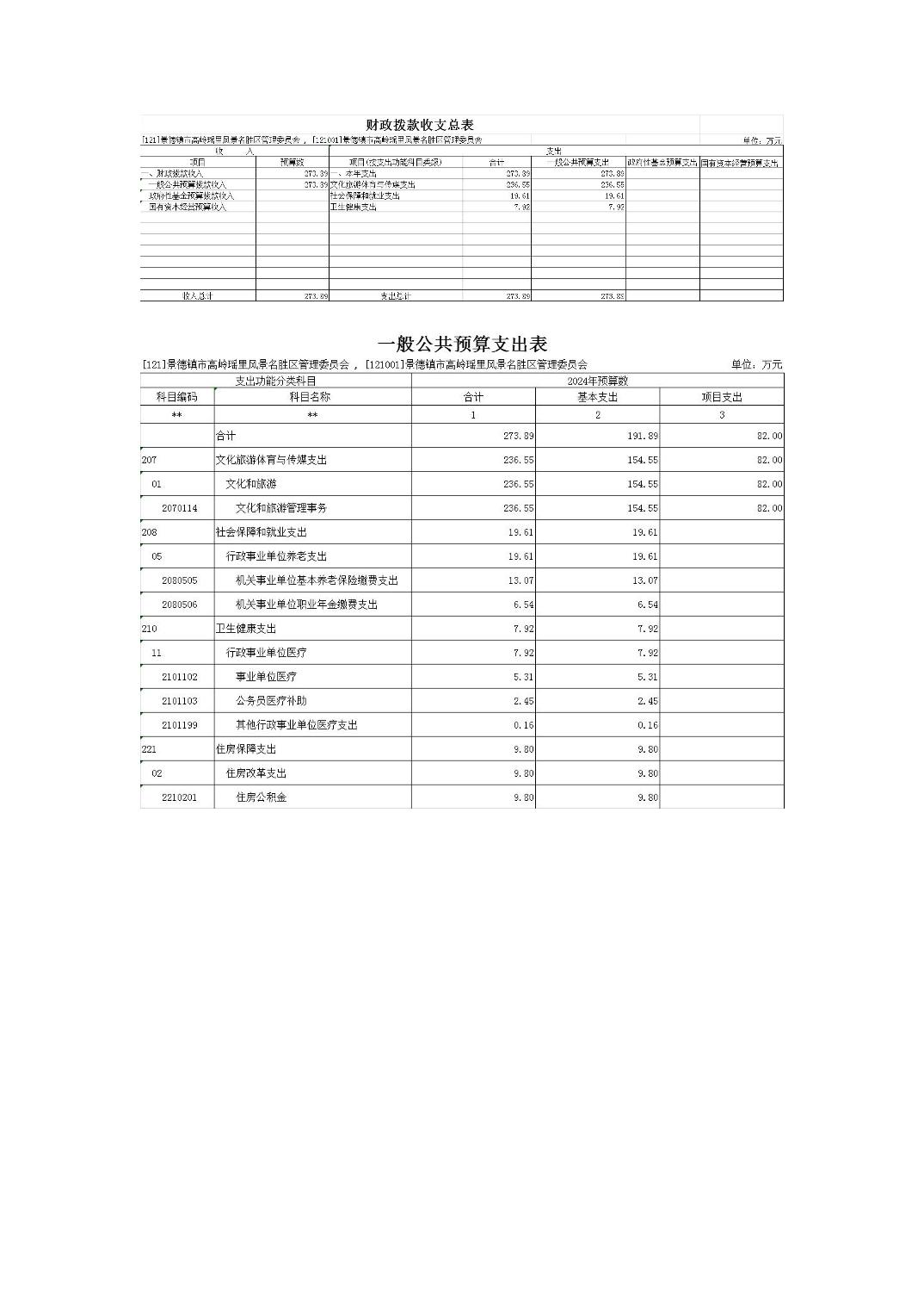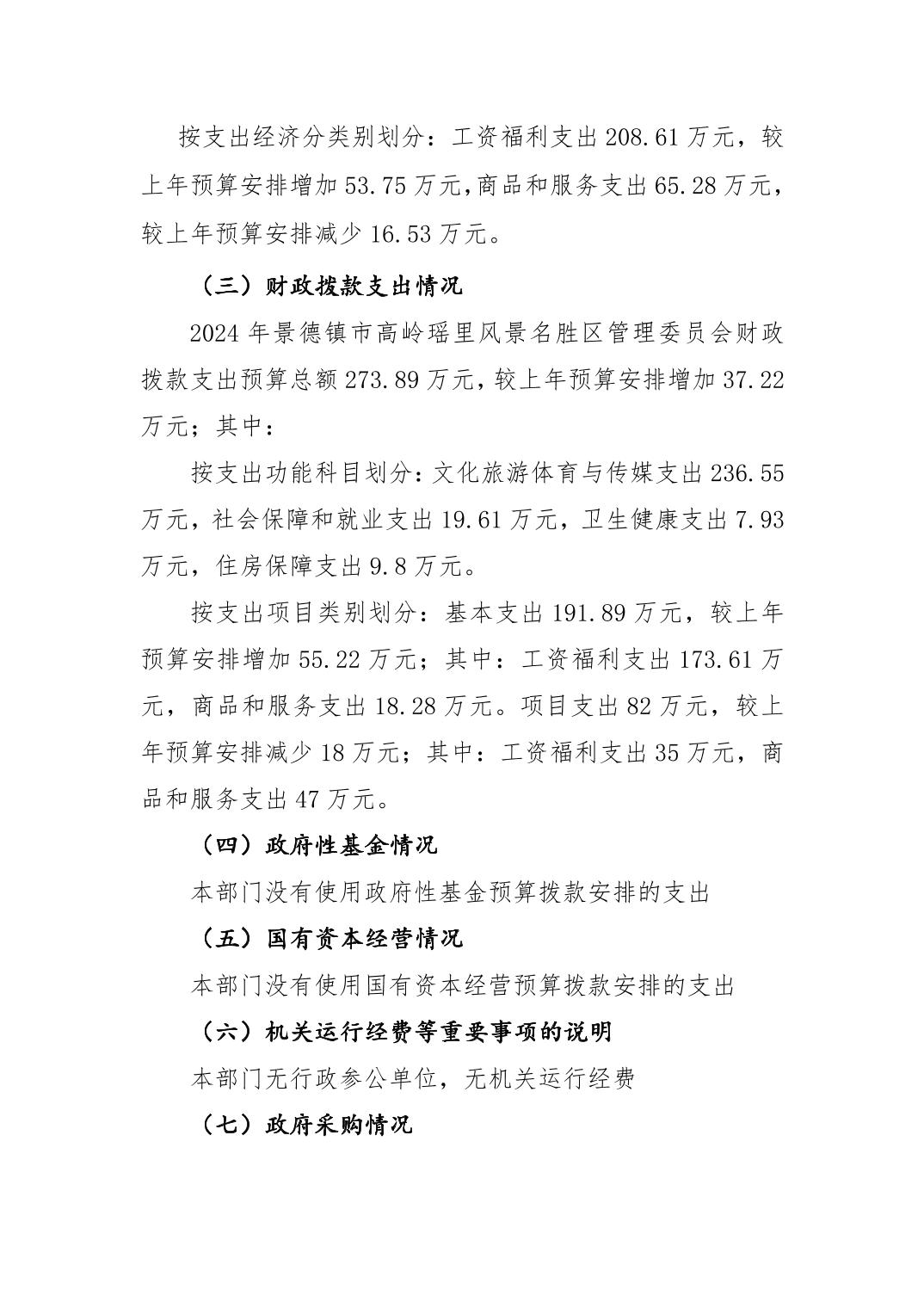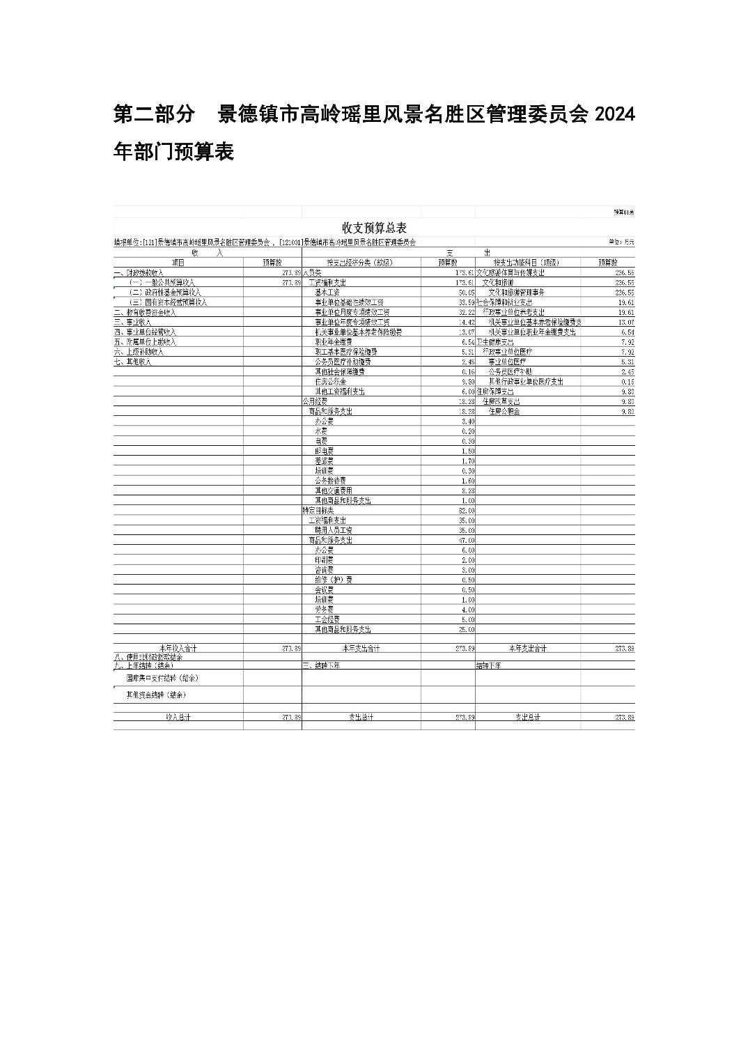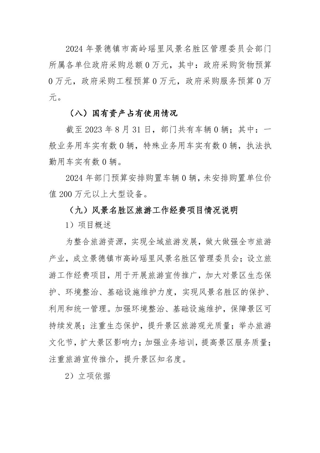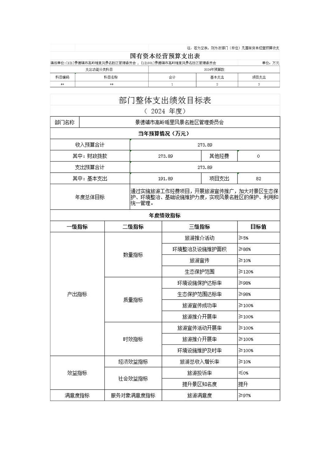 景德镇市高岭瑶里风景名胜区管理委员会2024年部门预算