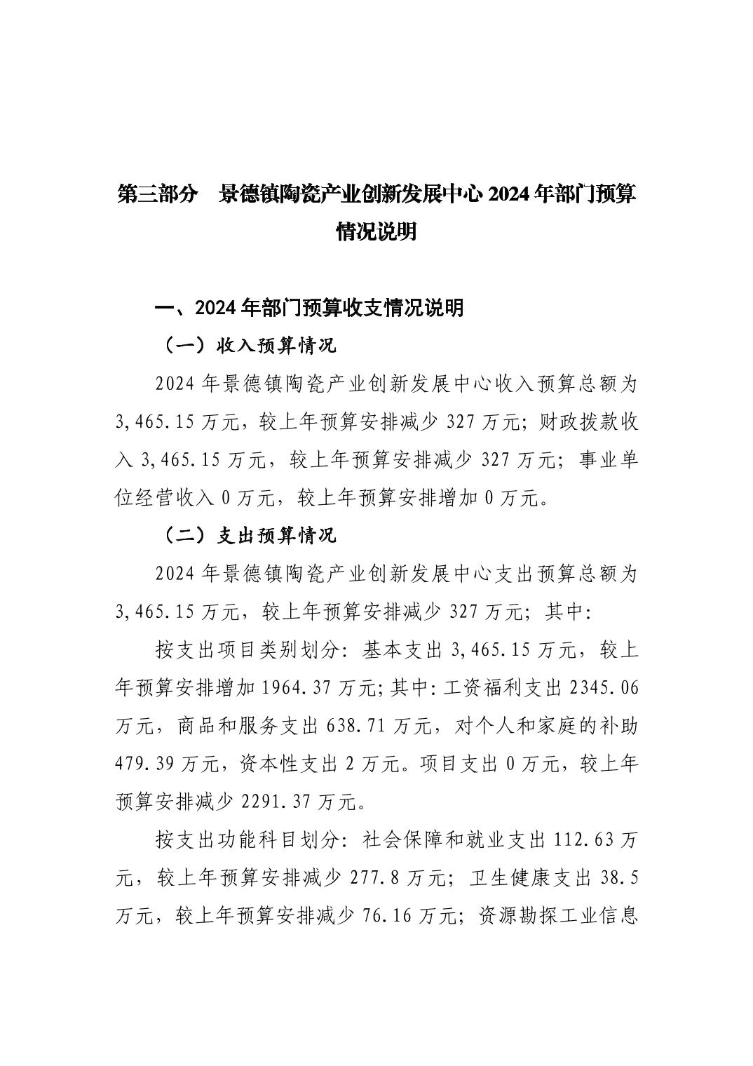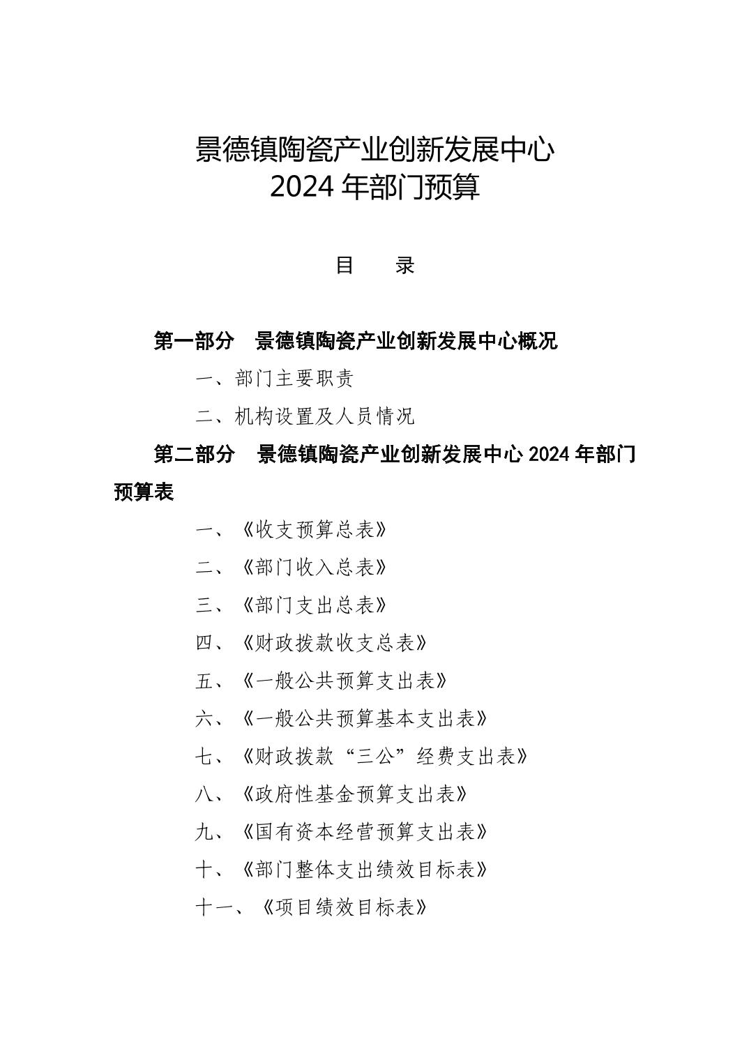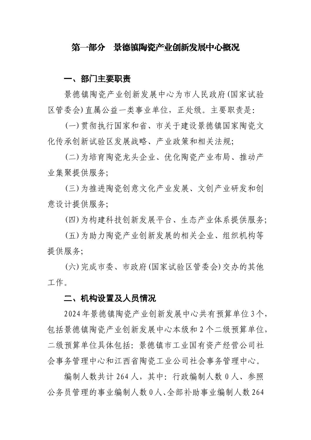 景德镇陶瓷产业创新发展中心2024年部门预算