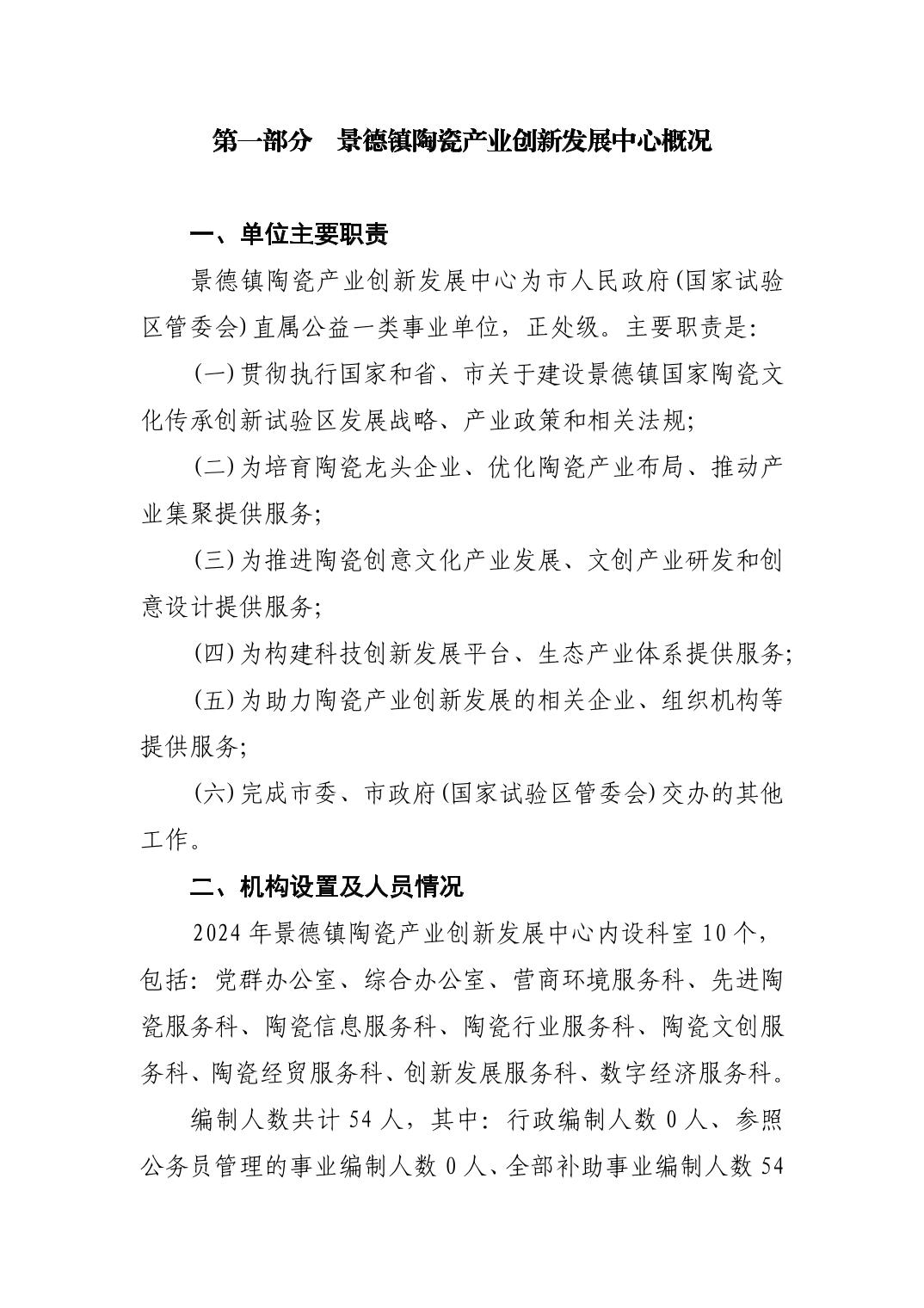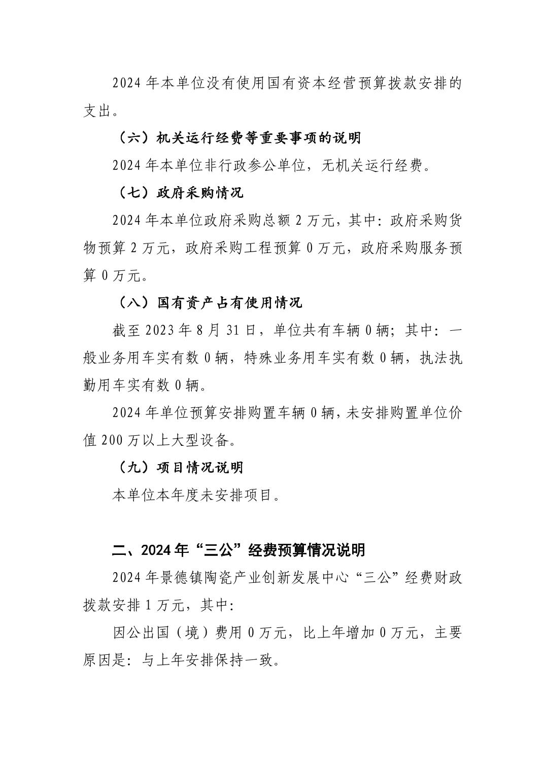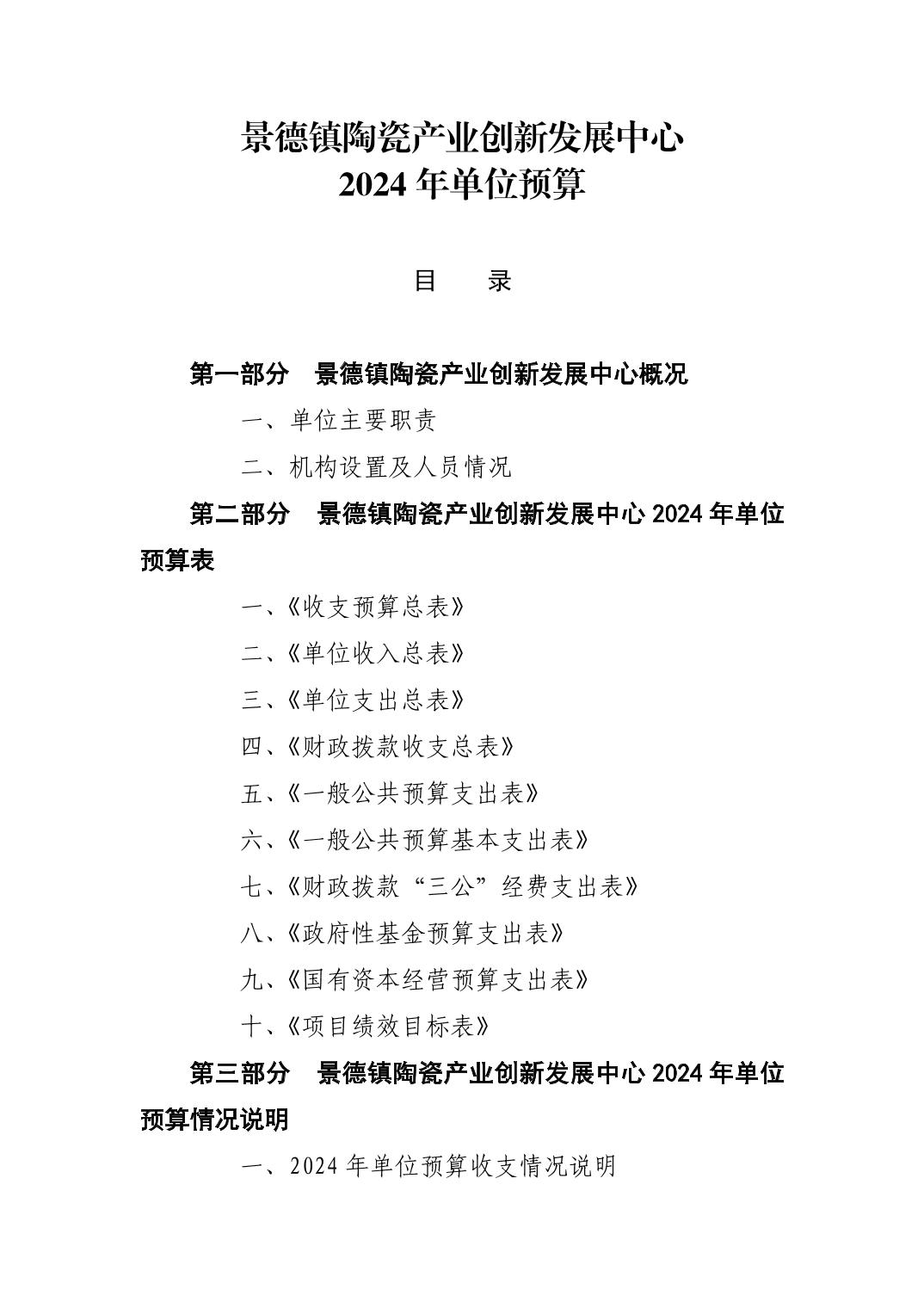 景德镇陶瓷产业创新发展中心2024年单位预算
