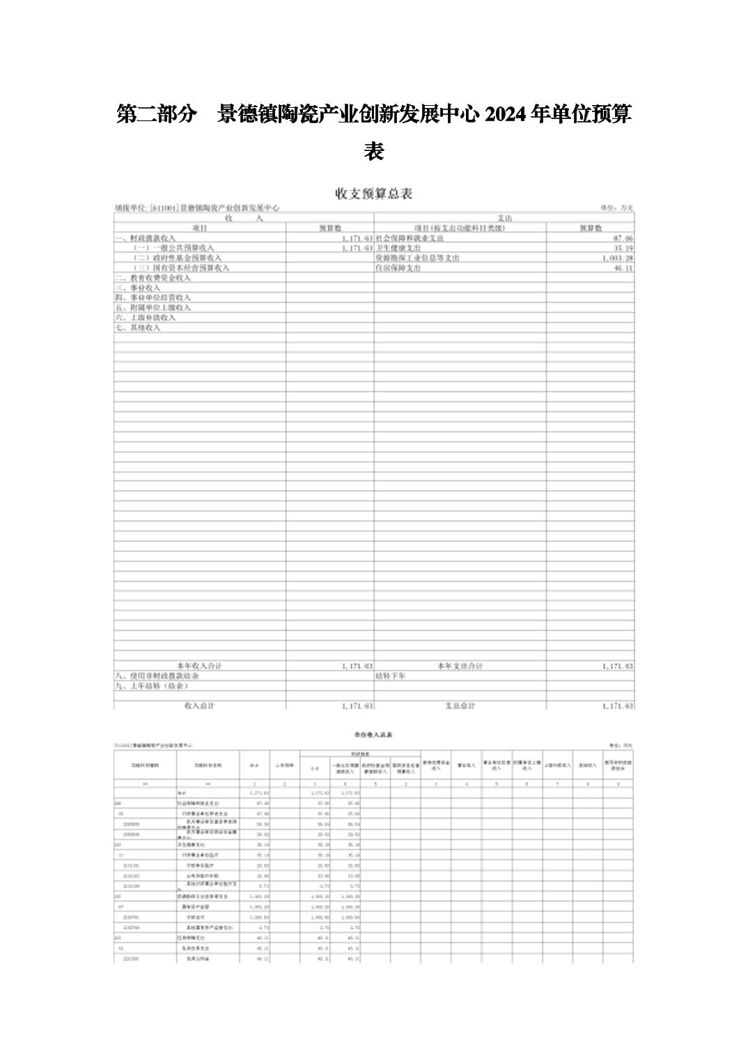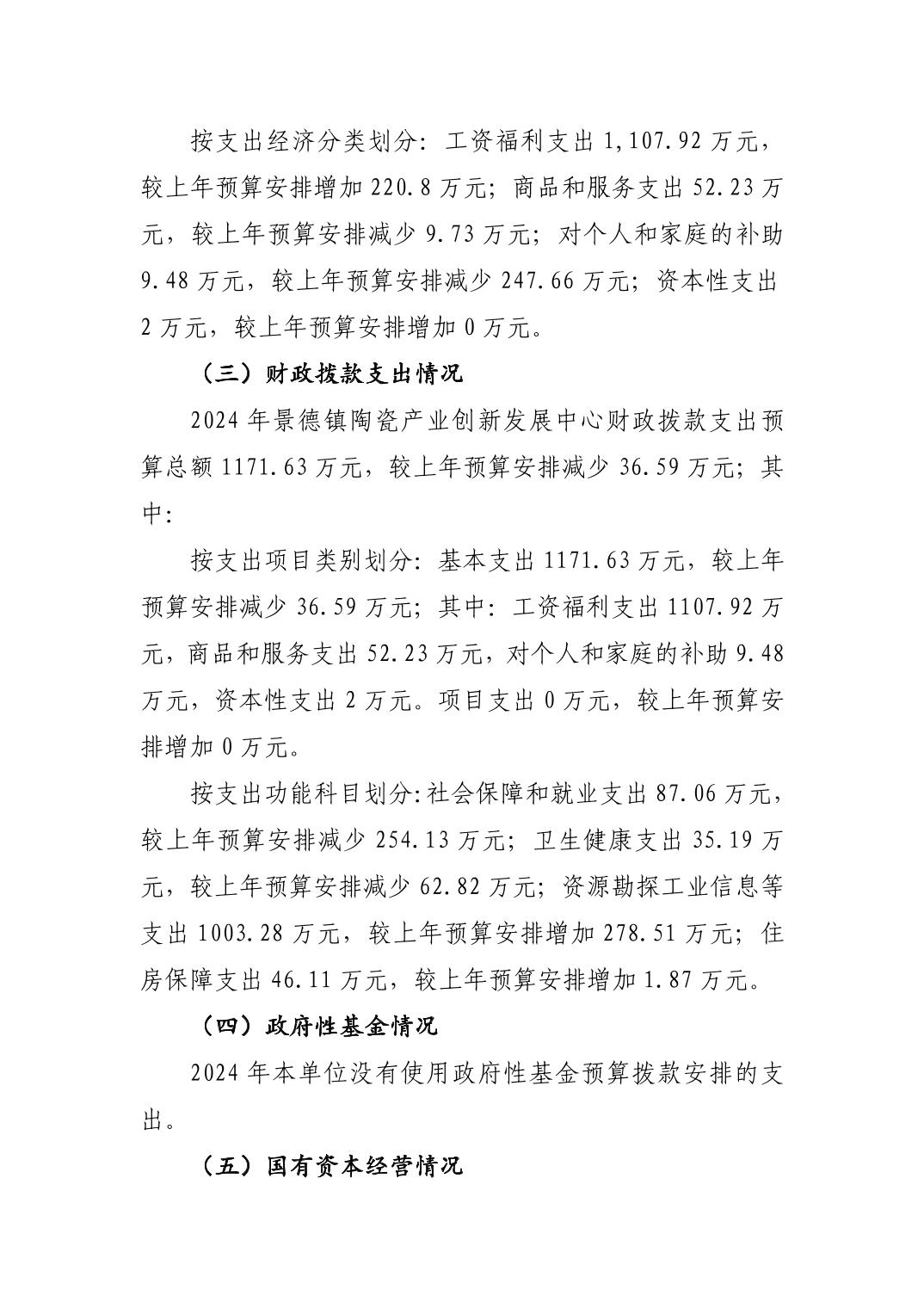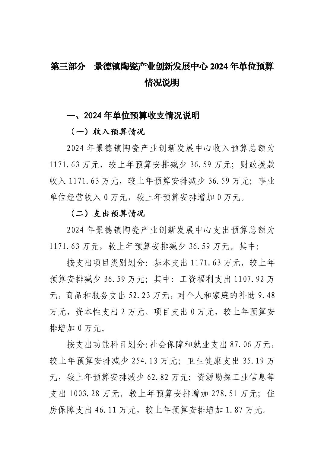 景德镇陶瓷产业创新发展中心2024年单位预算
