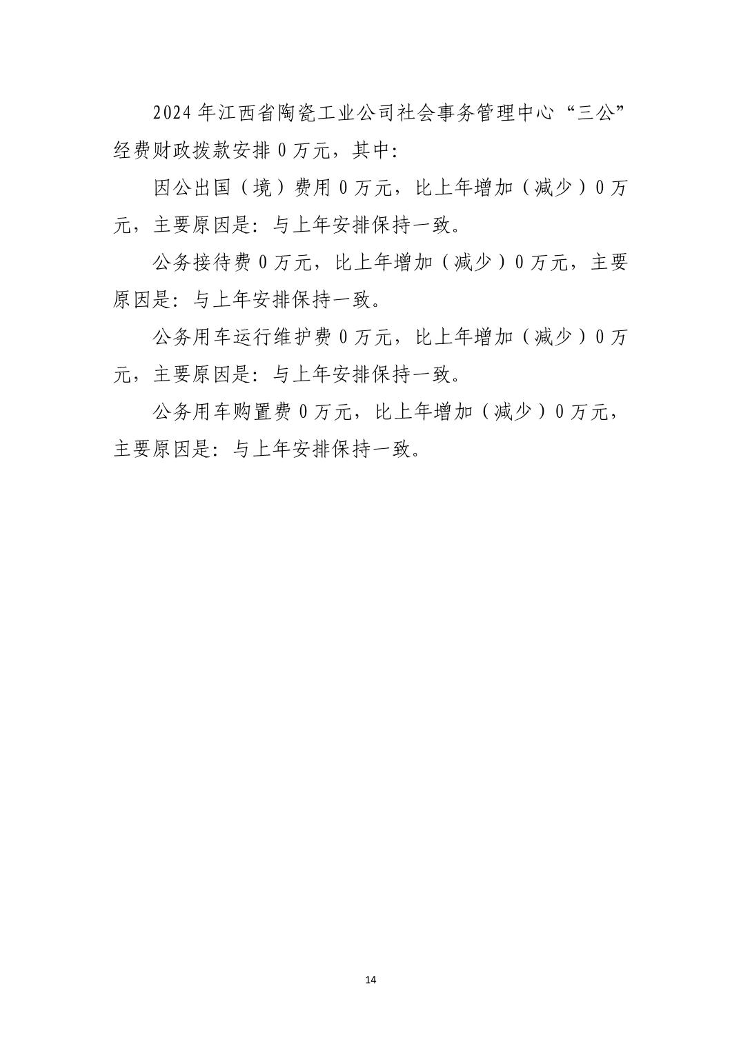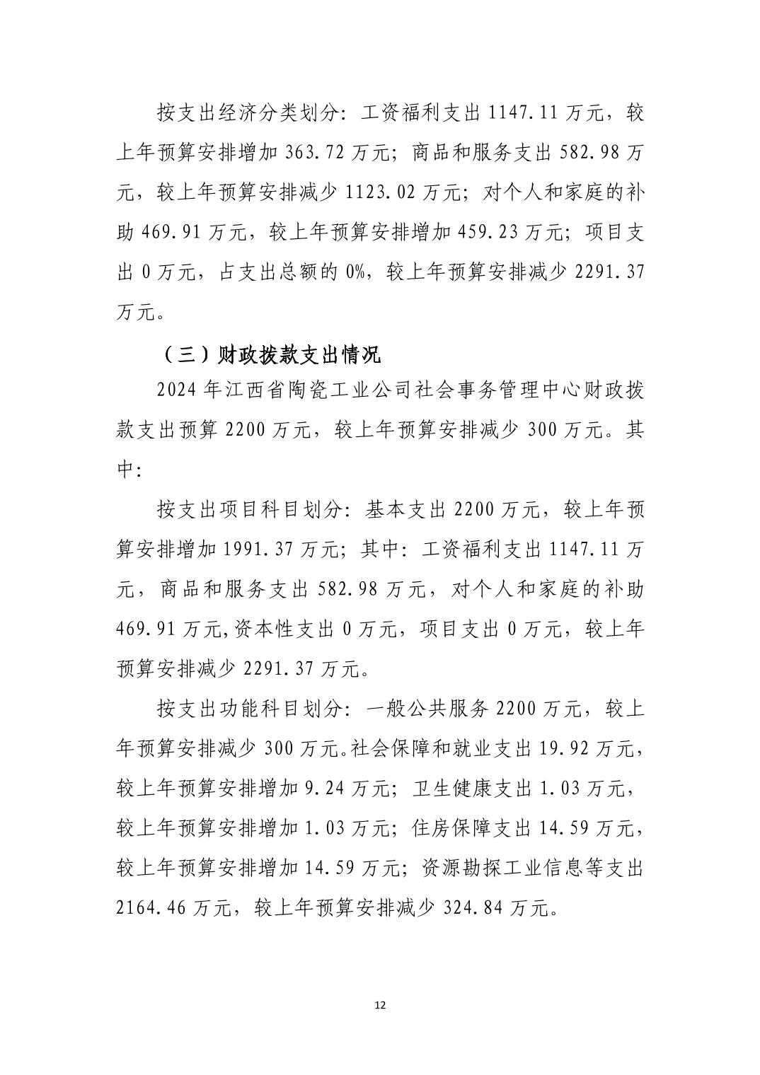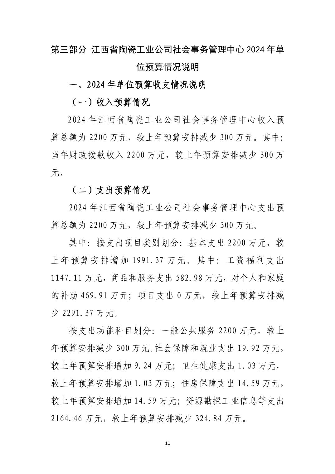 江西省陶瓷工业公司社会事务管理中心2024年单位预算说明