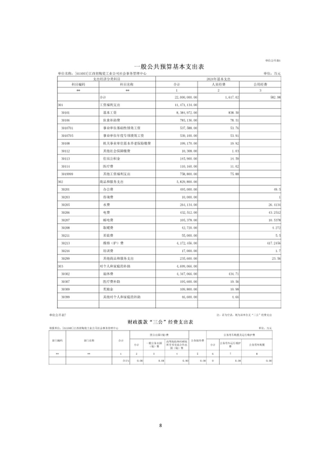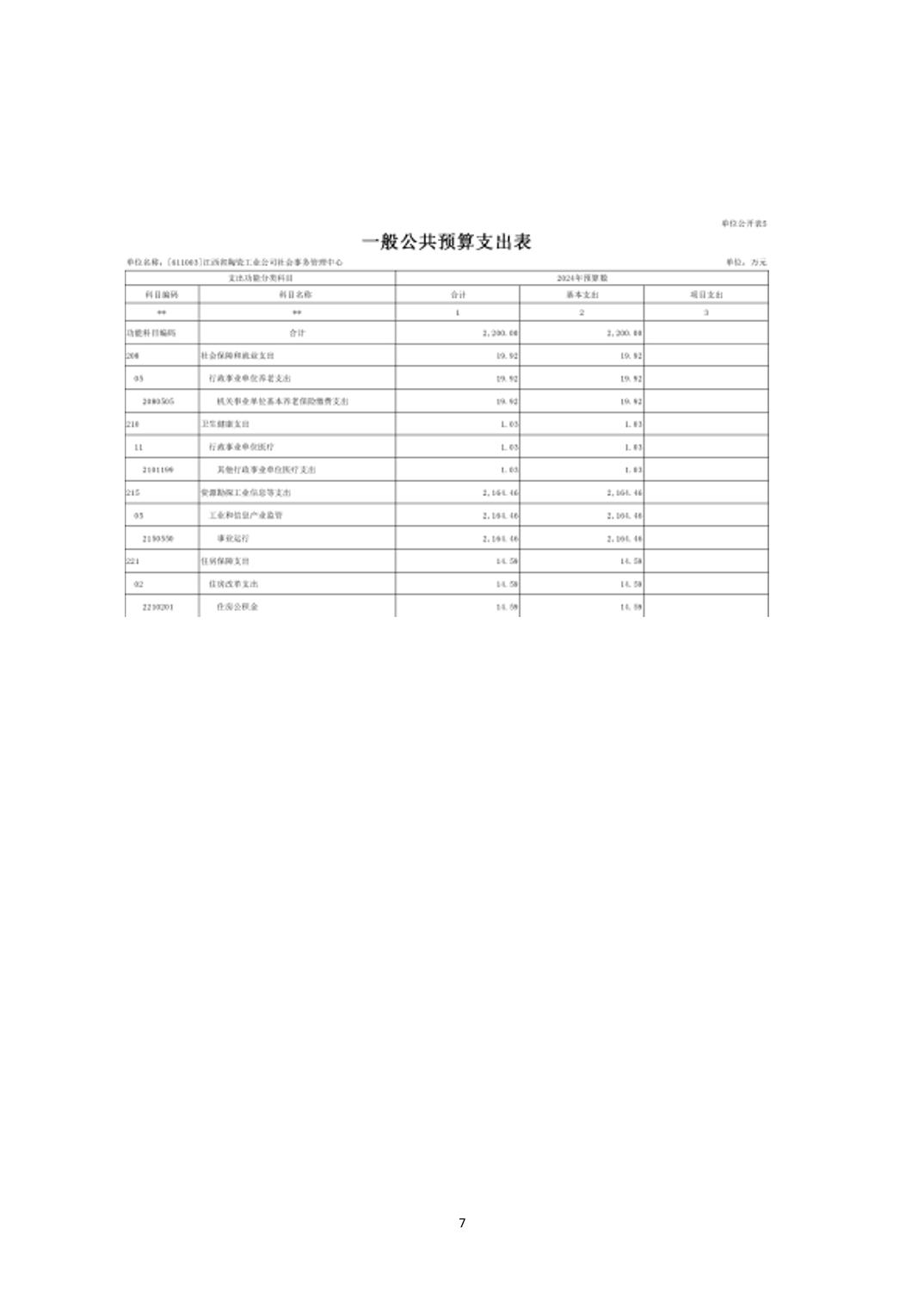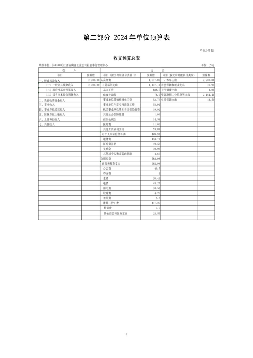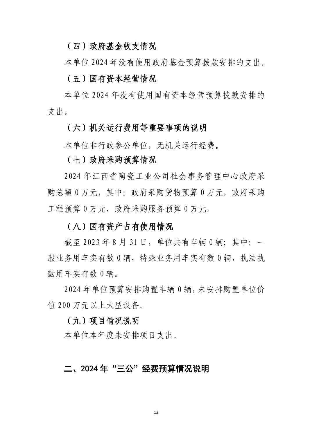 江西省陶瓷工业公司社会事务管理中心2024年单位预算说明