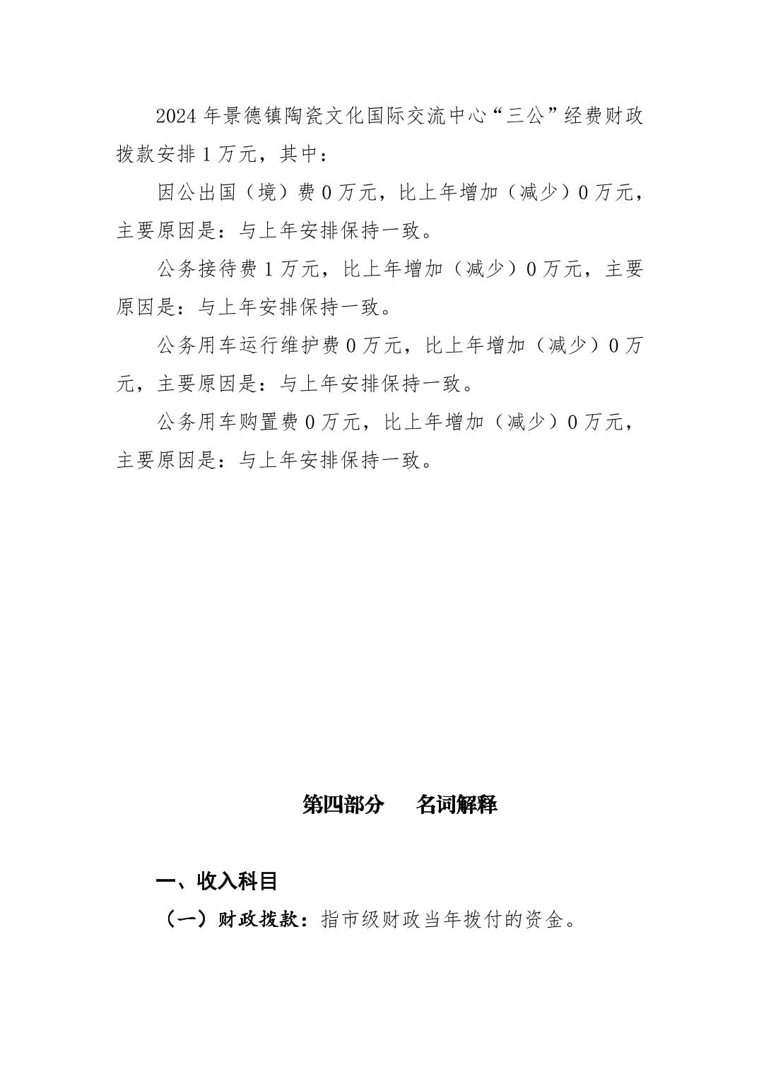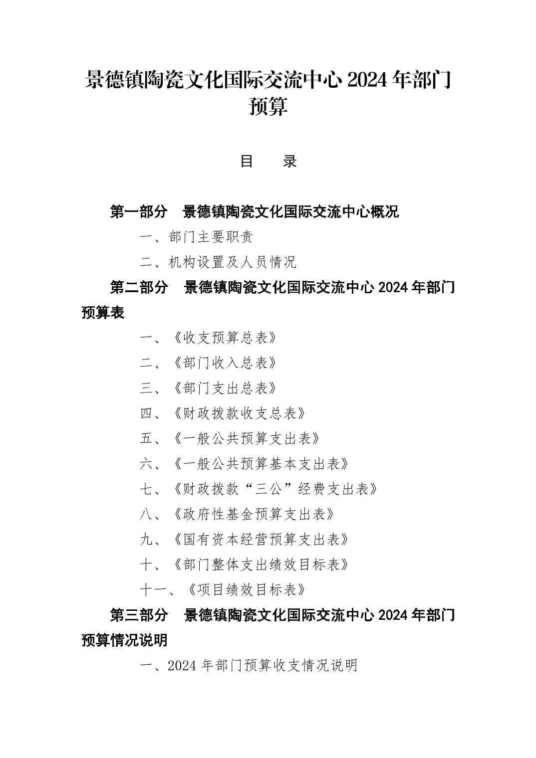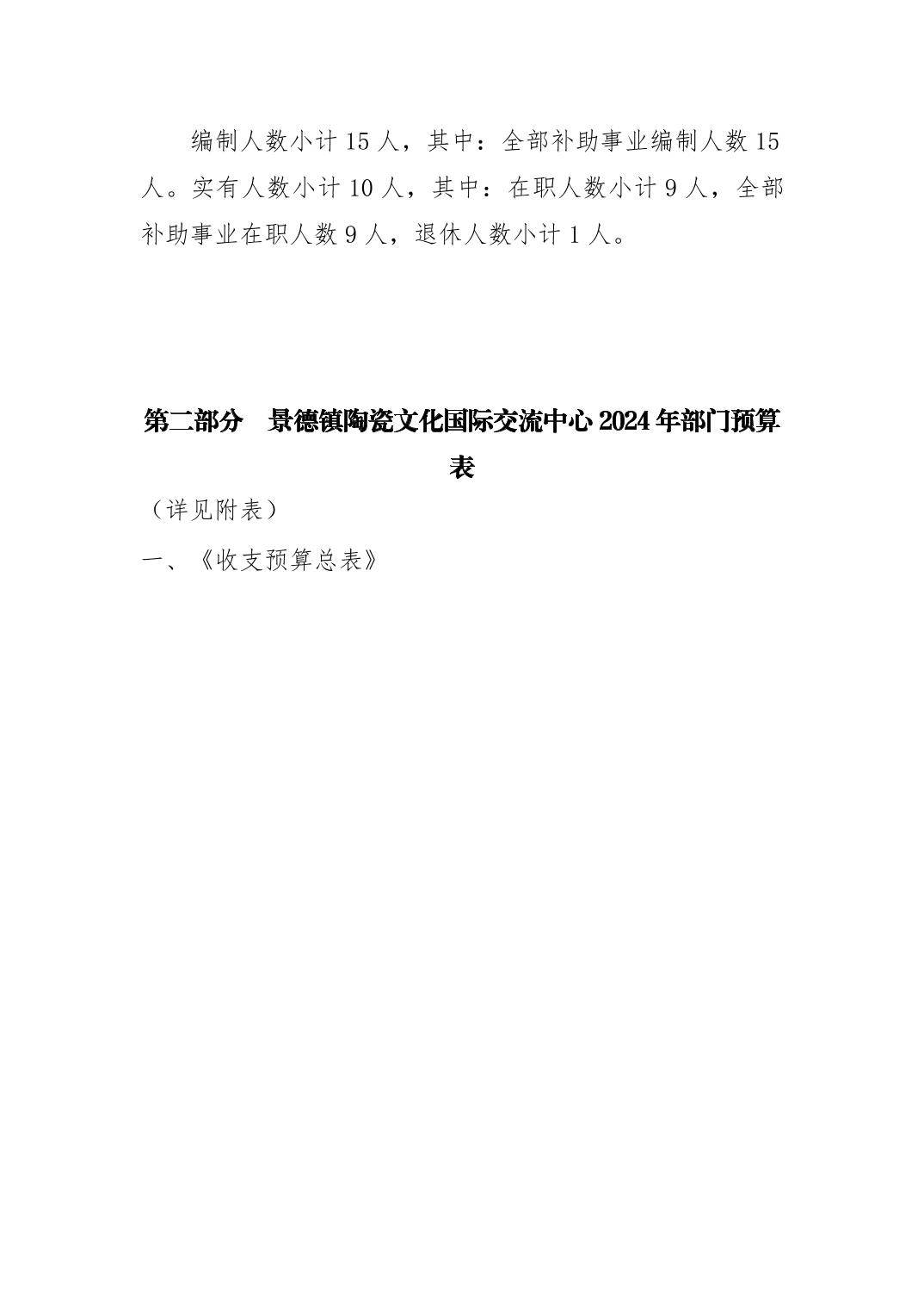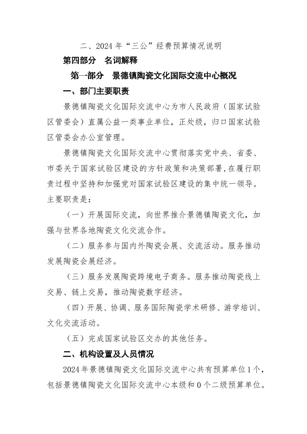 景德镇陶瓷文化国际交流中心2024年部门预算