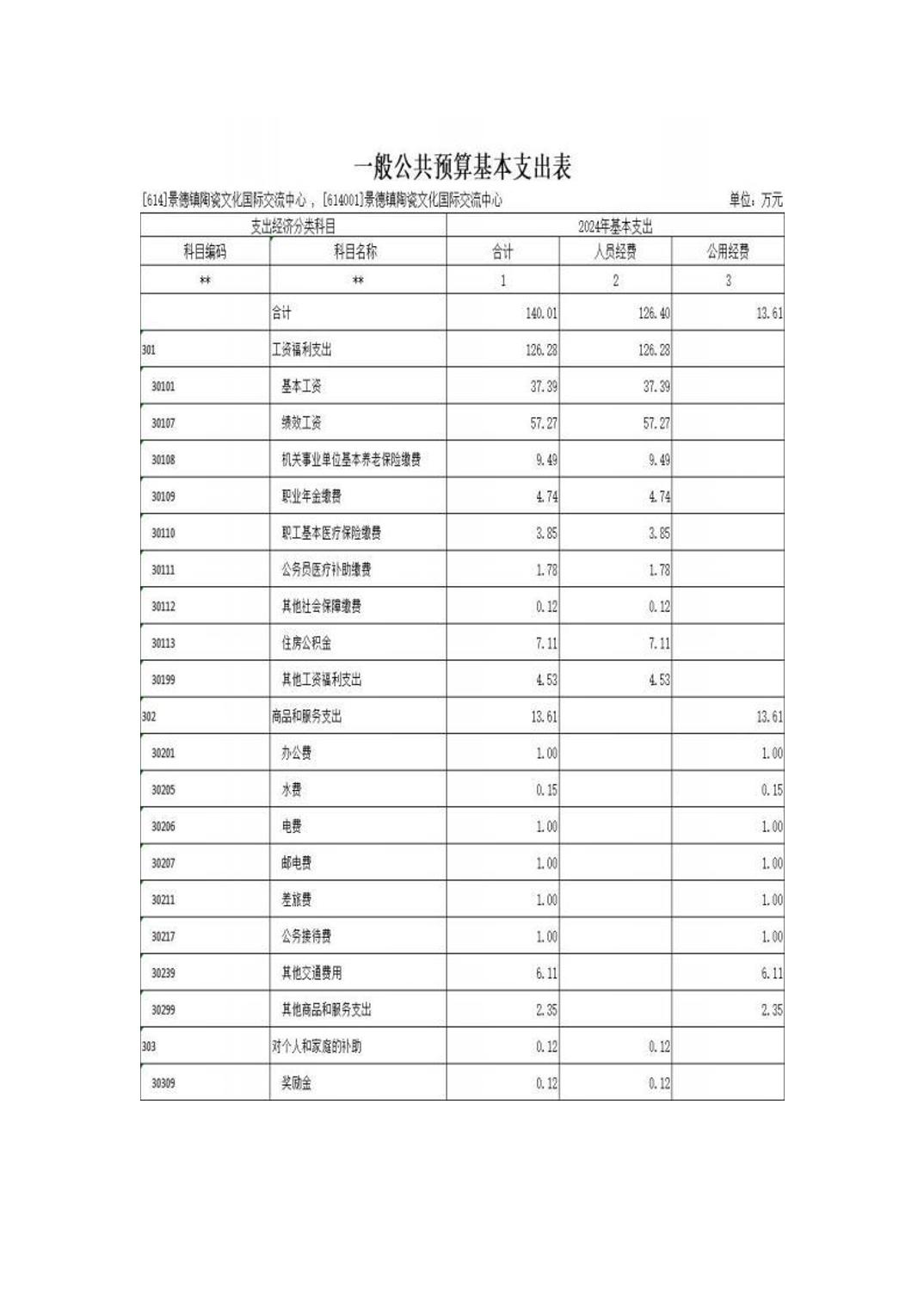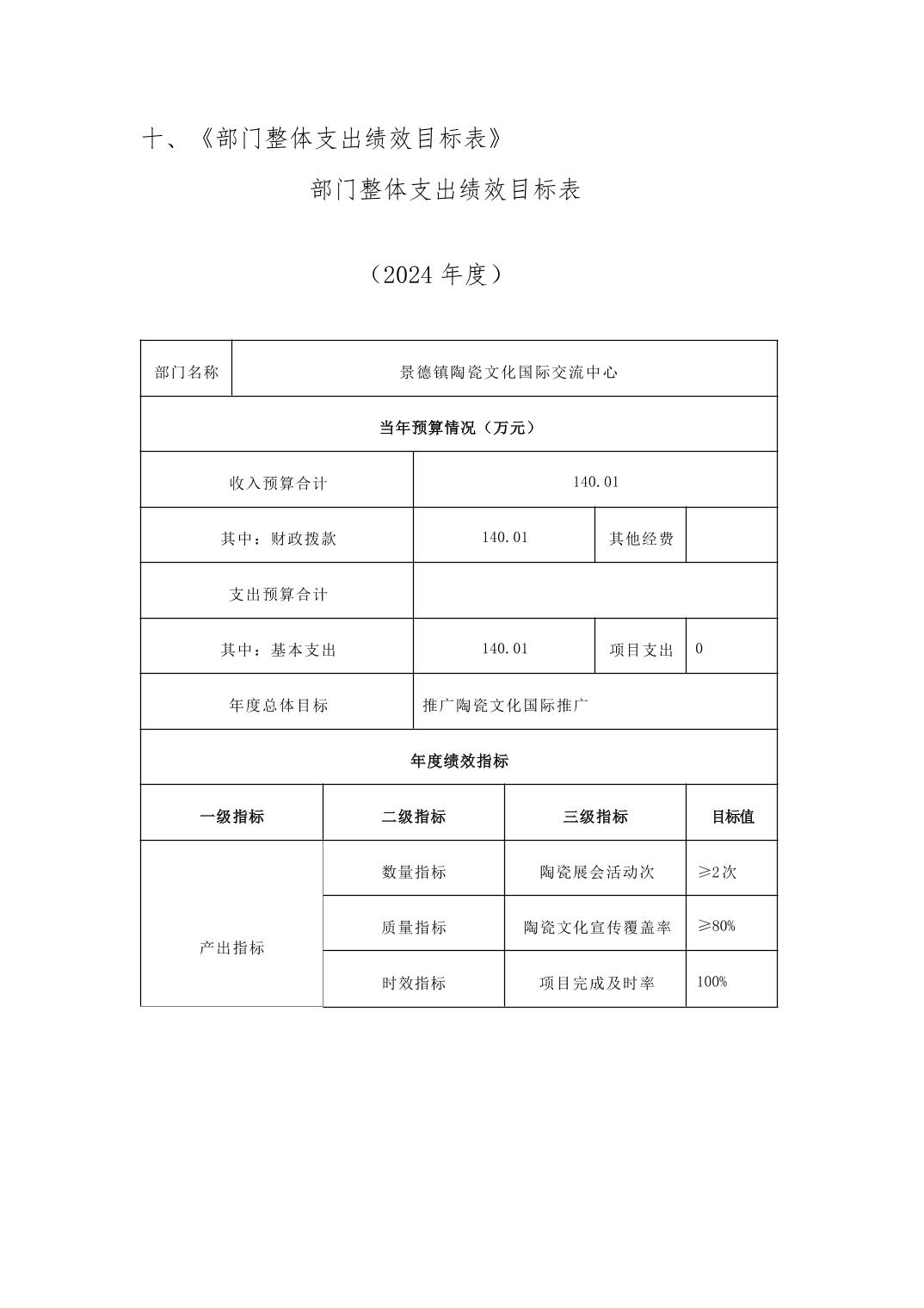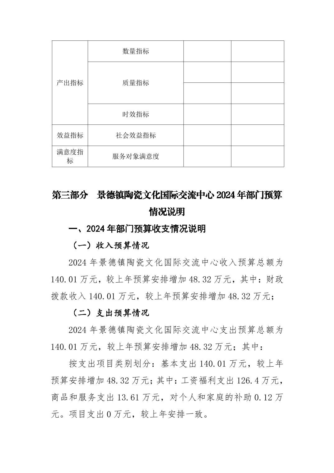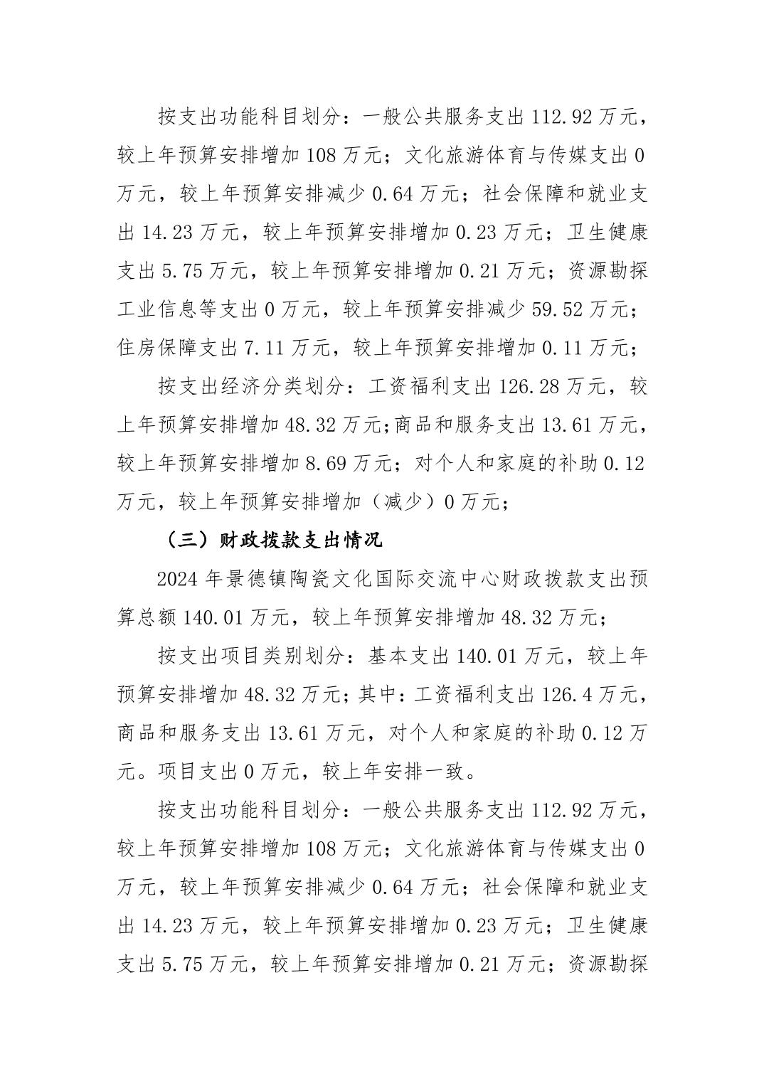 景德镇陶瓷文化国际交流中心2024年部门预算