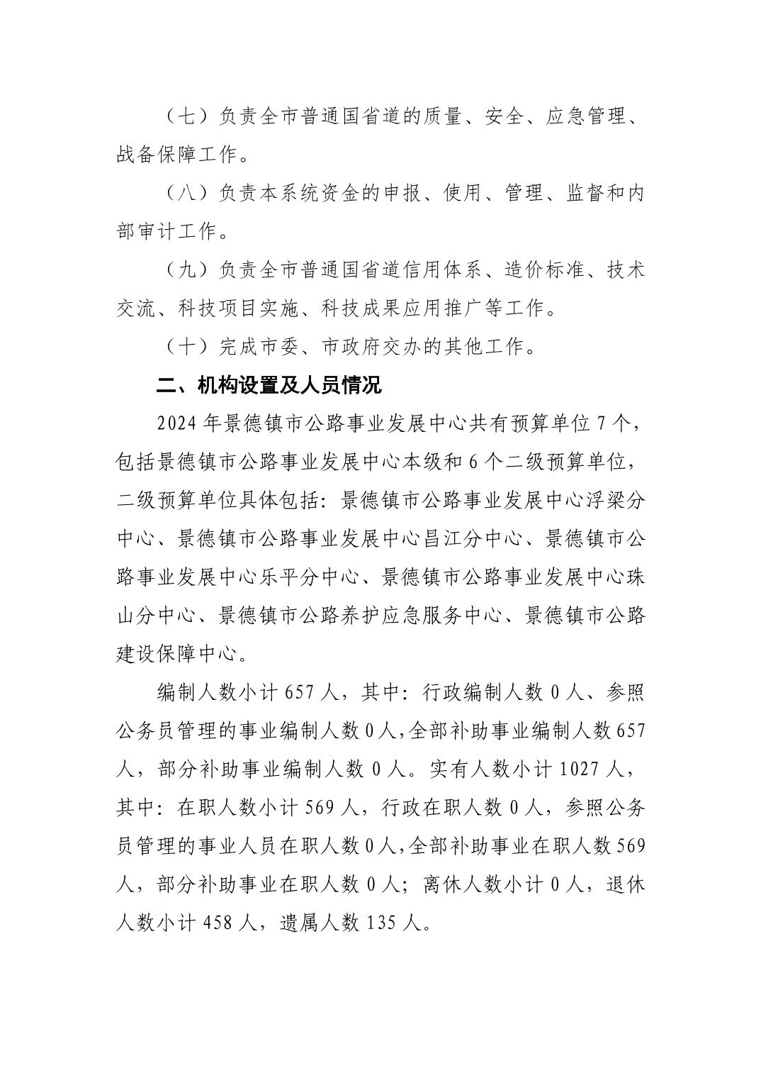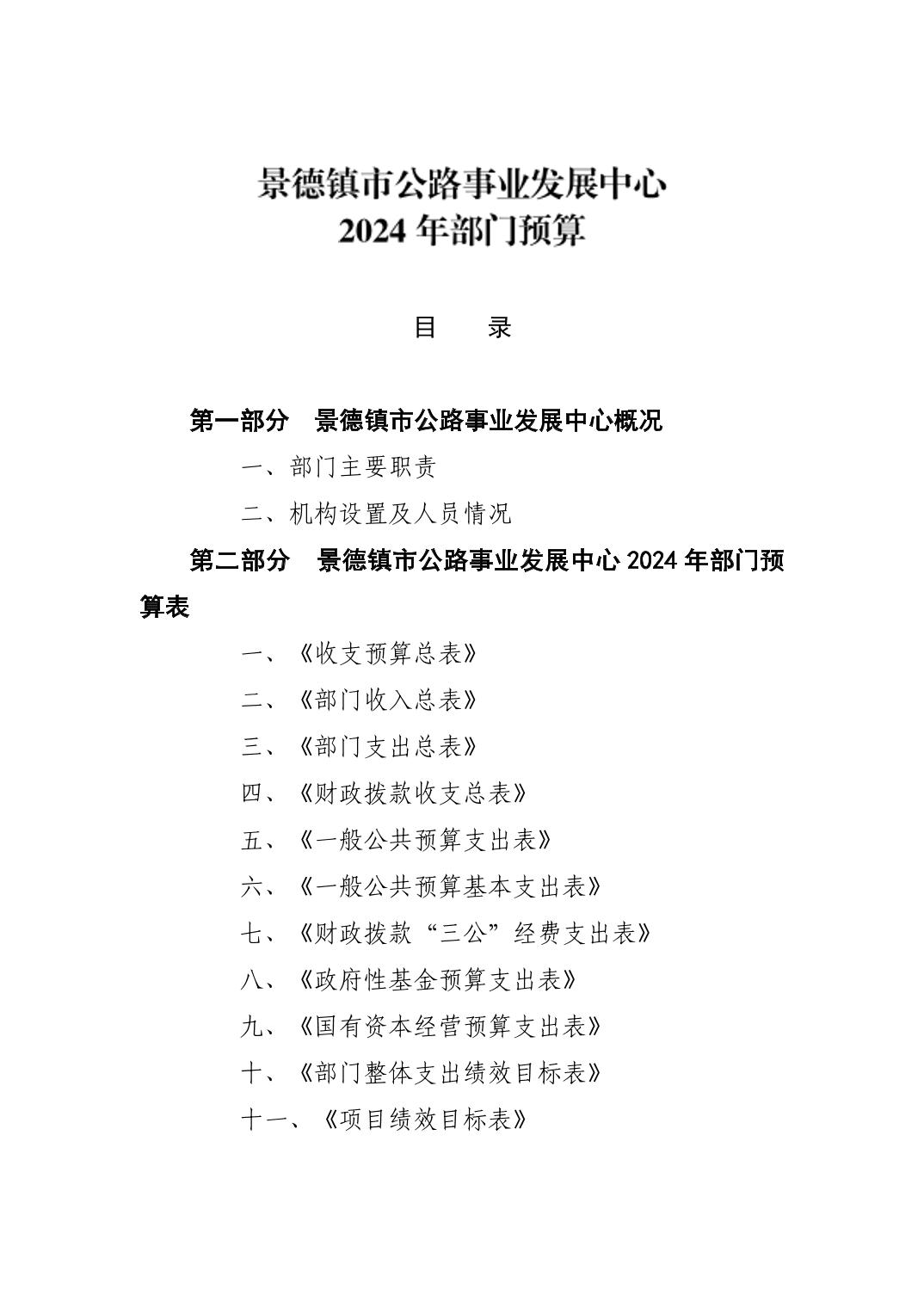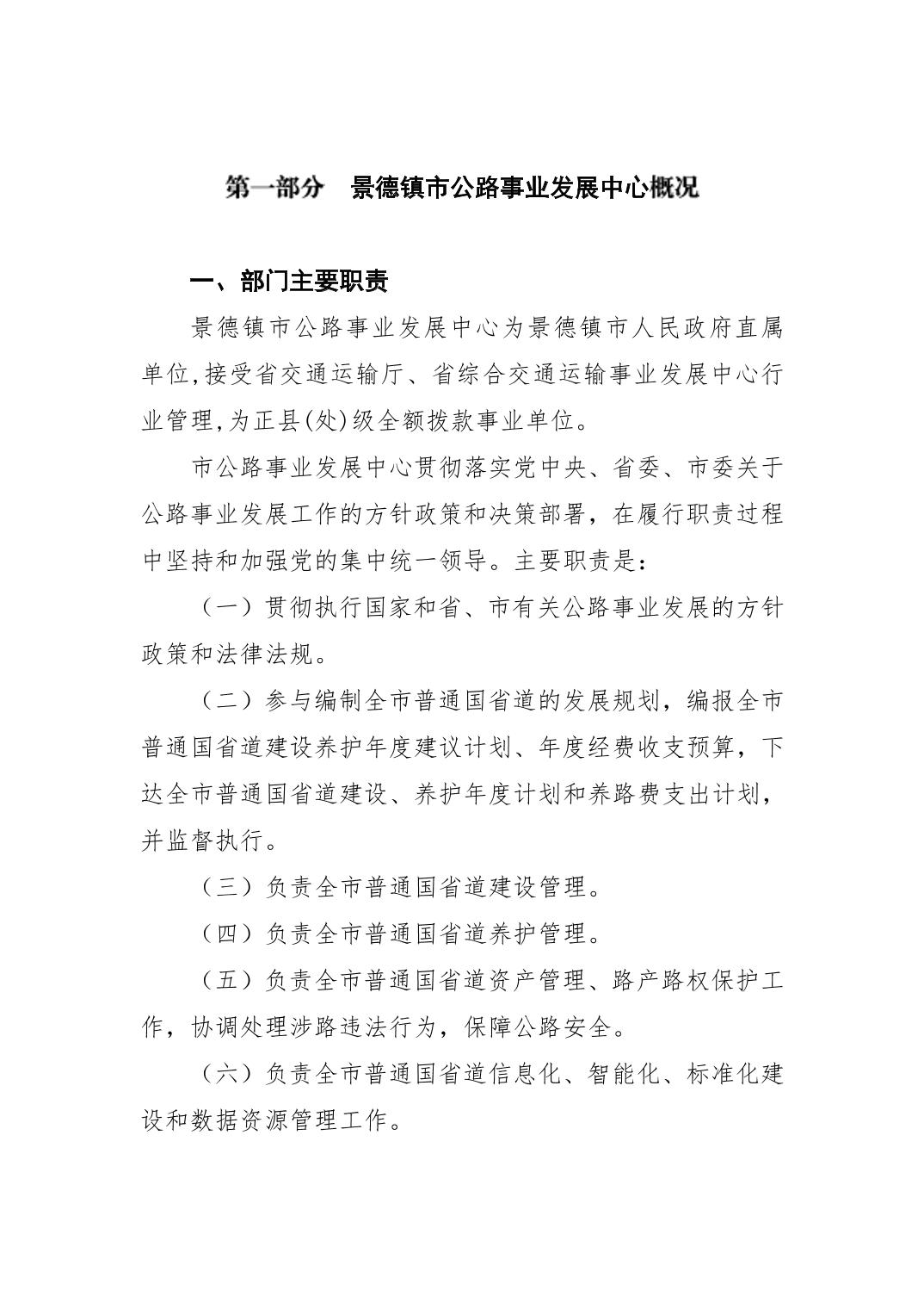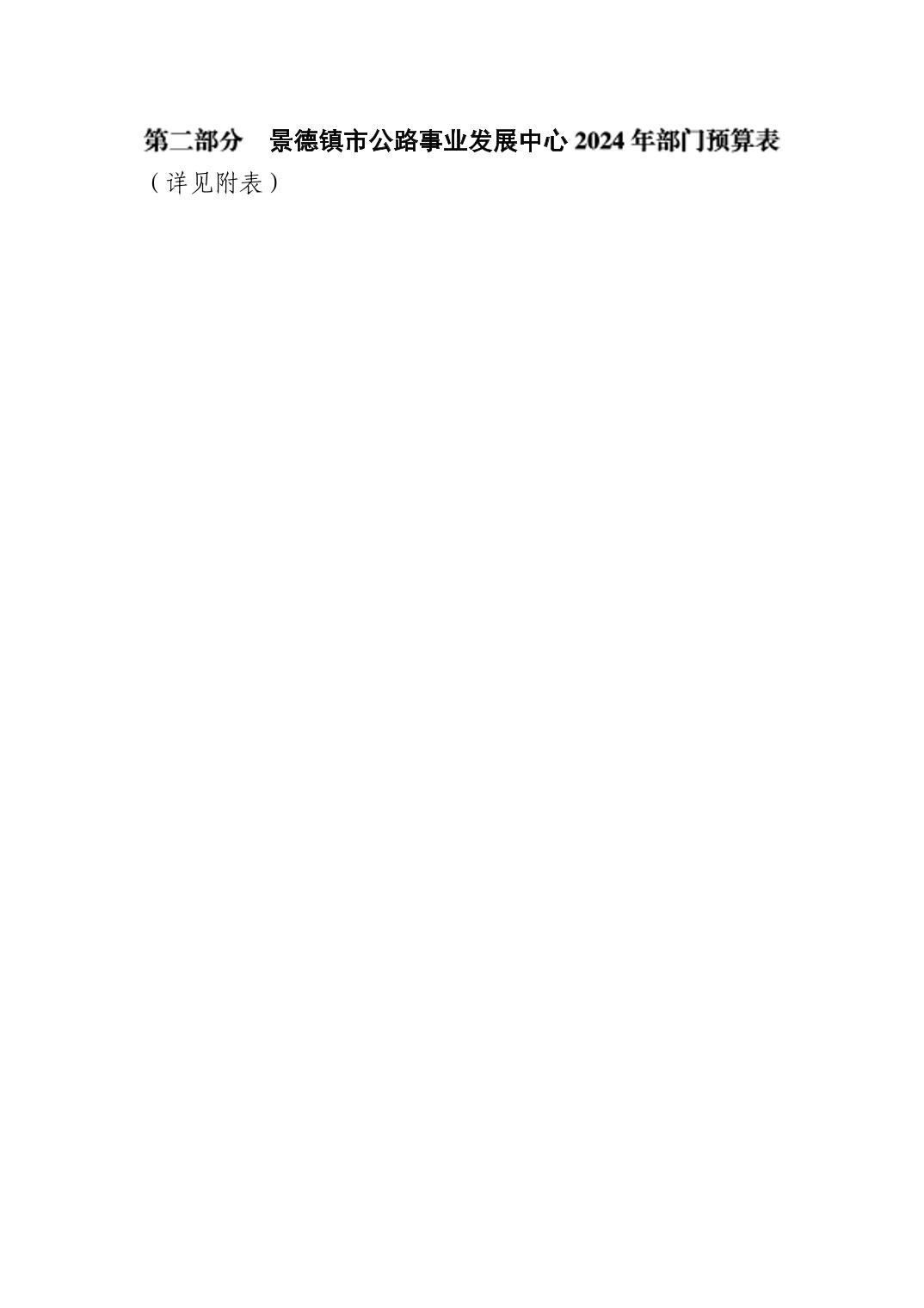 景德镇市公路事业发展中心2024年部门预算