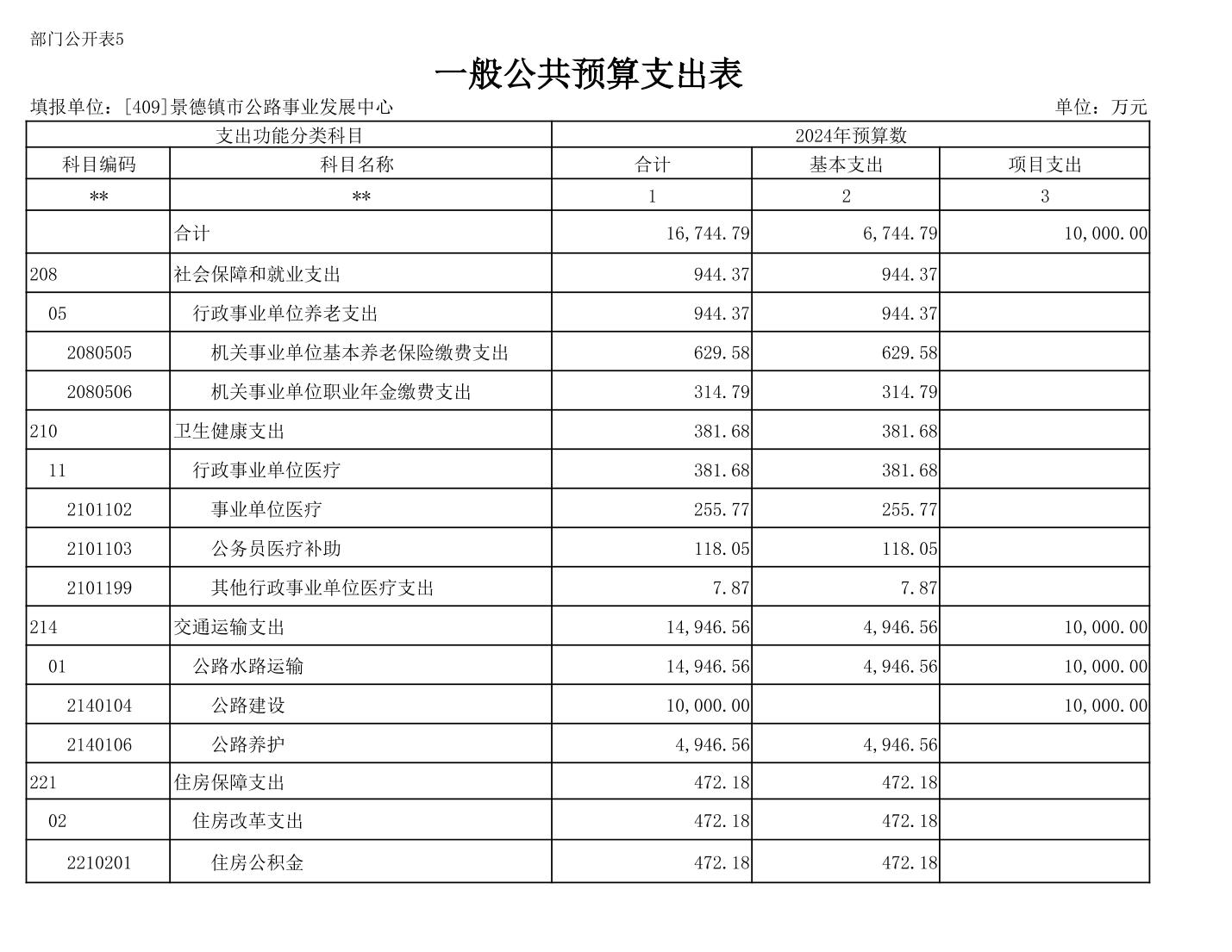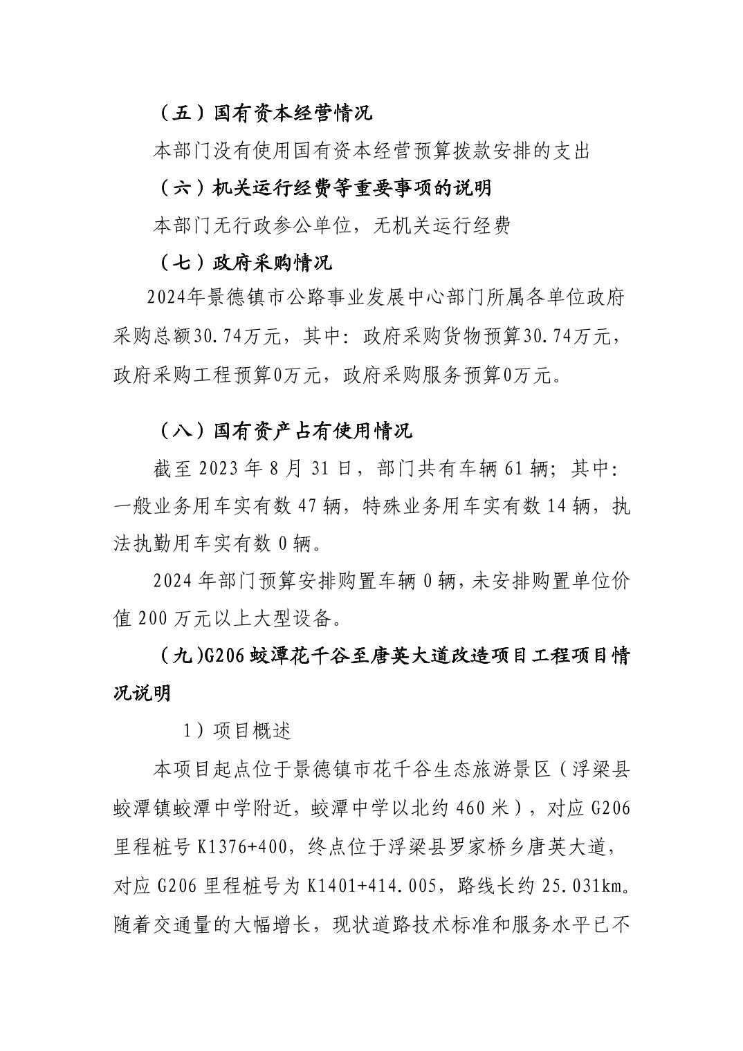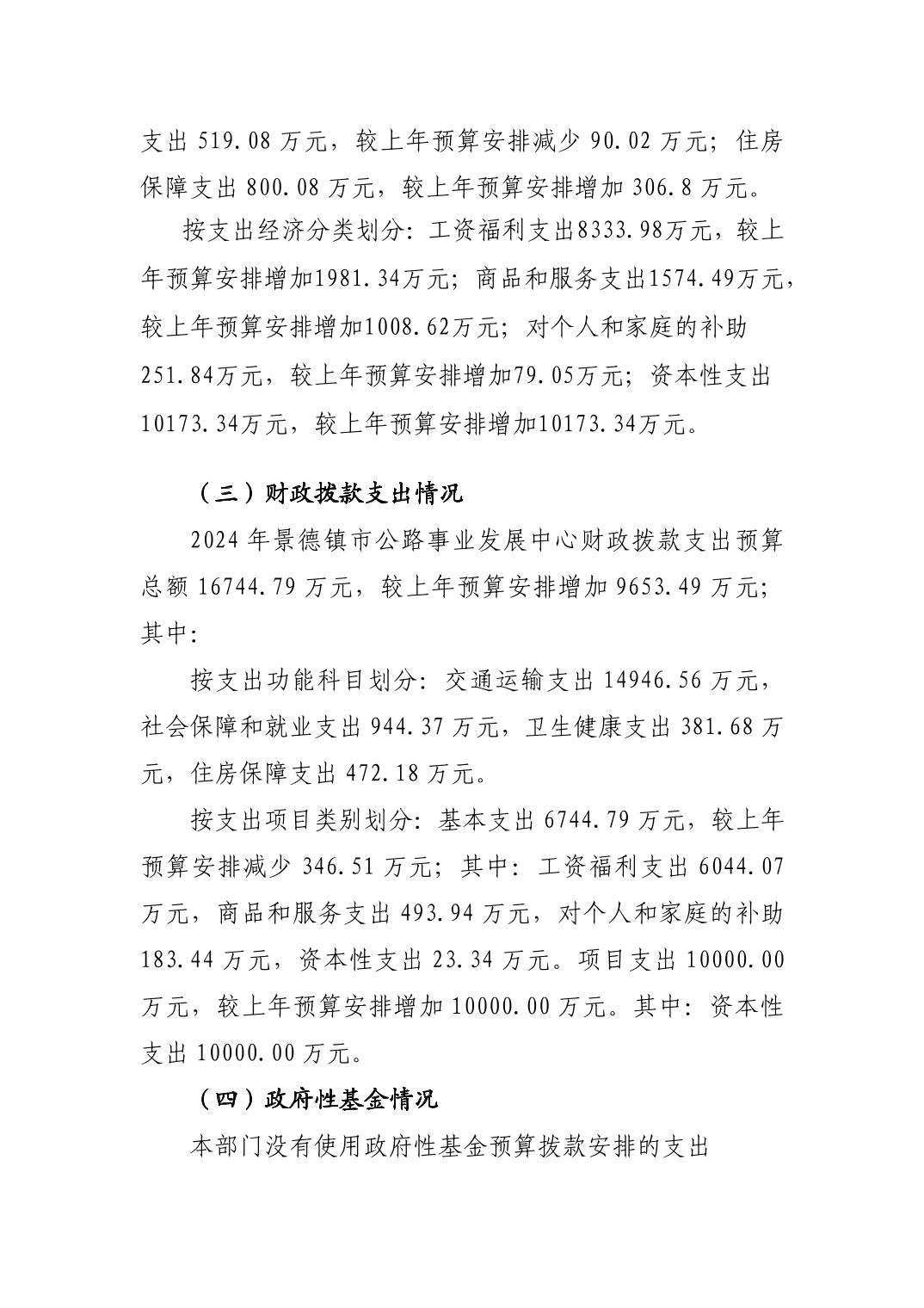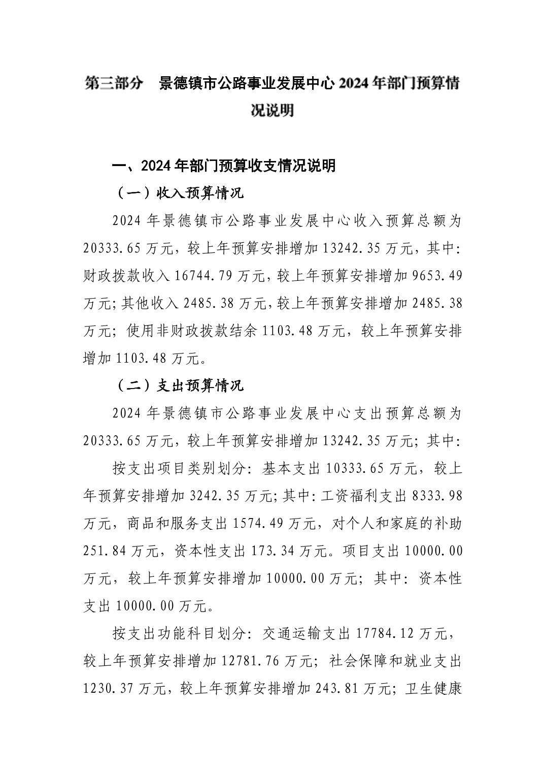 景德镇市公路事业发展中心2024年部门预算