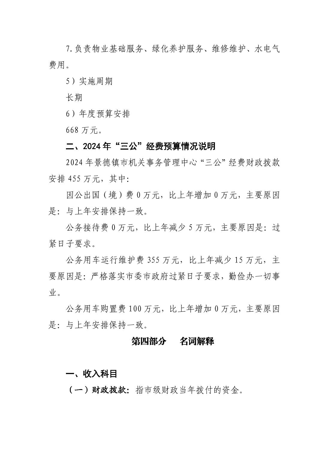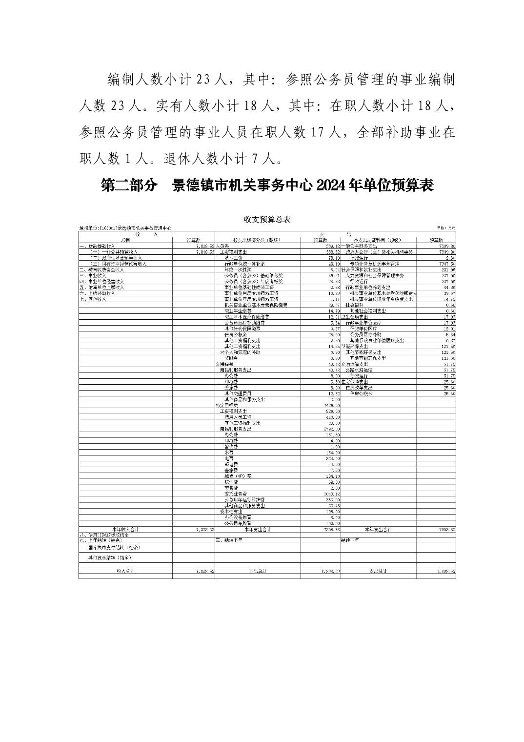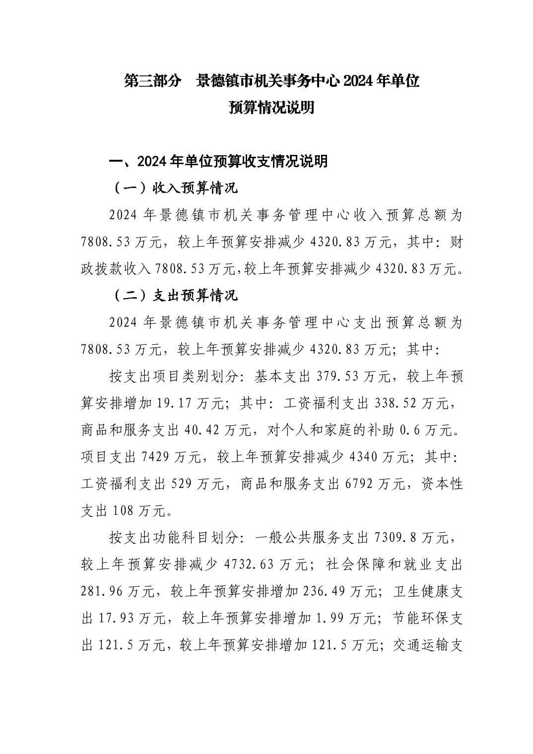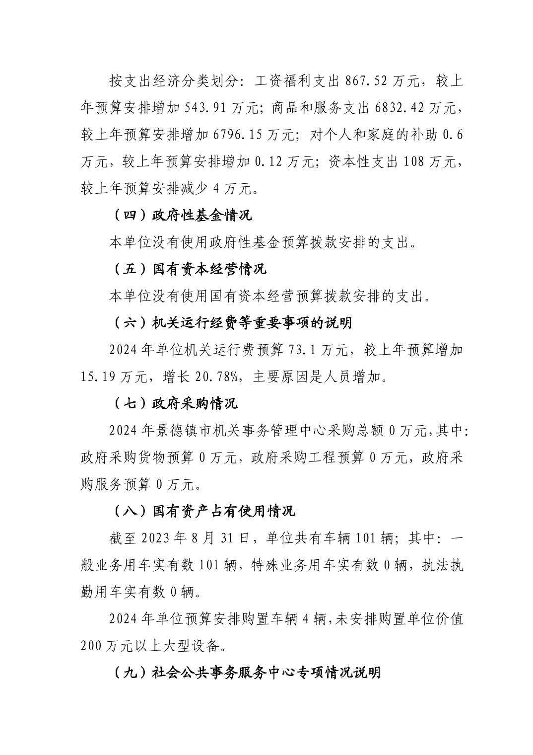 景德镇市机关事务管理中心2024年单位预算
