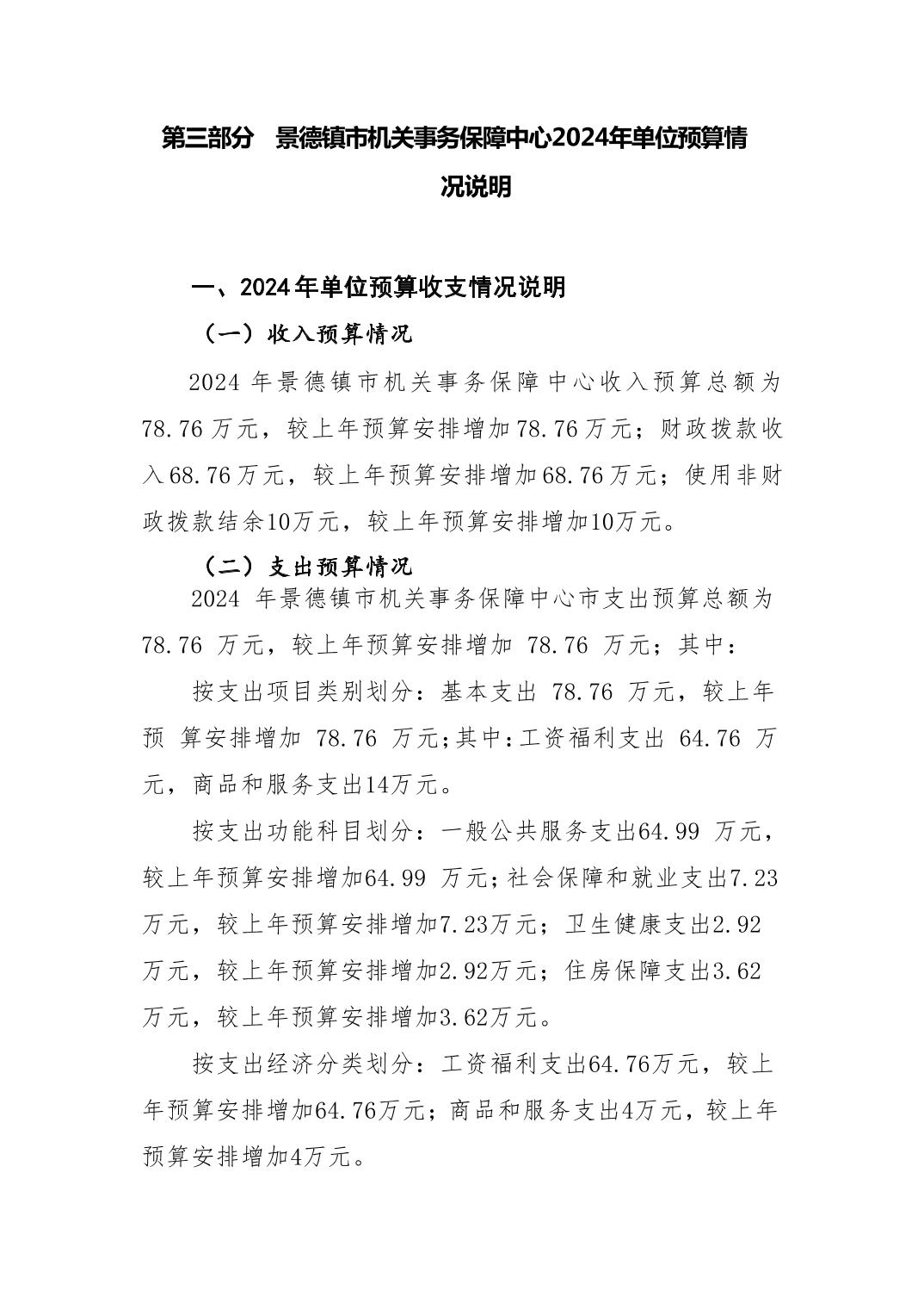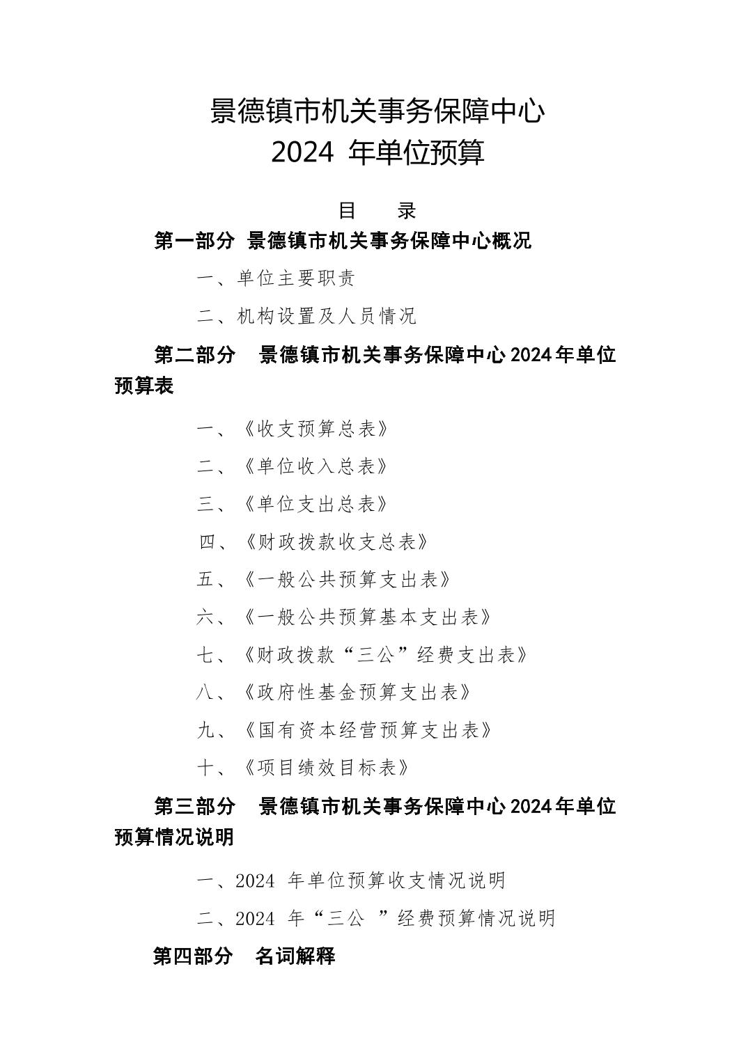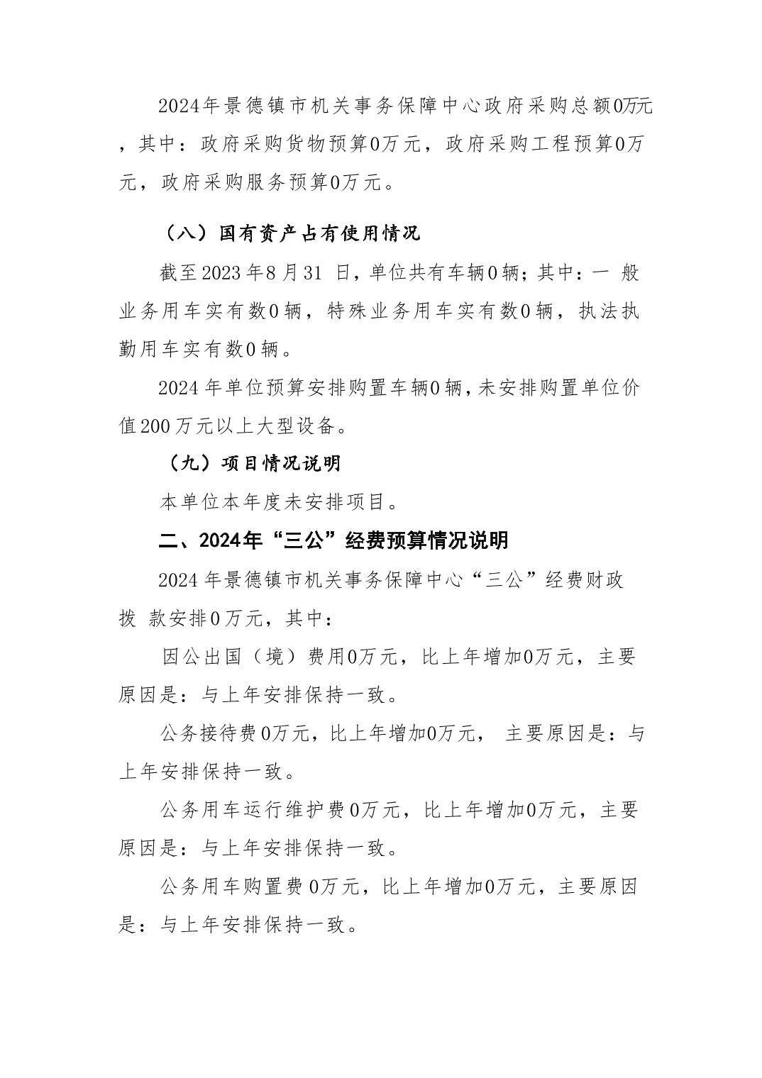景德镇市机关事务保障中心2024年单位预算