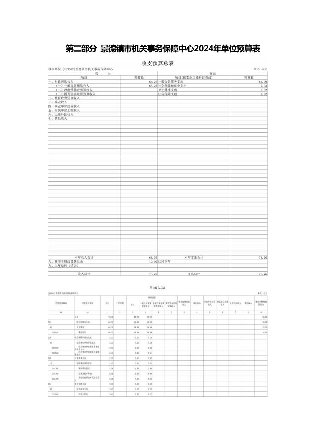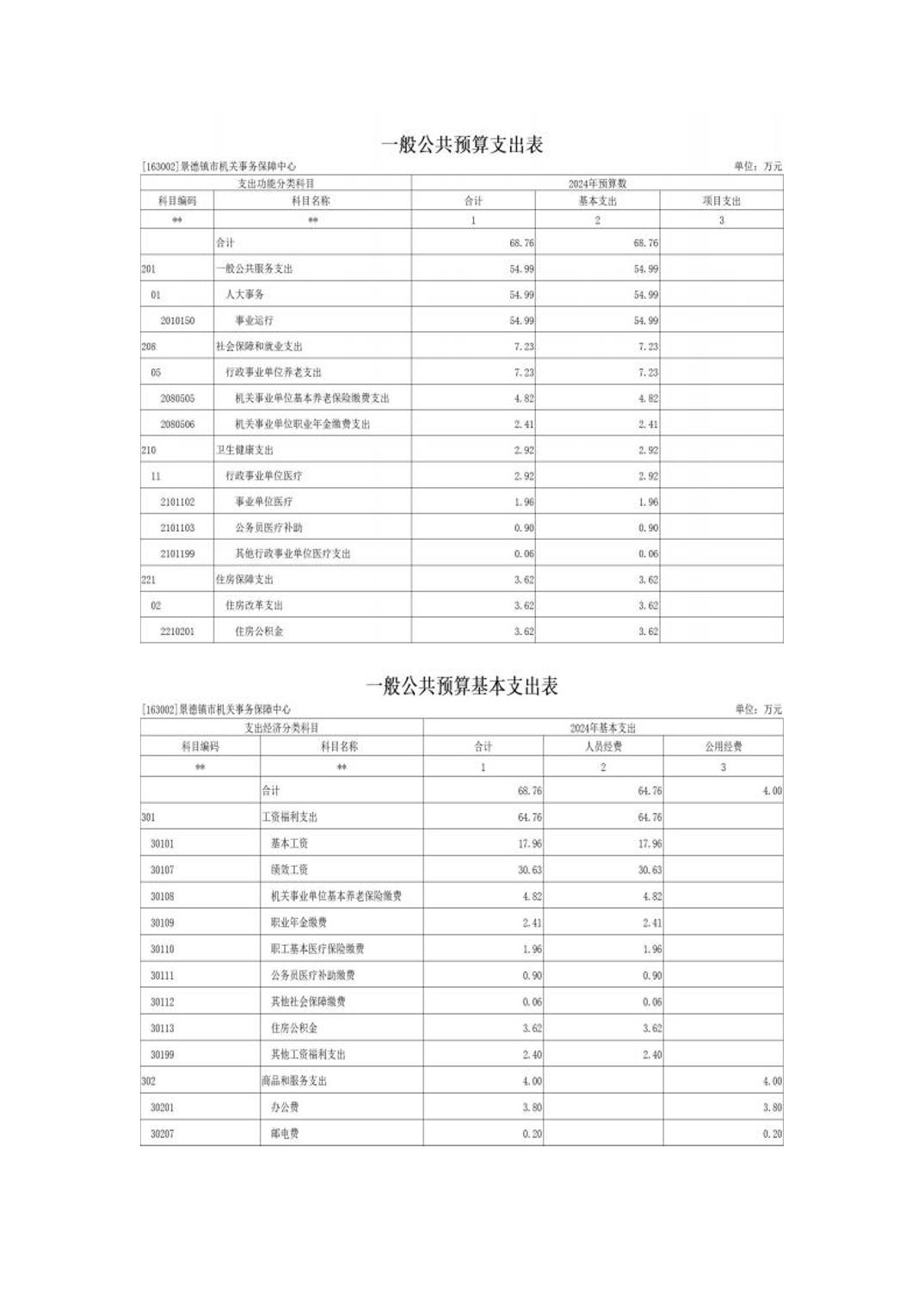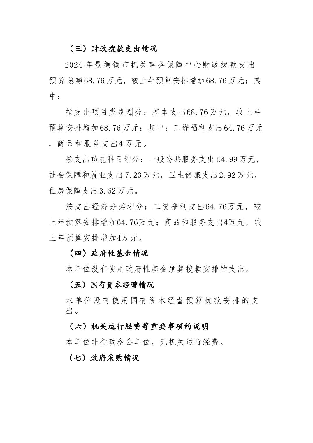 景德镇市机关事务保障中心2024年单位预算