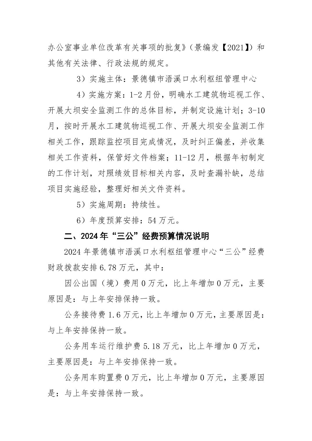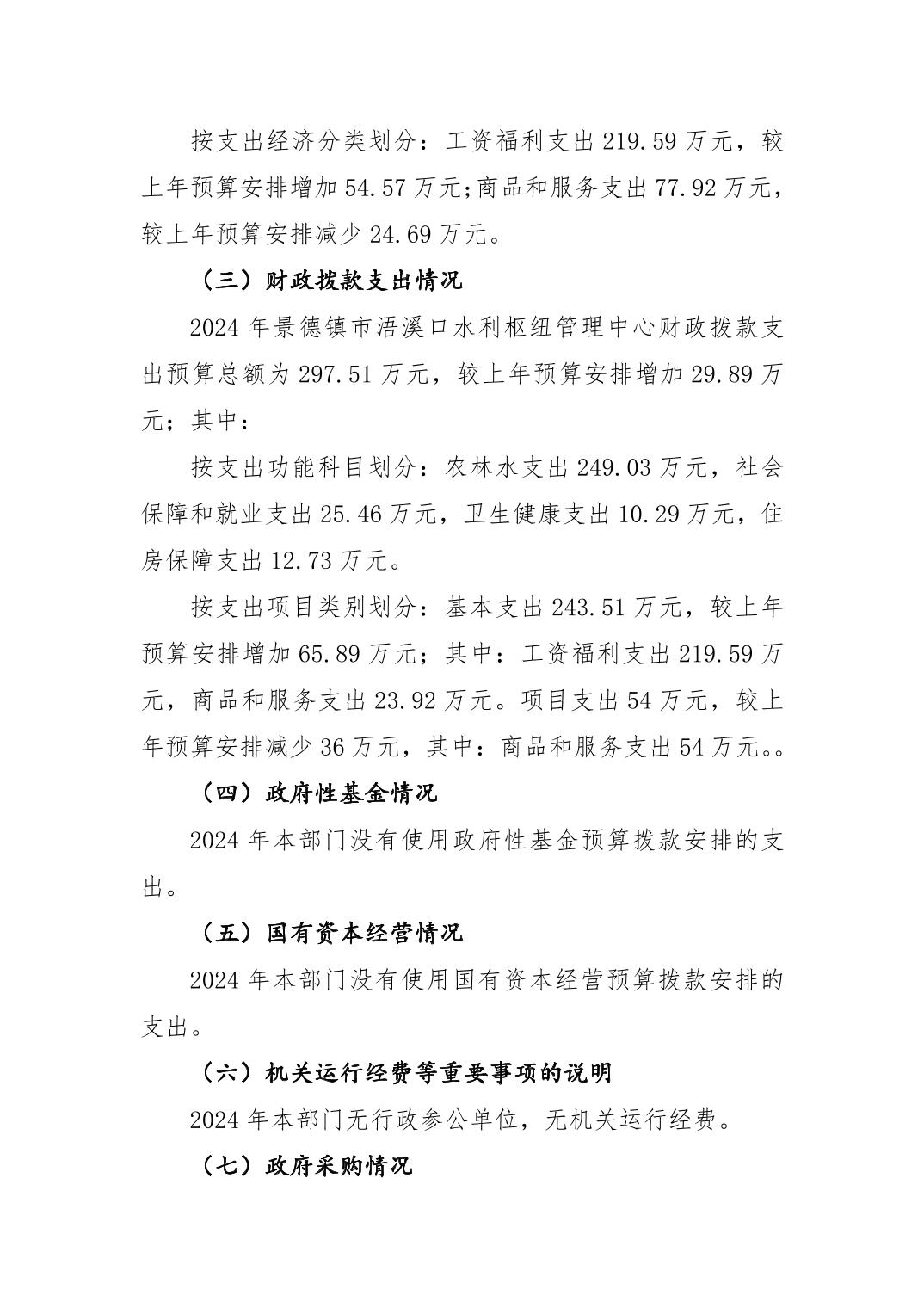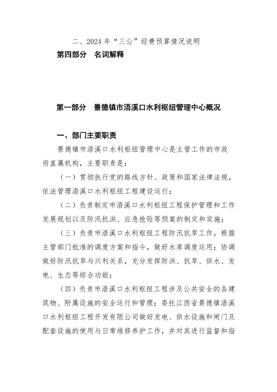 景德镇市浯溪口水利枢纽管理中心2024年部门预算