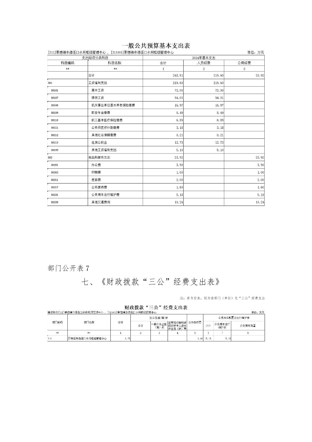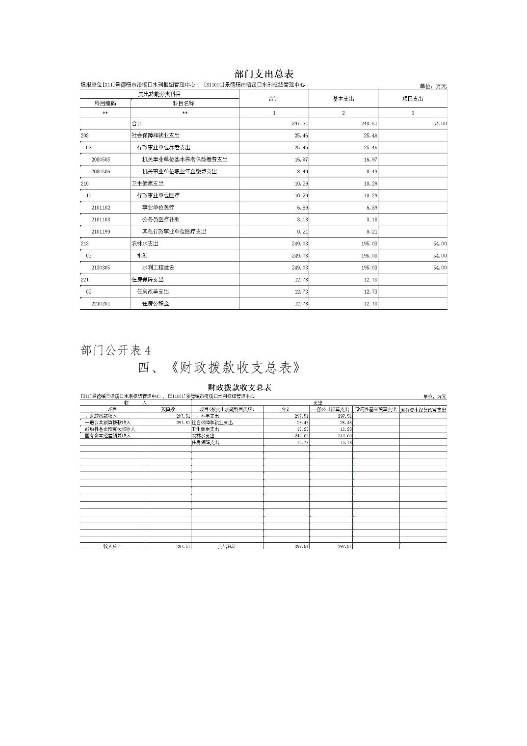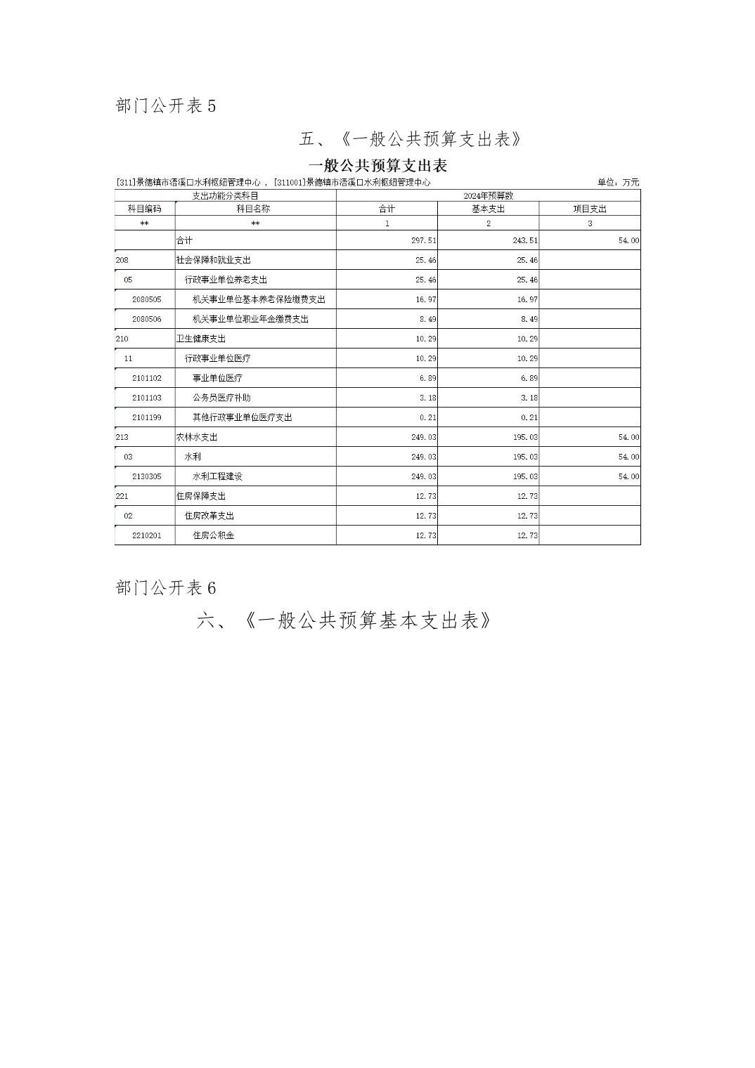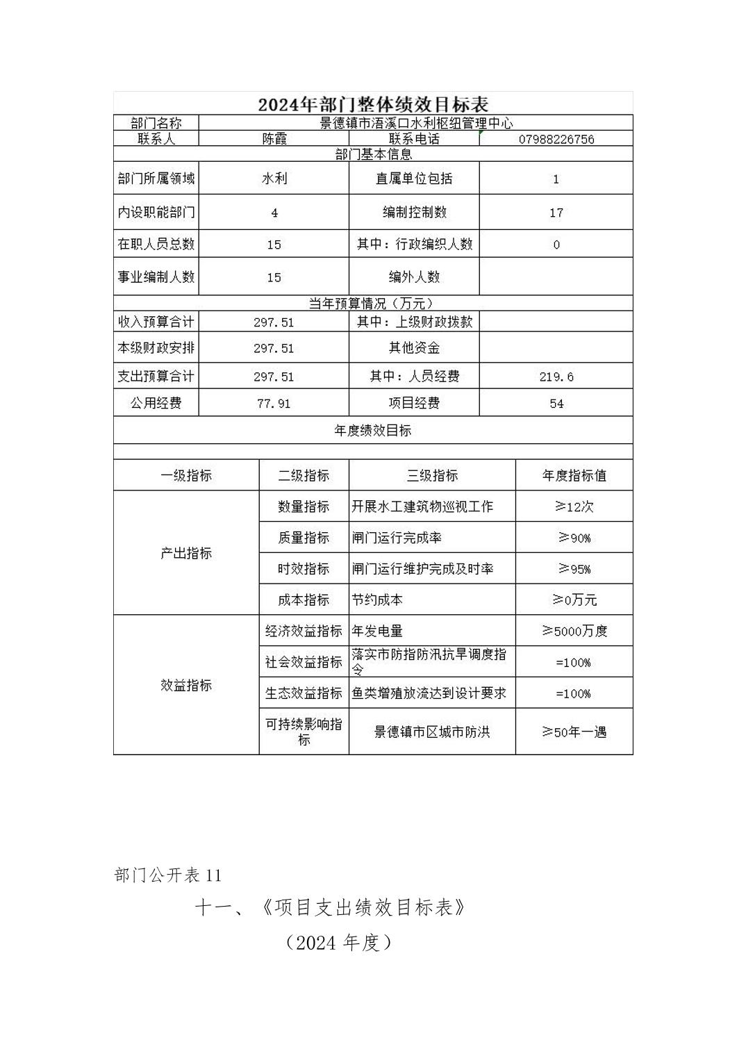 景德镇市浯溪口水利枢纽管理中心2024年部门预算