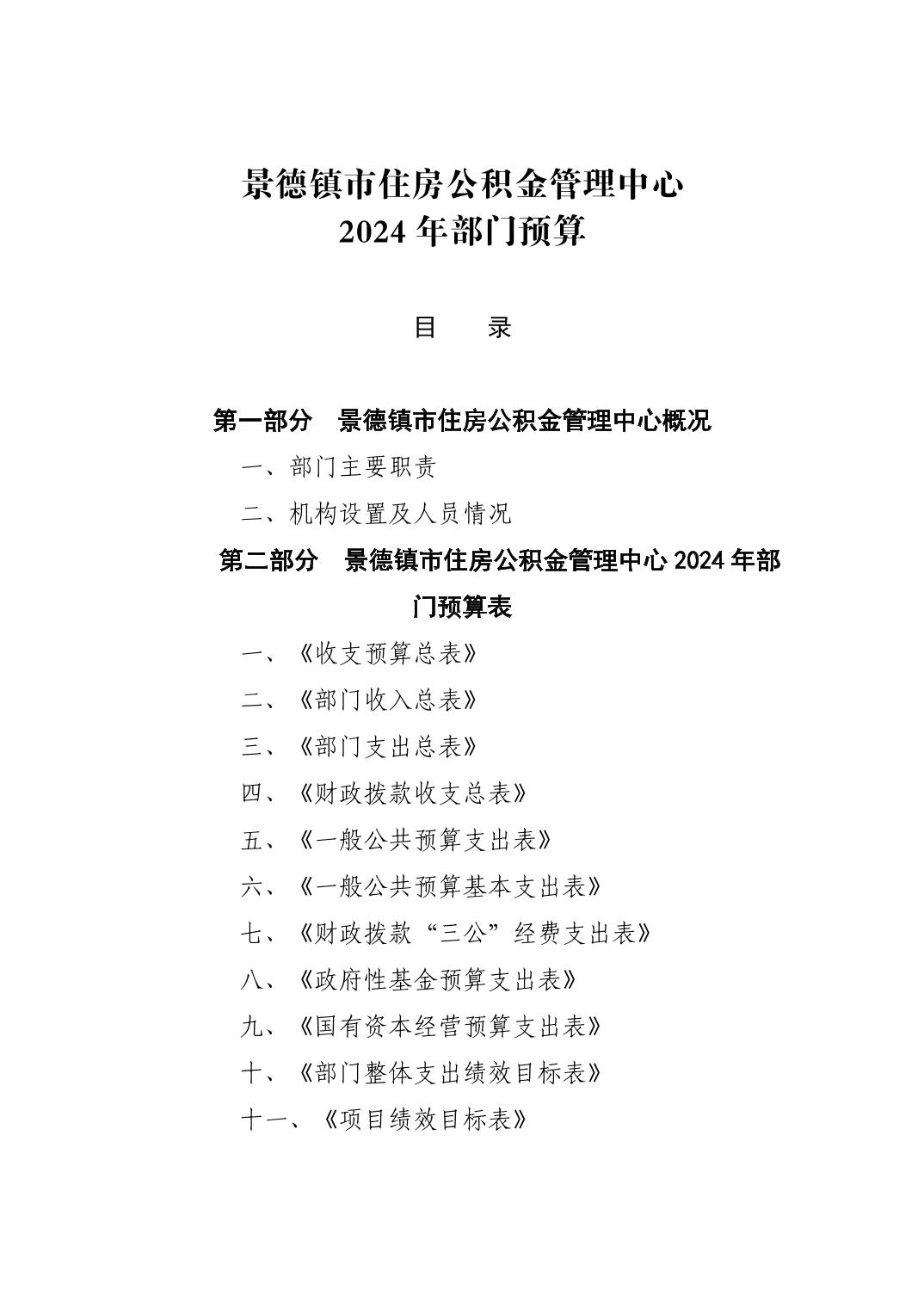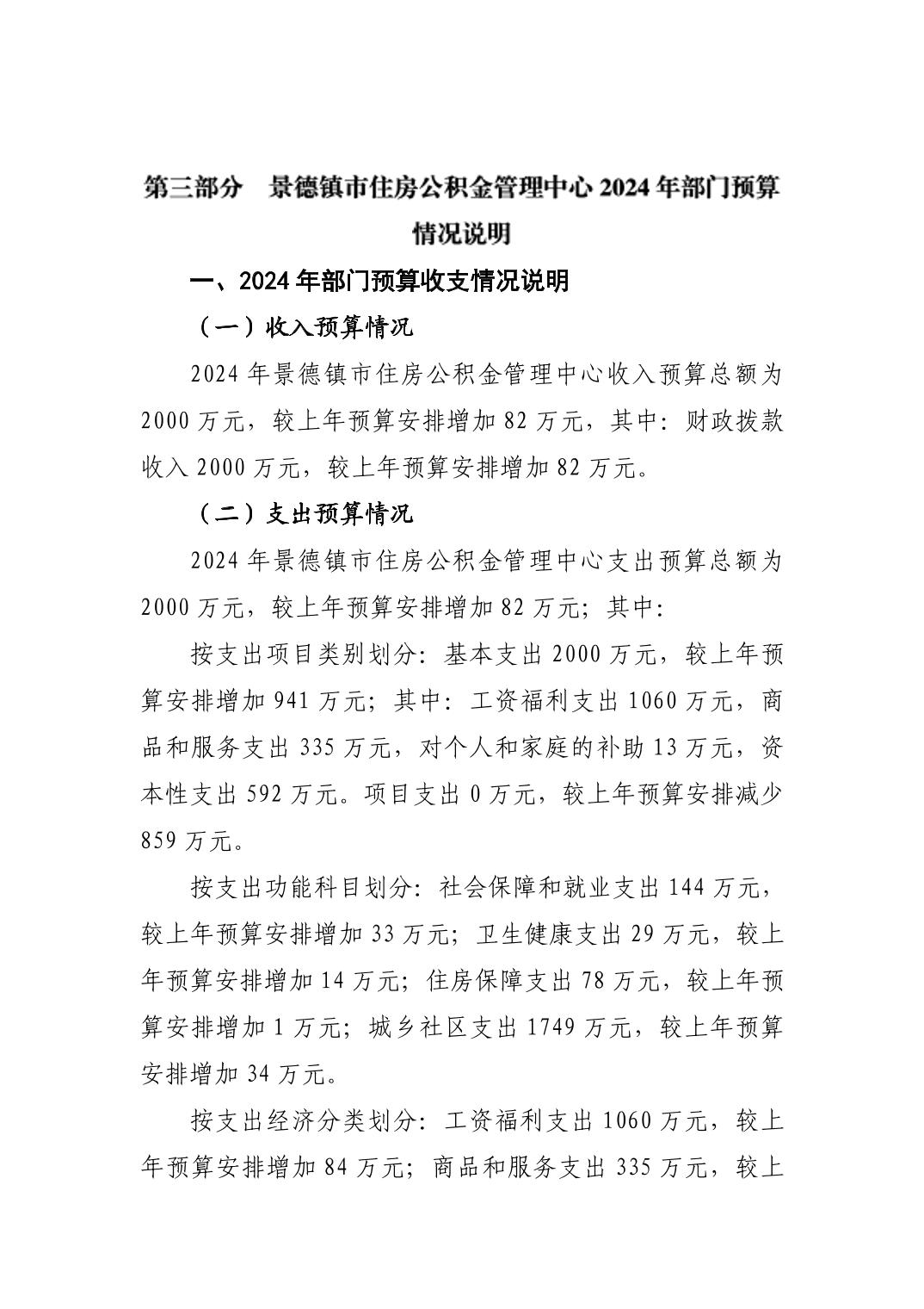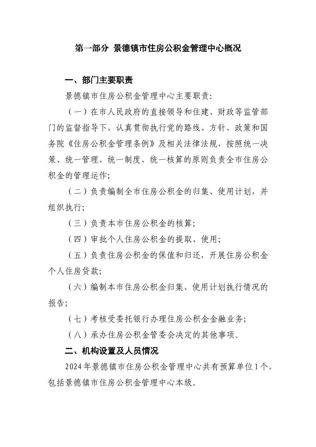 景德镇市住房公积金管理中心2024年部门预算