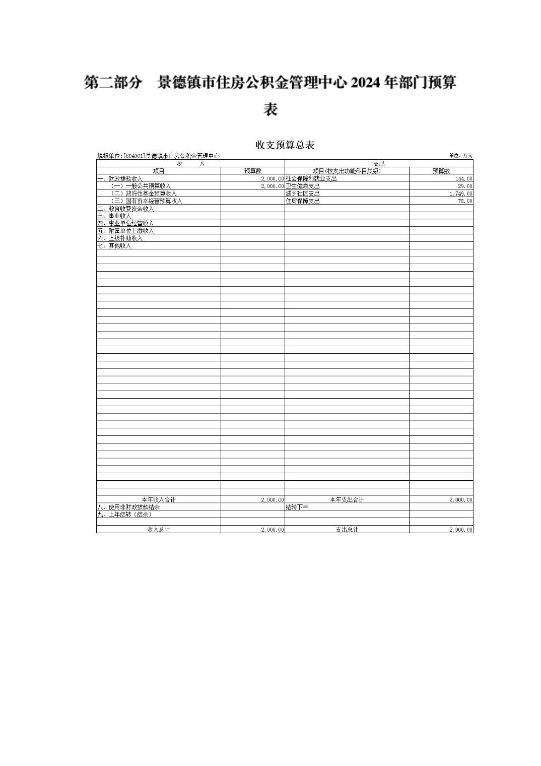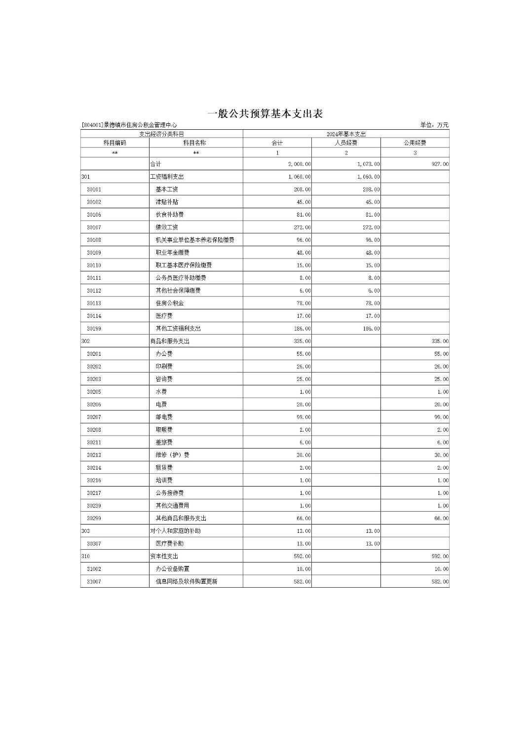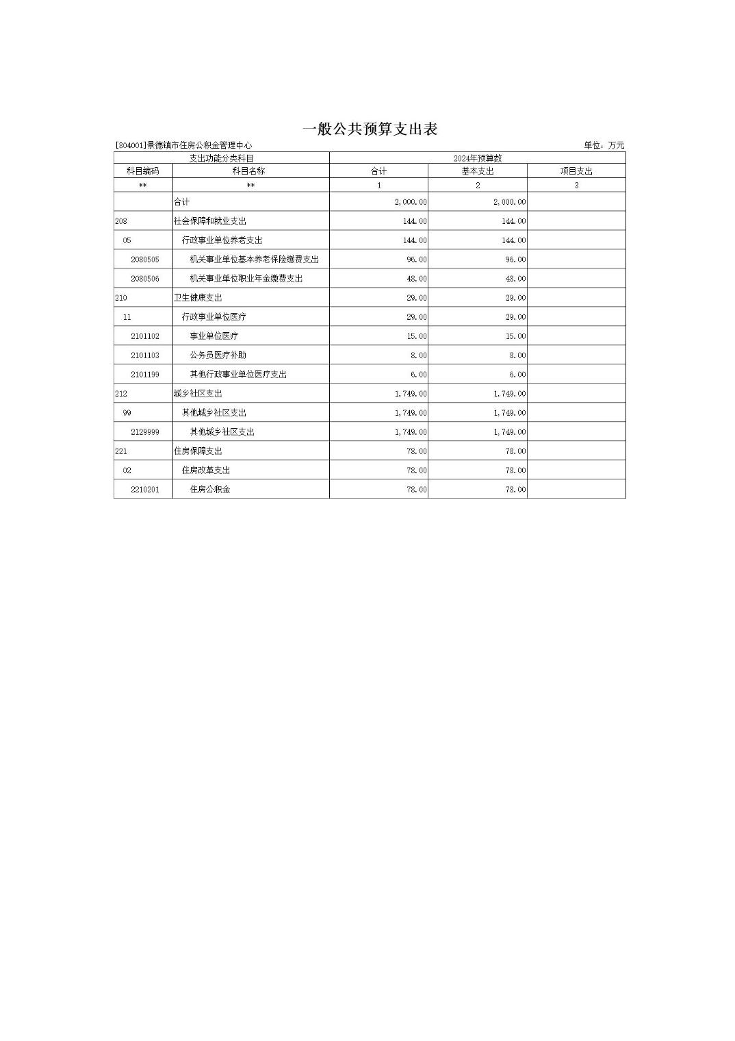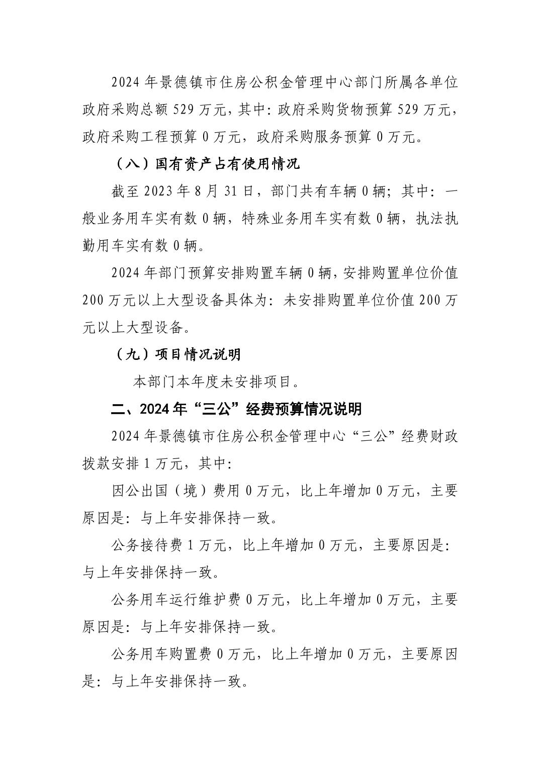 景德镇市住房公积金管理中心2024年部门预算