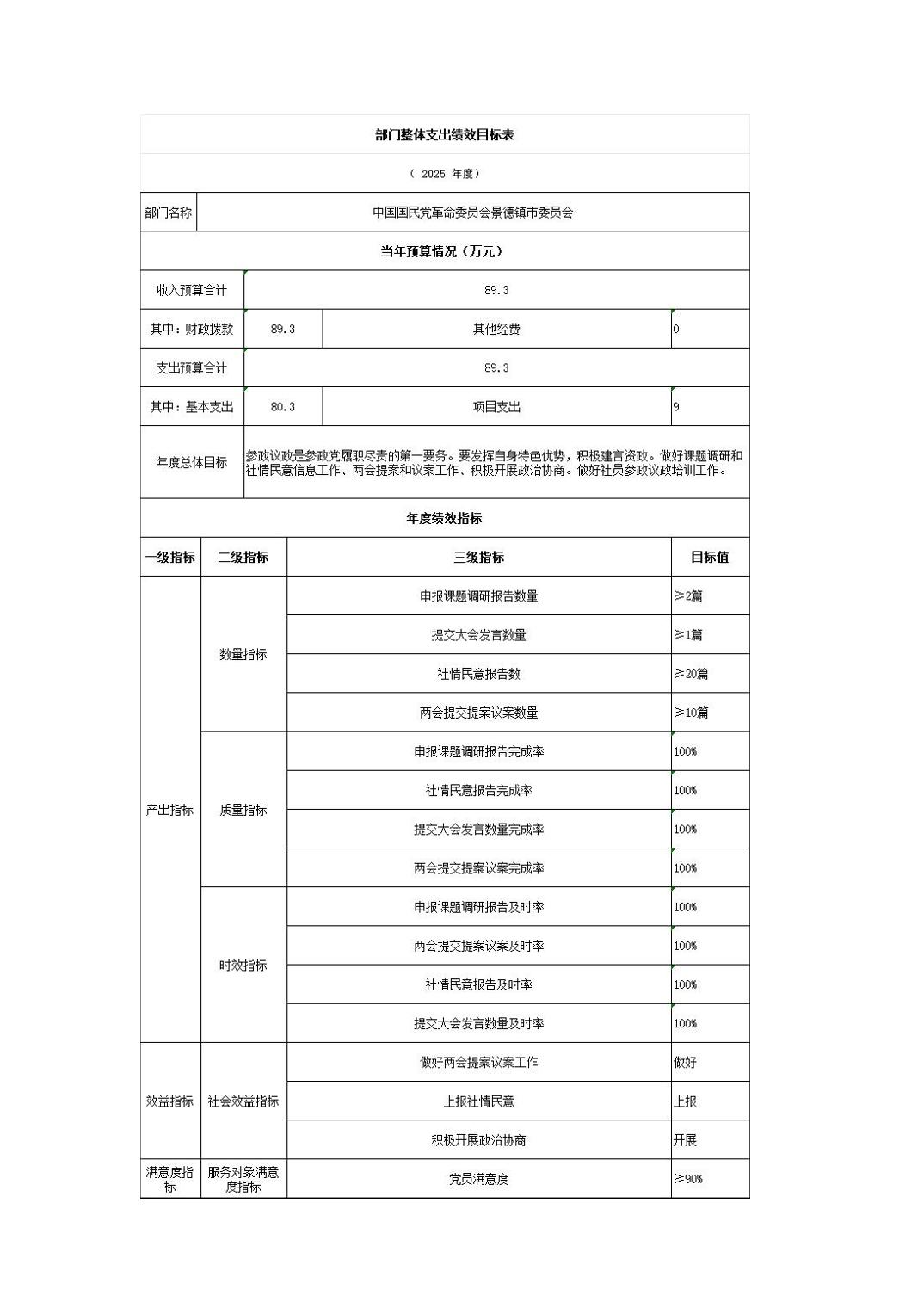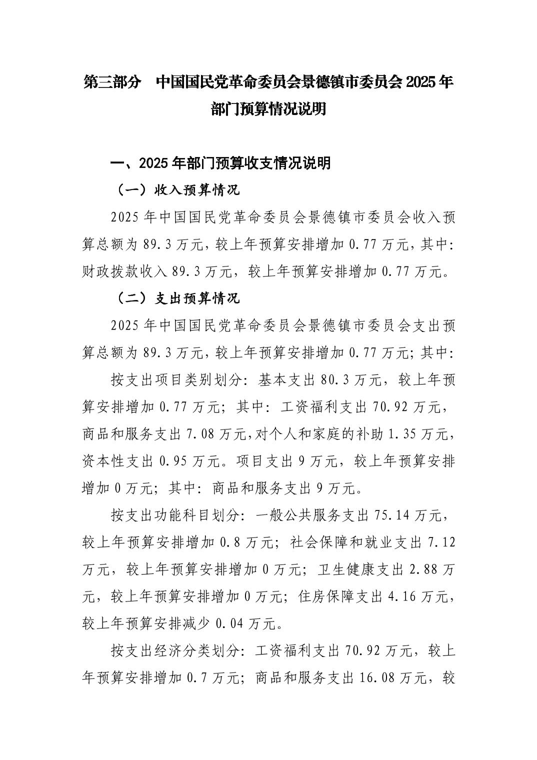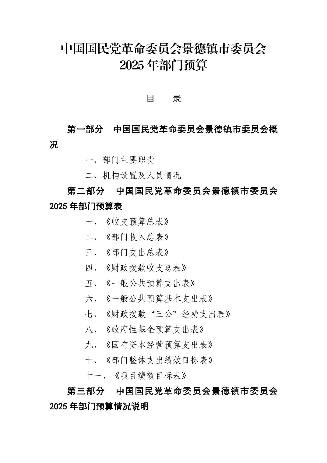 中国国民党革命委员会景德镇市委员会2025年部门预算