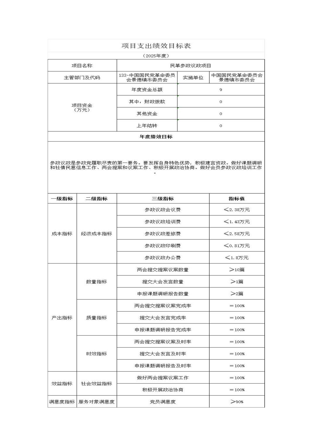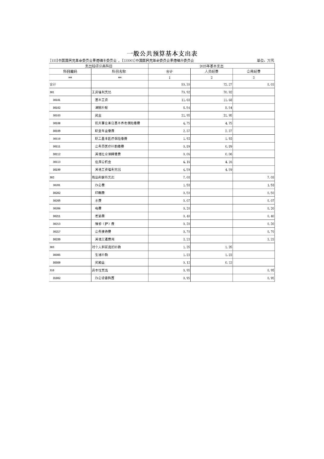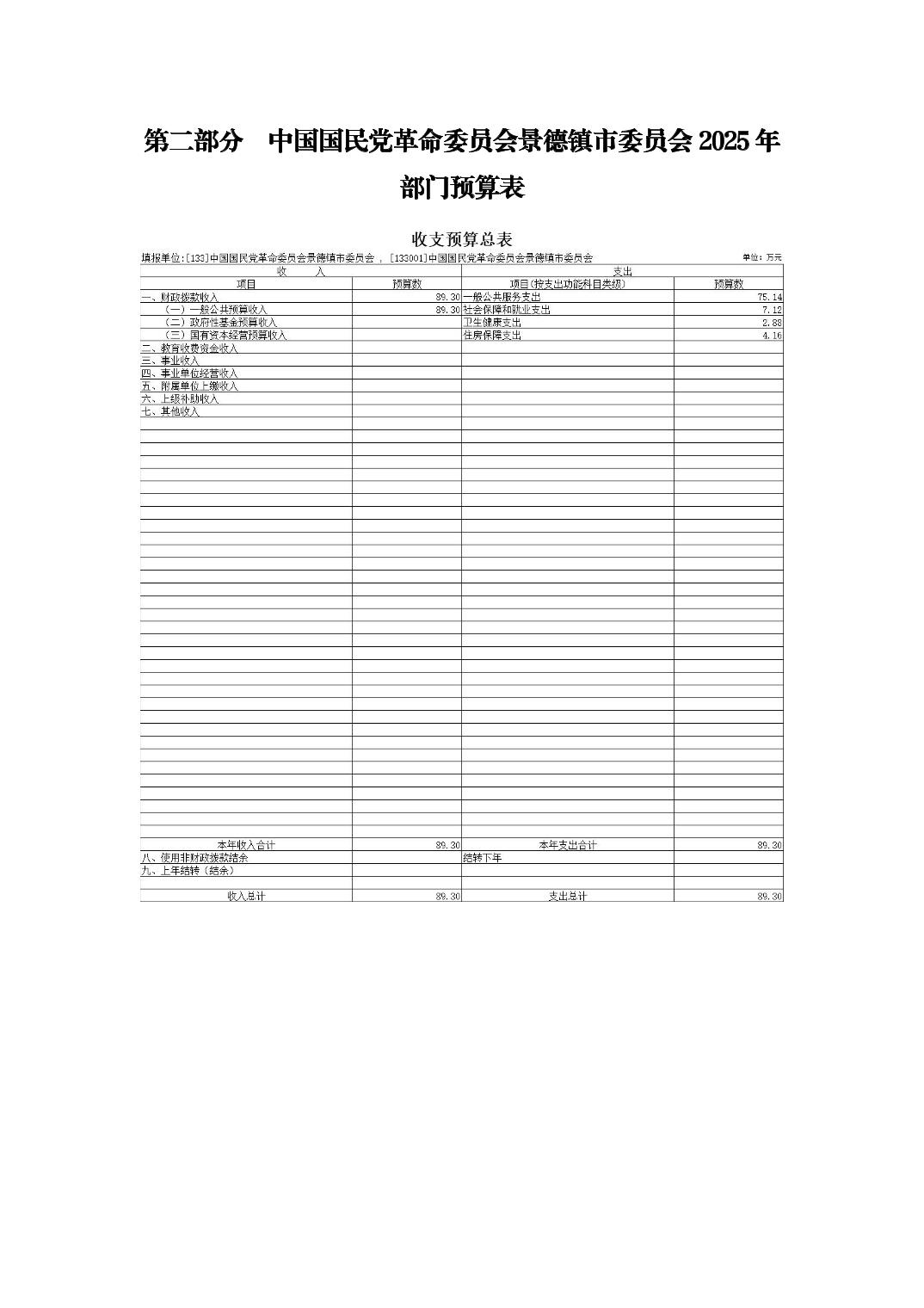 中国国民党革命委员会景德镇市委员会2025年部门预算