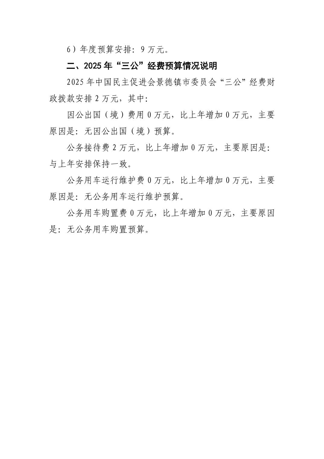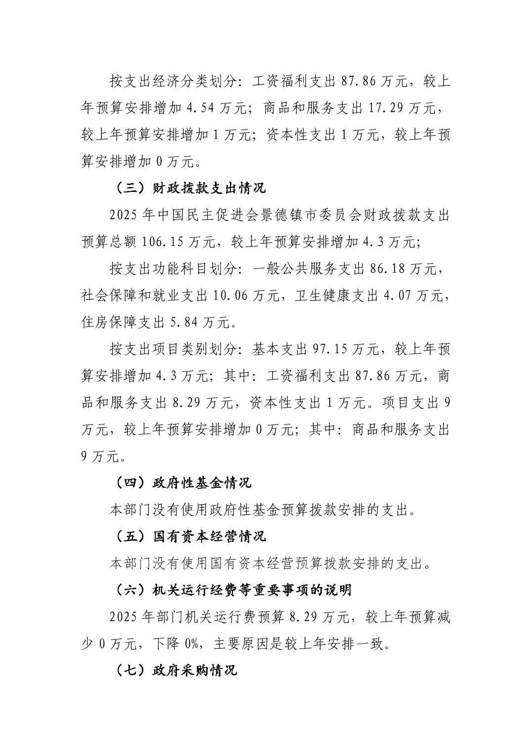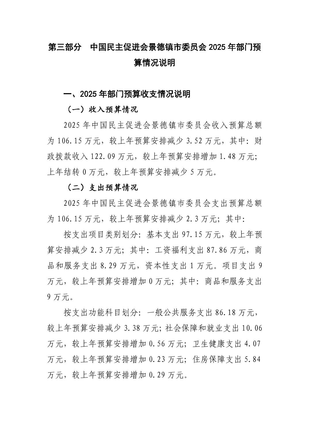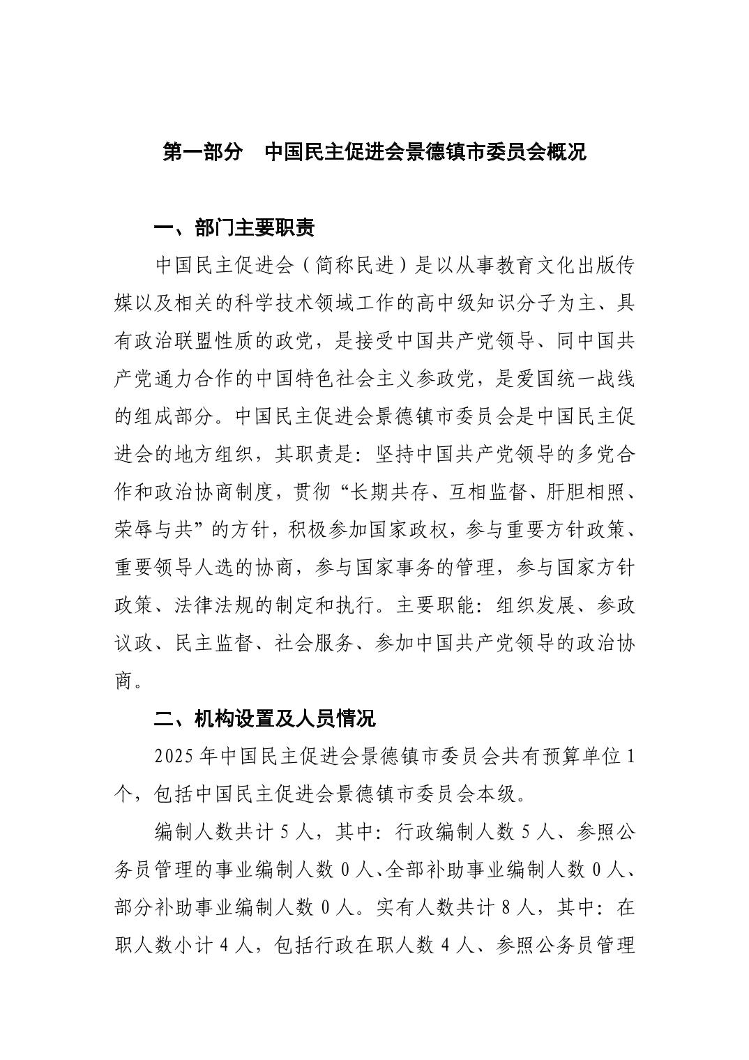 中国民主促进会景德镇市委员会2025年部门预算