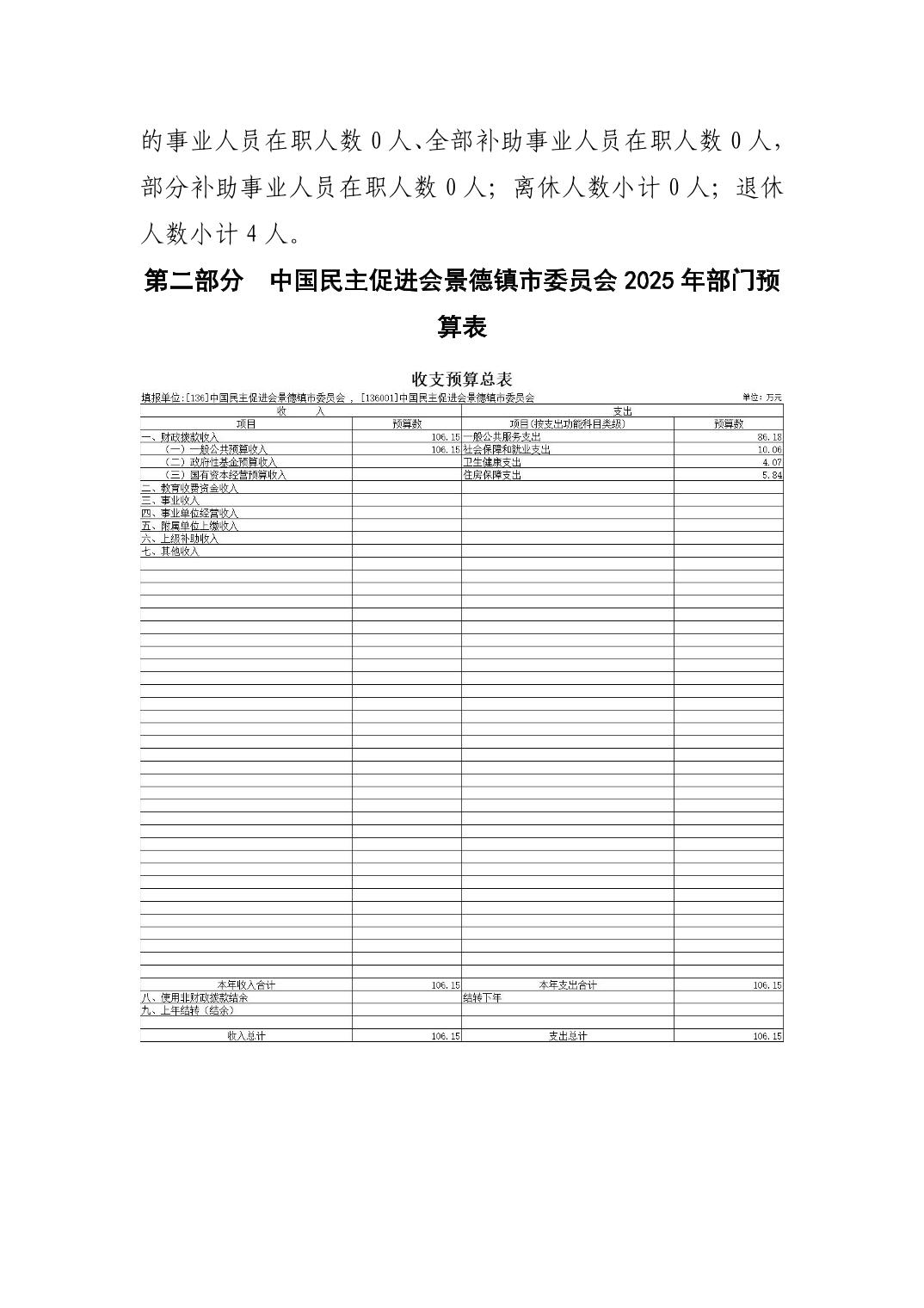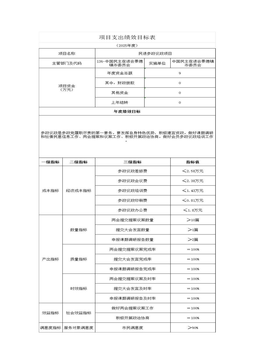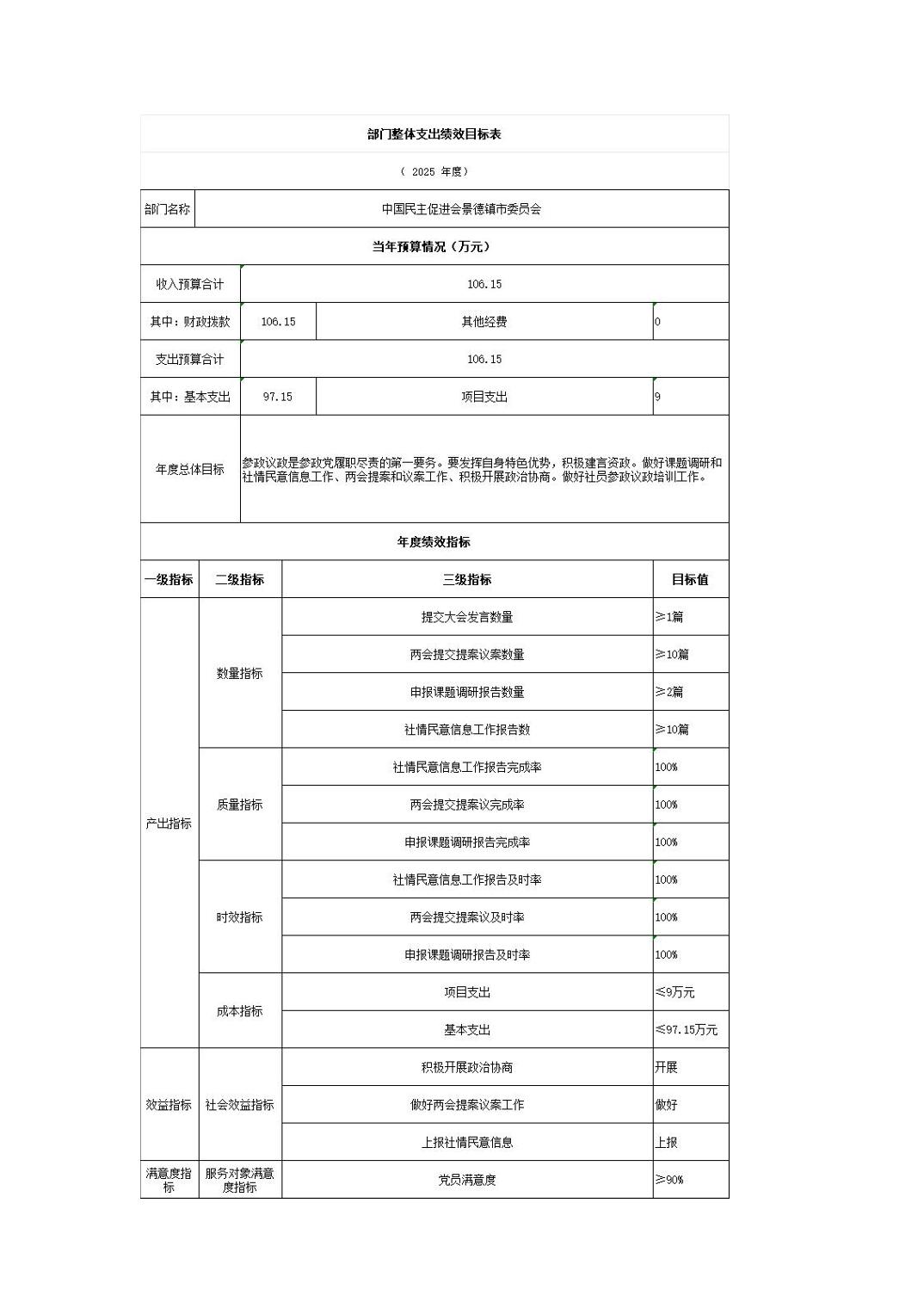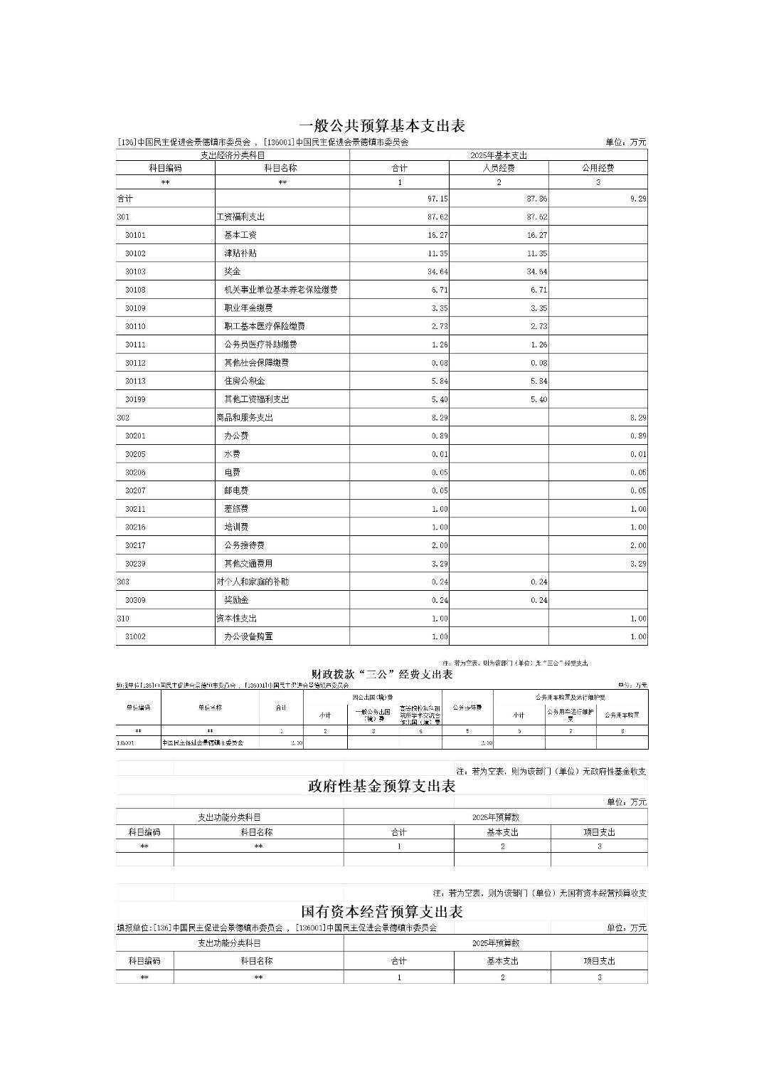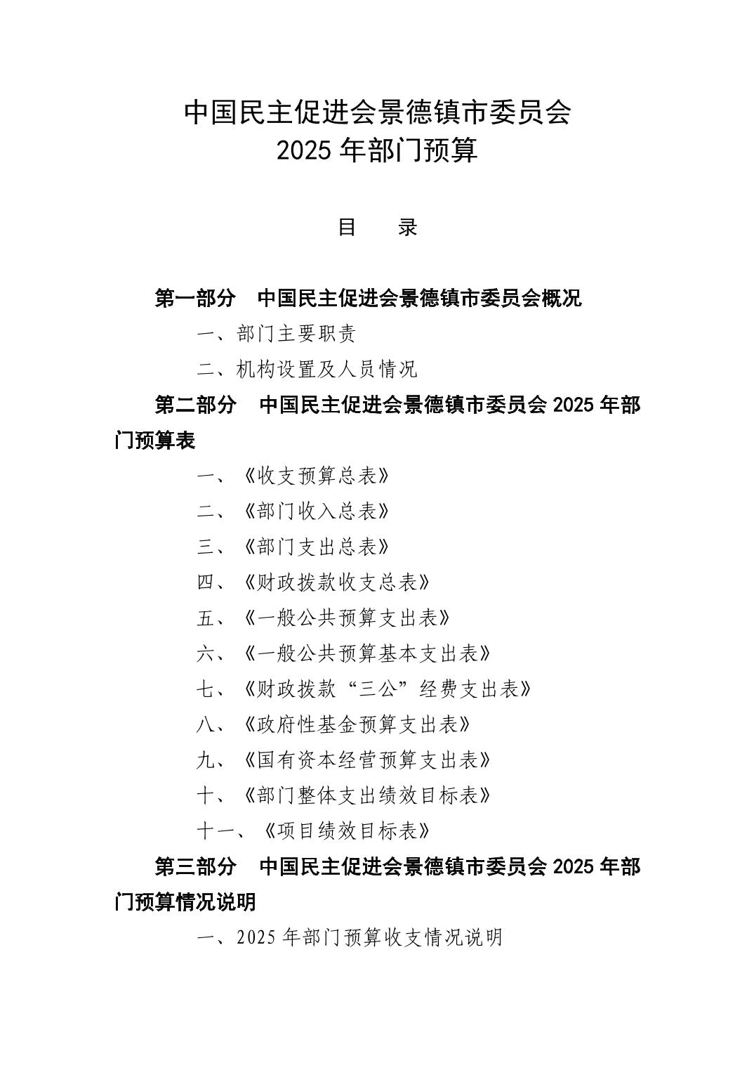 中国民主促进会景德镇市委员会2025年部门预算