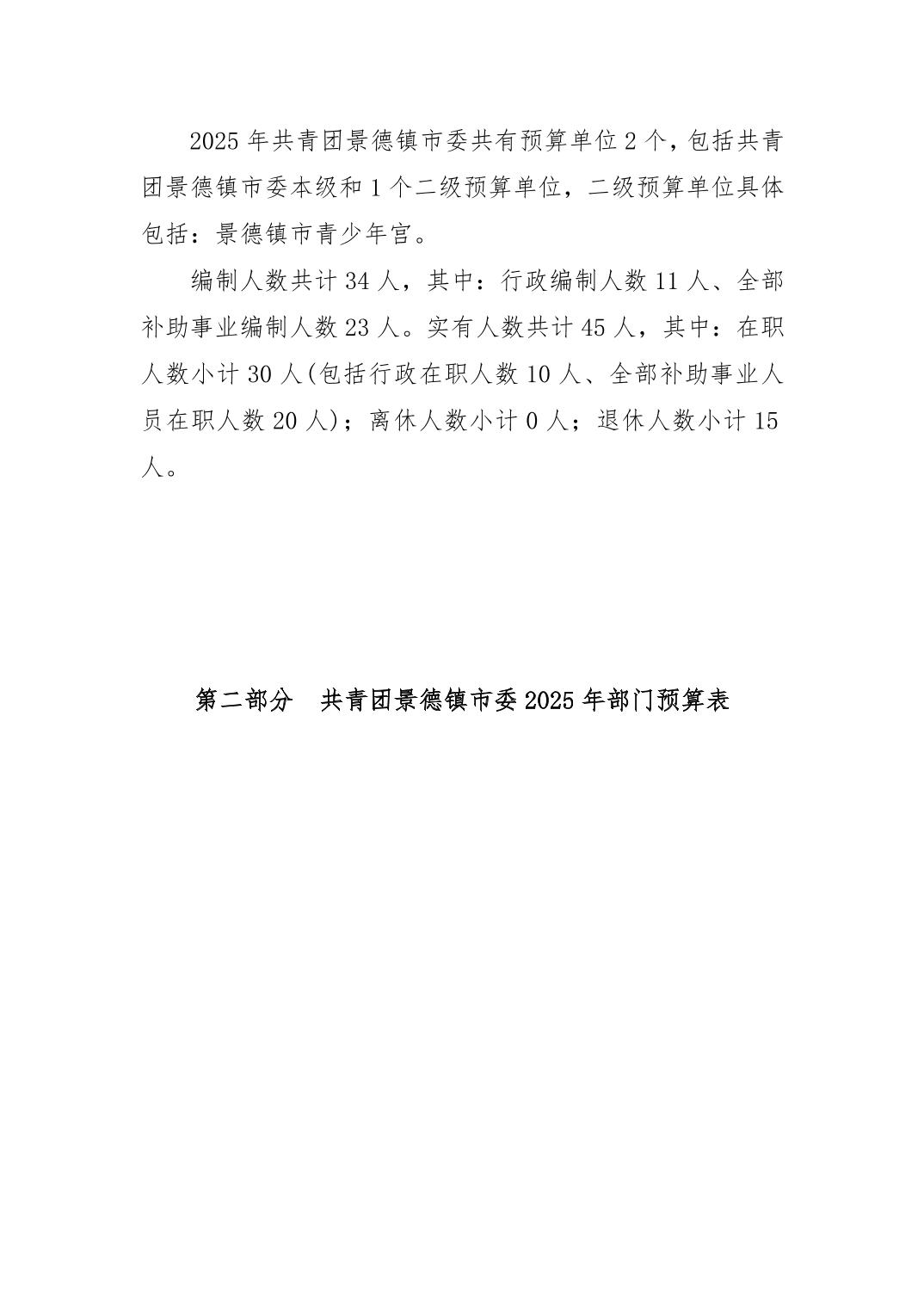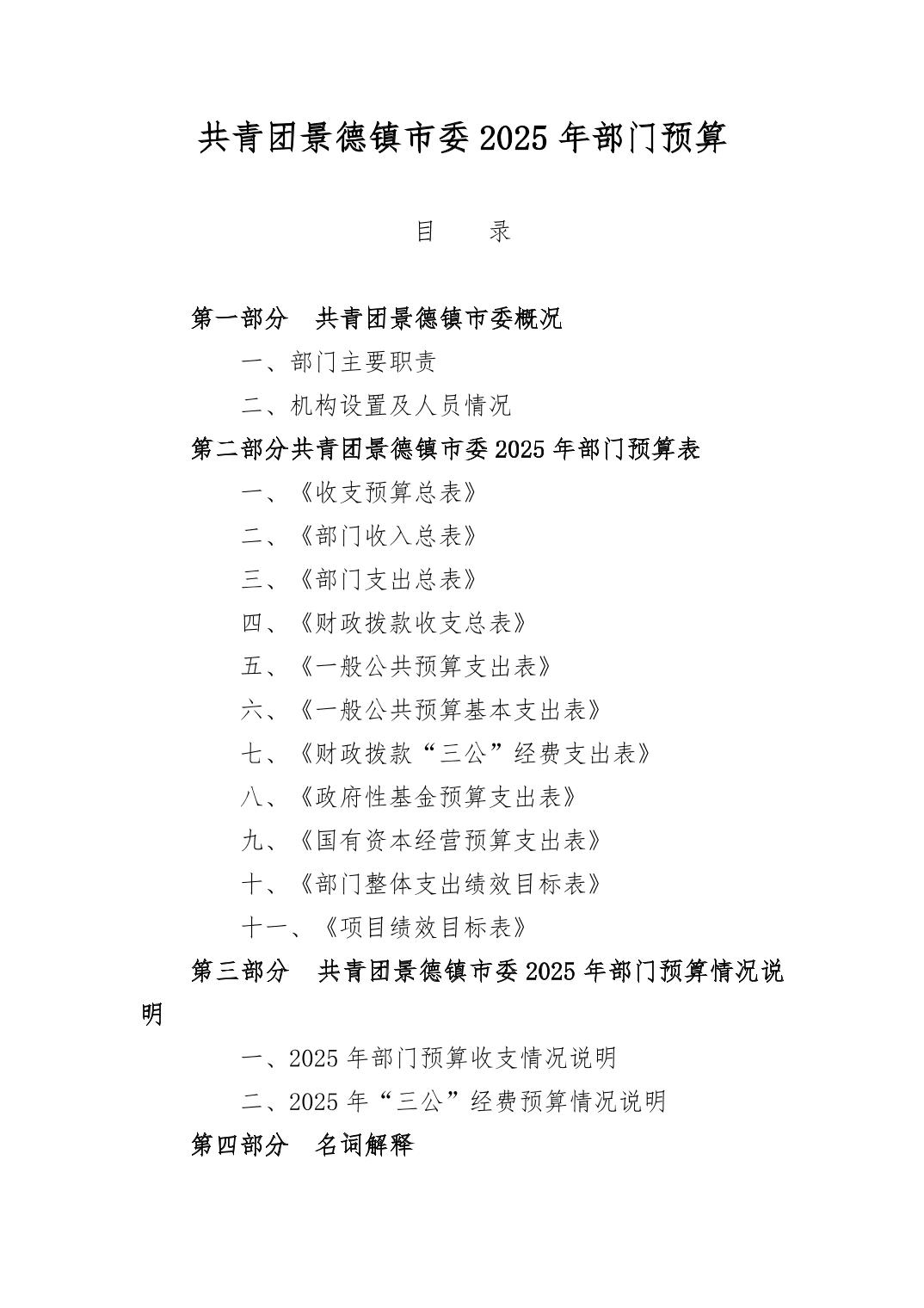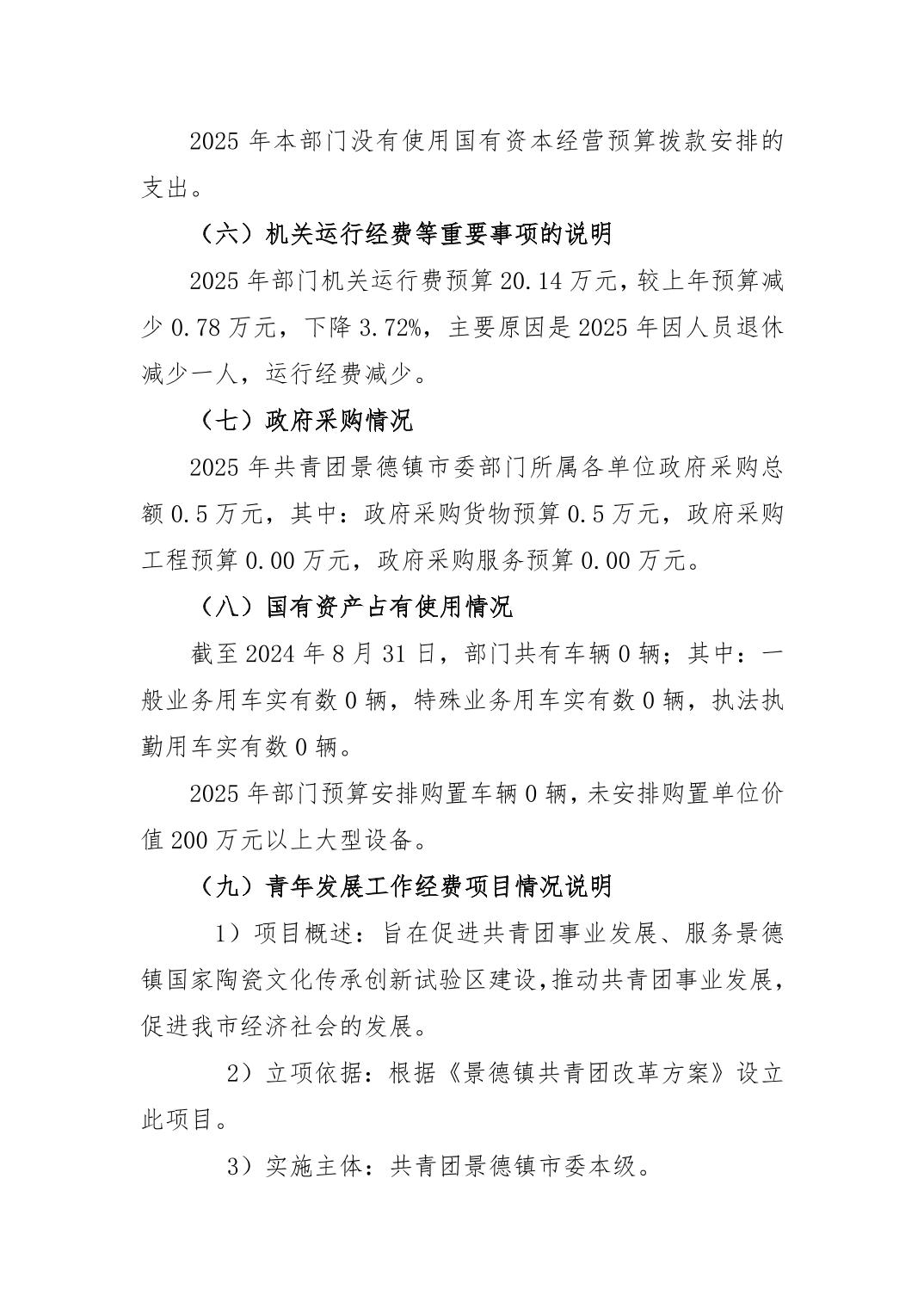 共青团景德镇市委员会2025年部门预算
