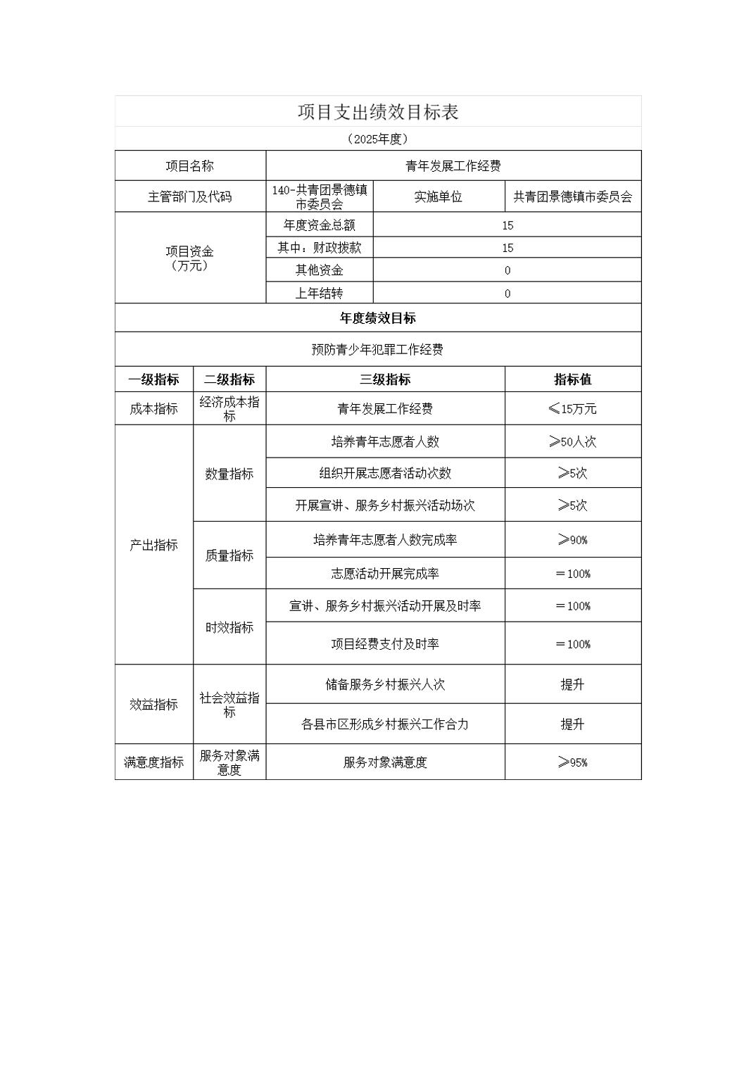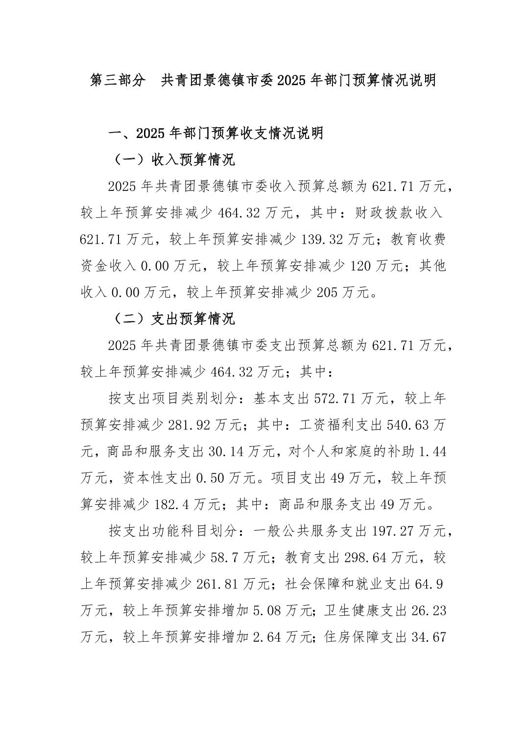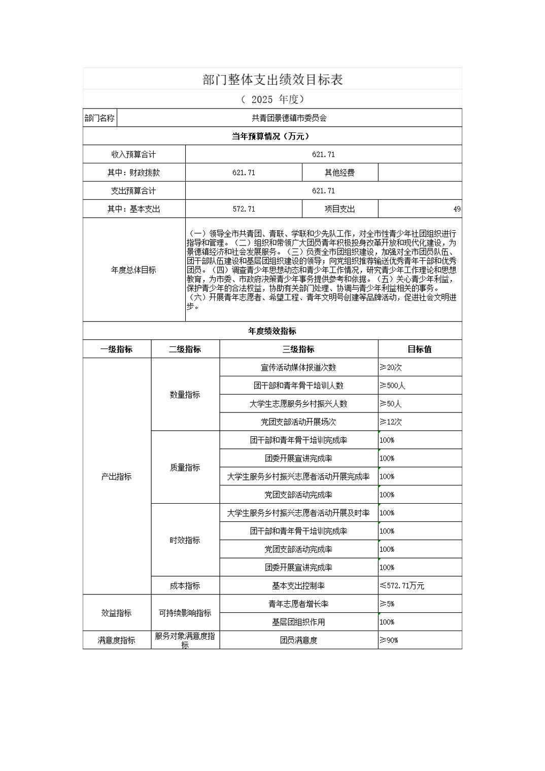 共青团景德镇市委员会2025年部门预算