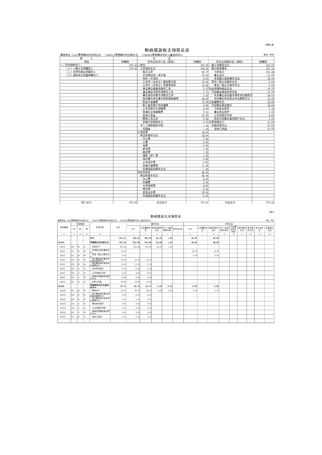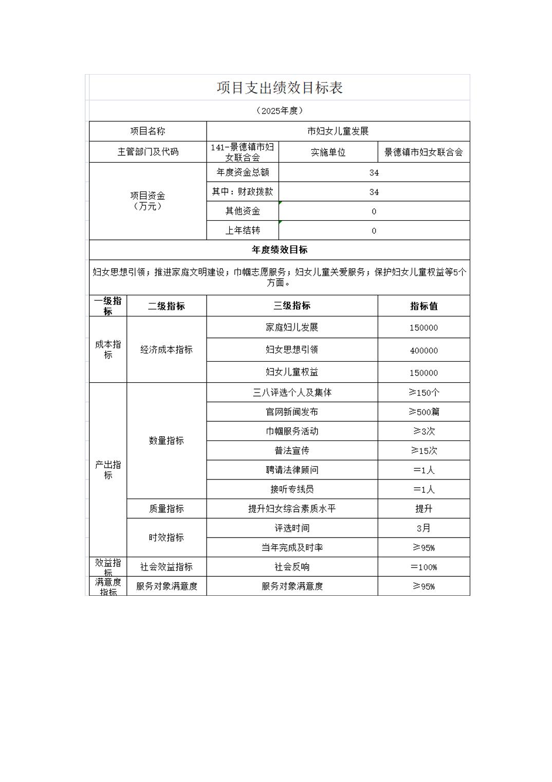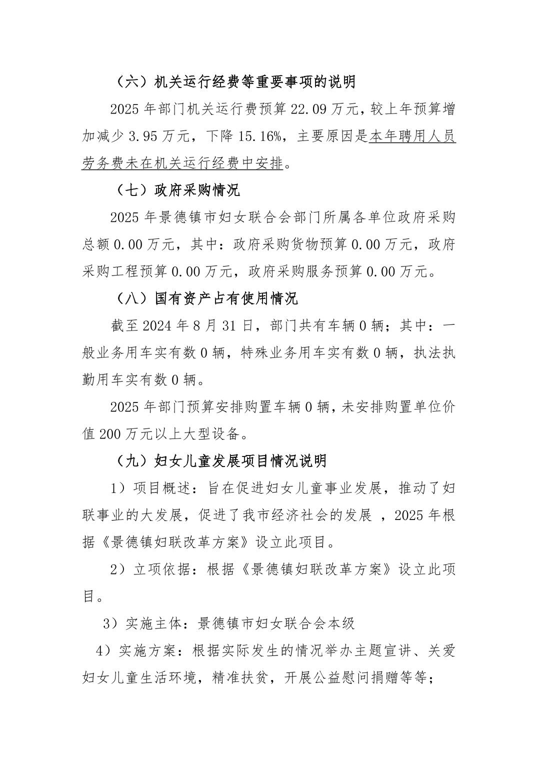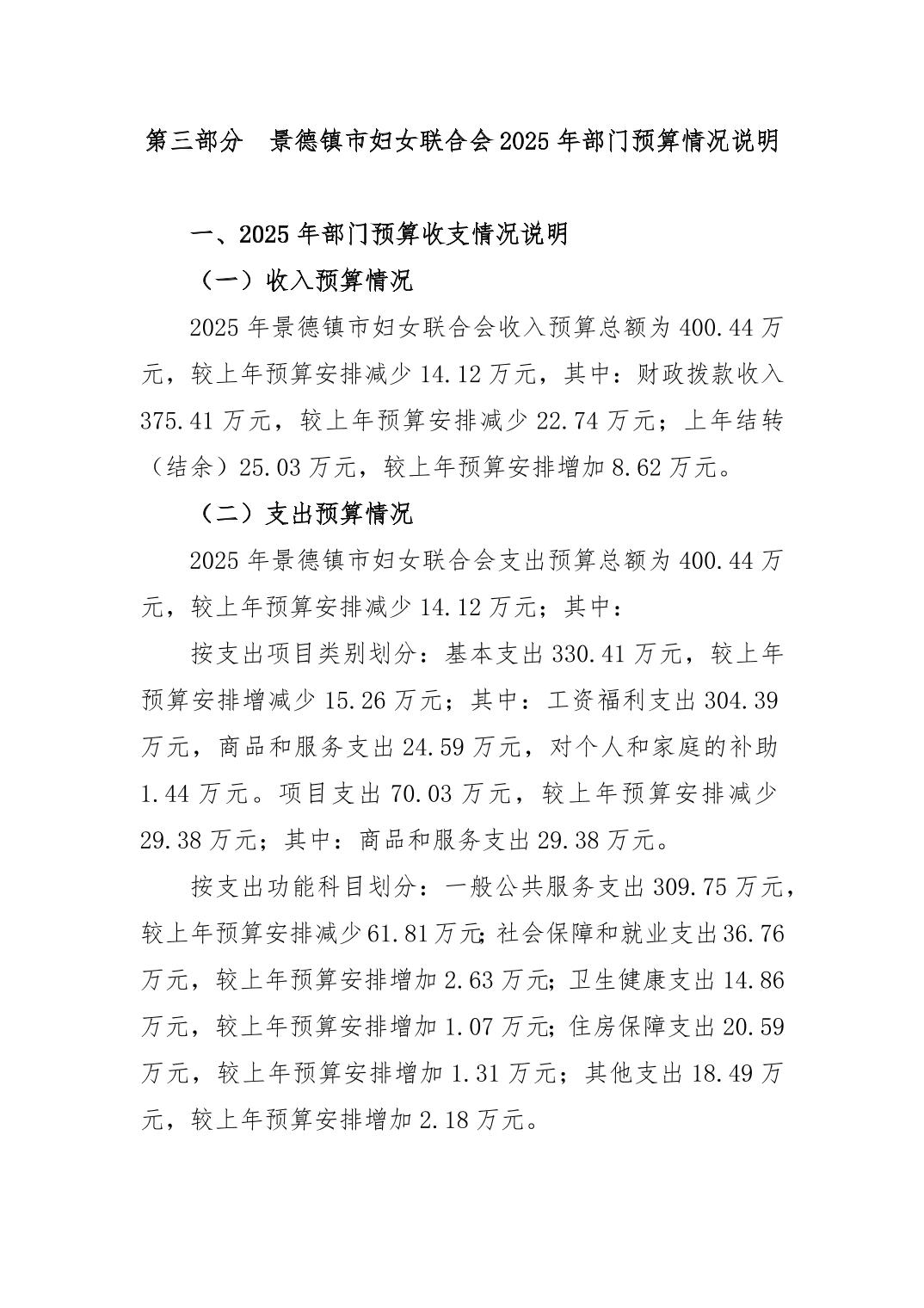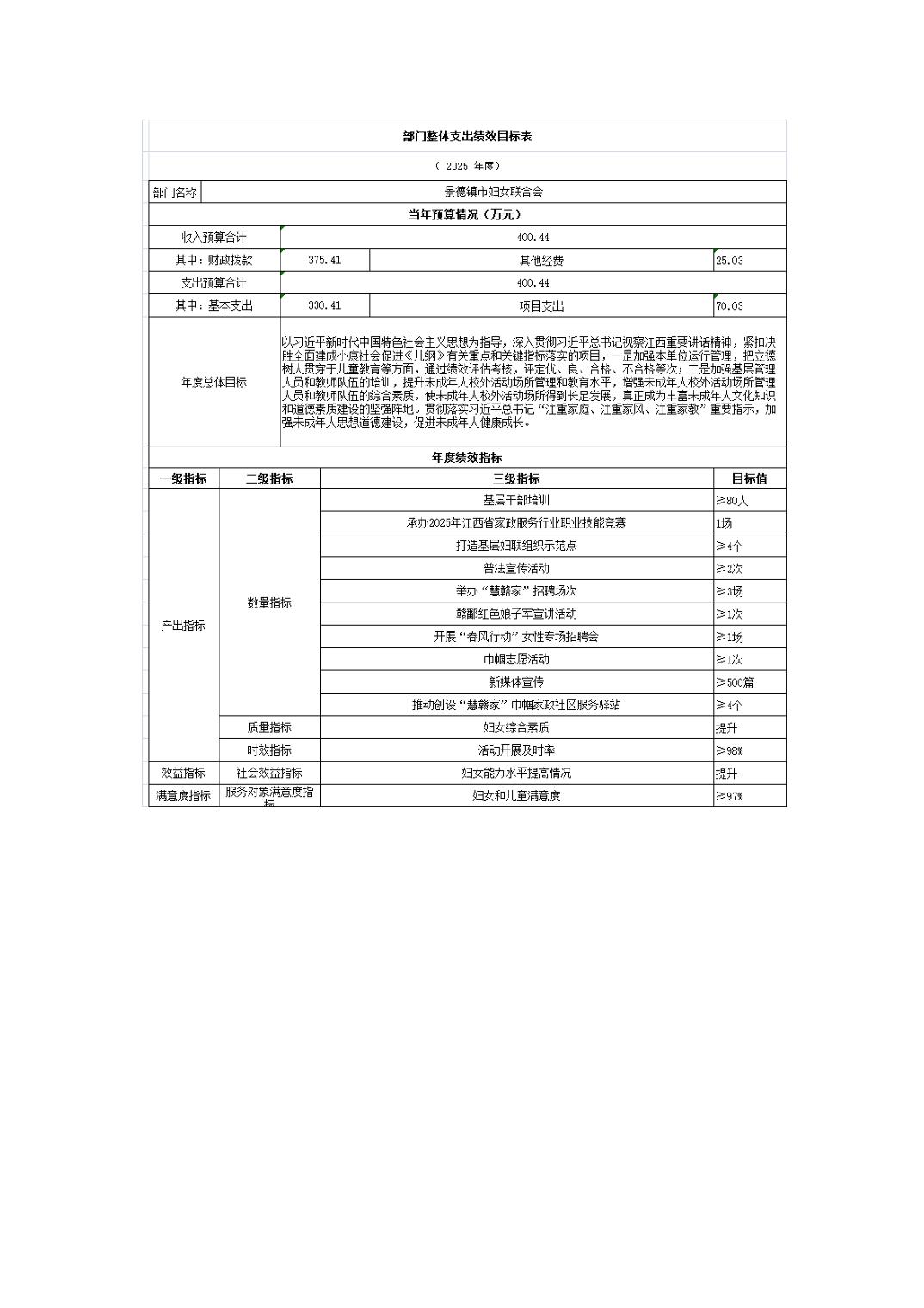 景德镇市妇女联合会2025年部门预算